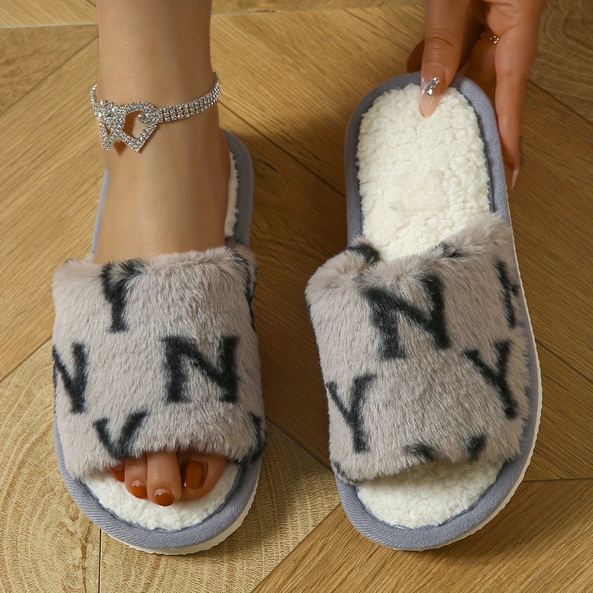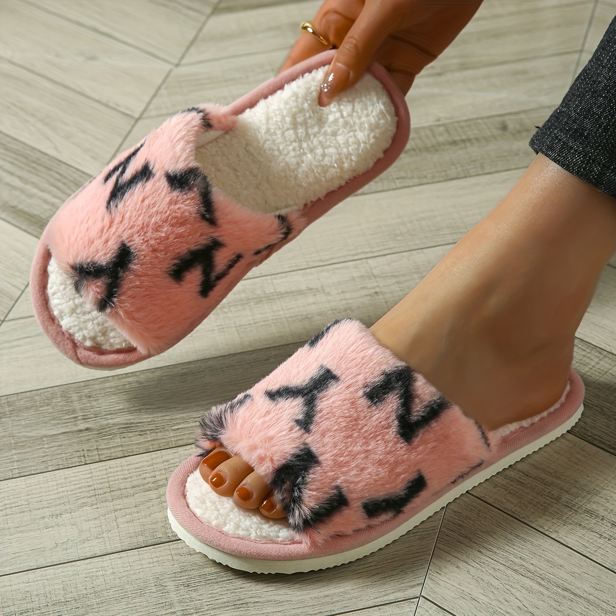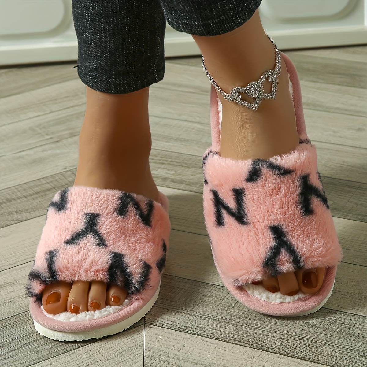 1 Pair Women's Pink Letter-Patterned Fluffy Slippers with Sparkling Heart Bracelet, Soft Fabric Lining, Durable EVA Sole, Comfortable Indoor House Shoes for Women, House Slippers