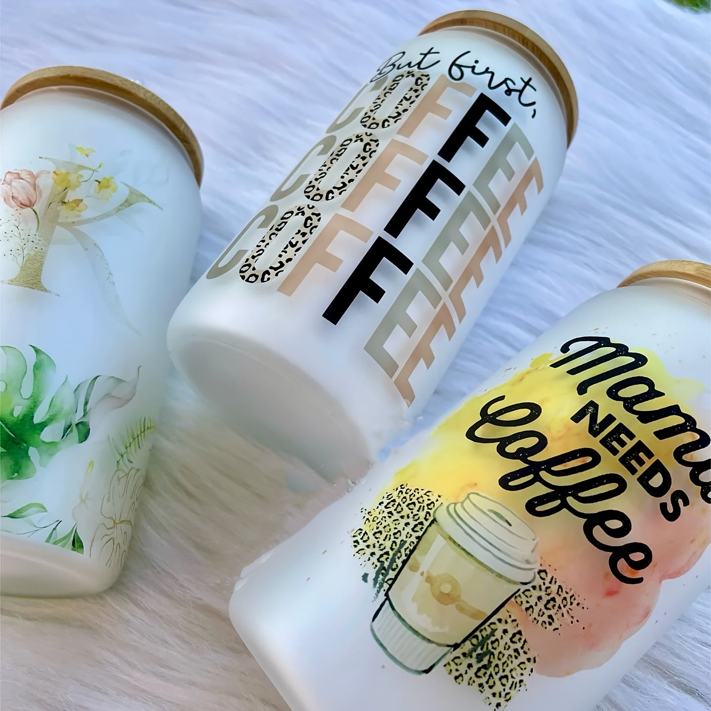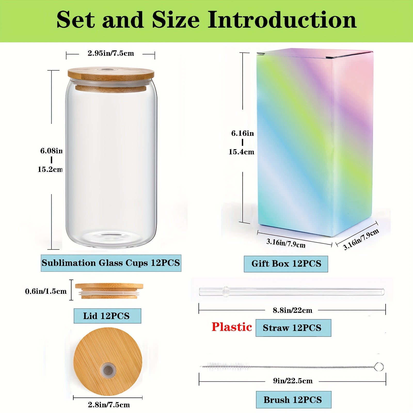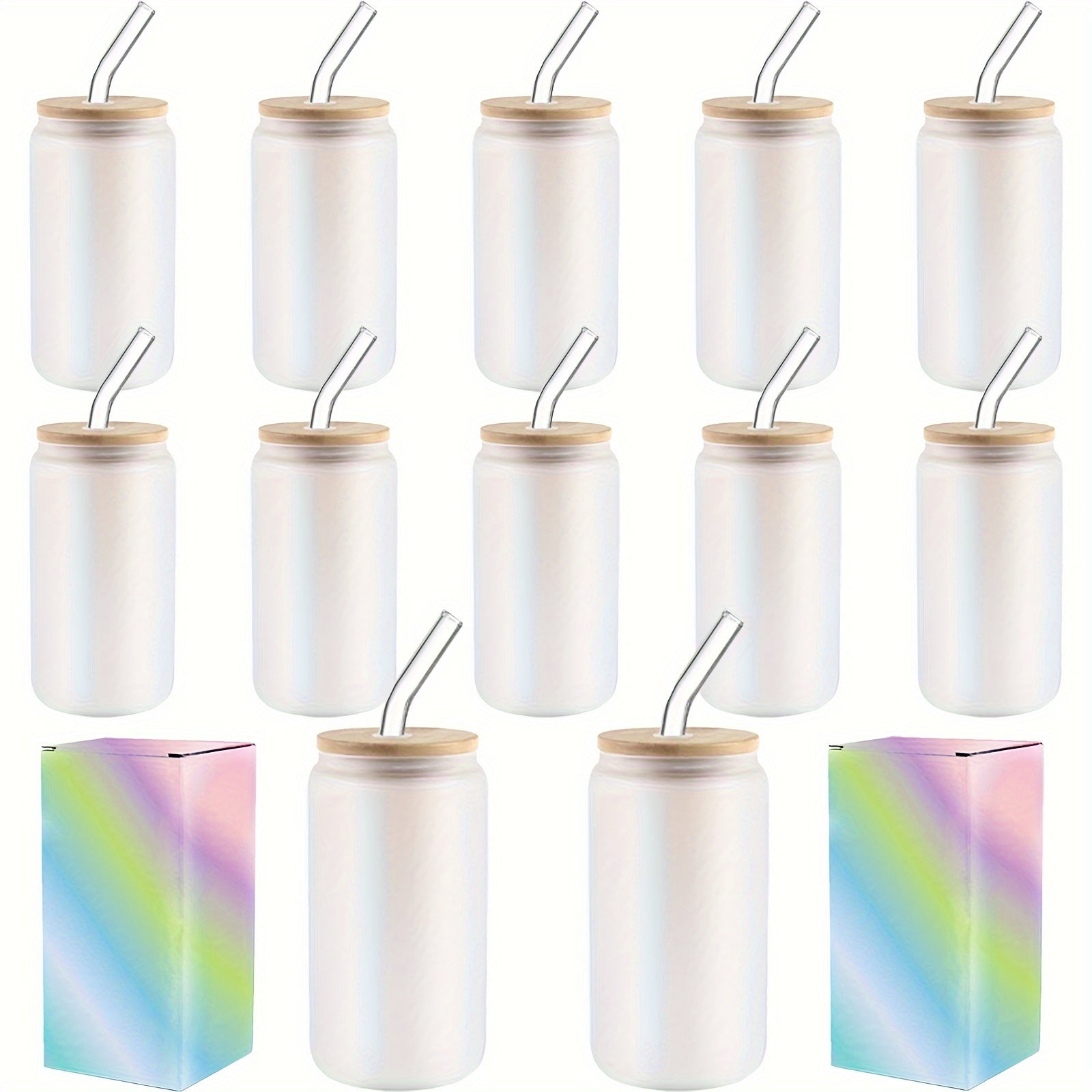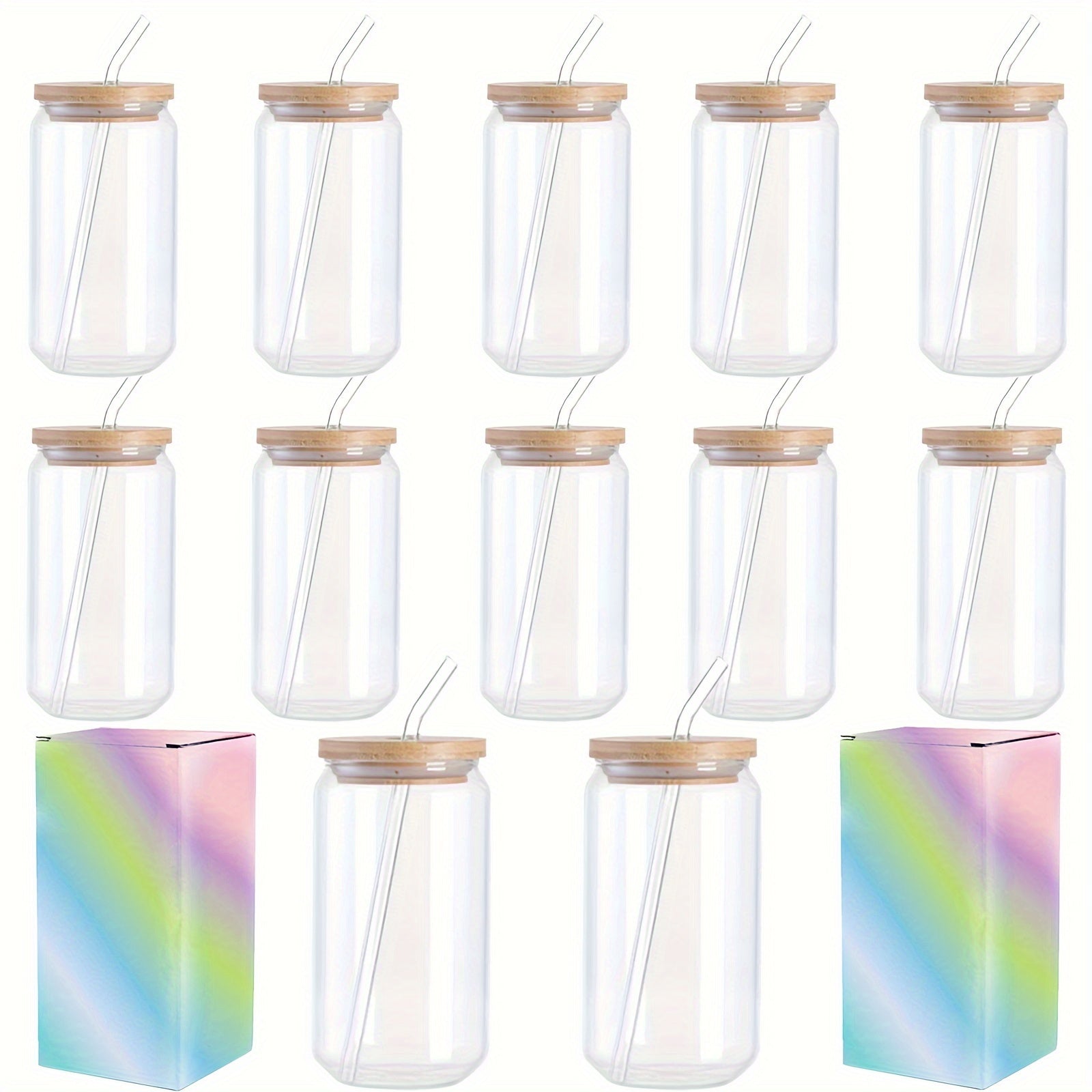 12pack 12-Piece Clear Glass Cups with Bamboo Lids, Straws, Brushes, and Gift Box