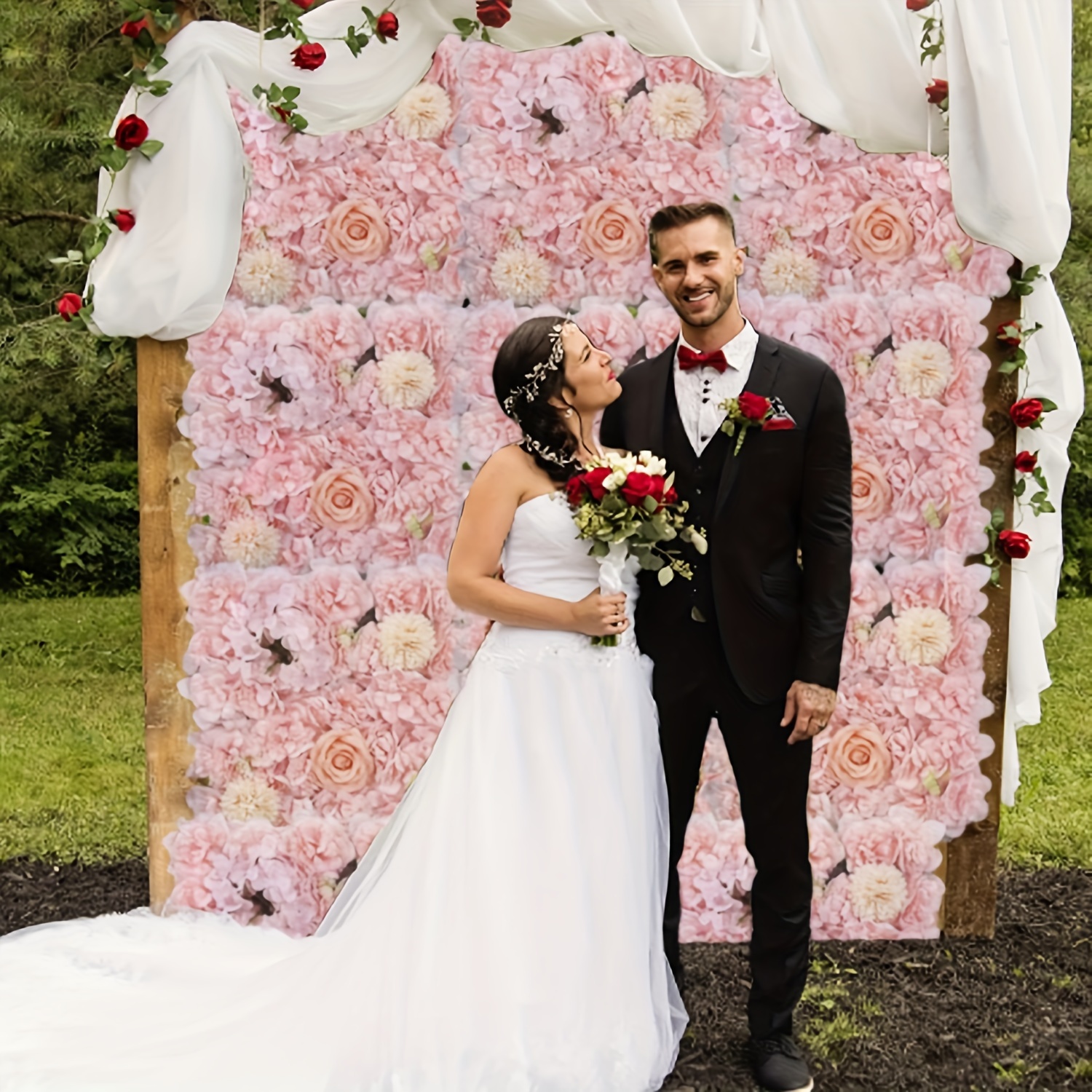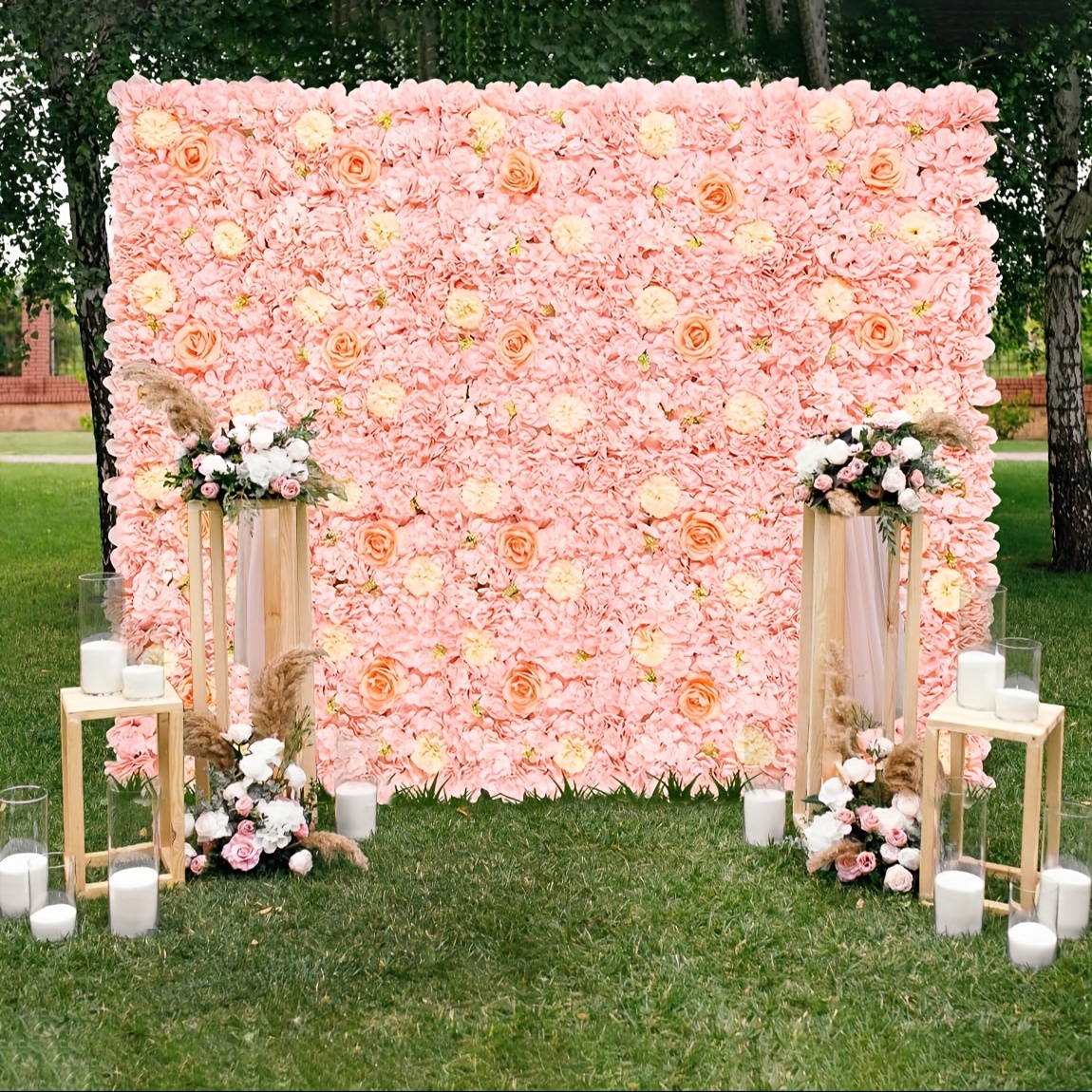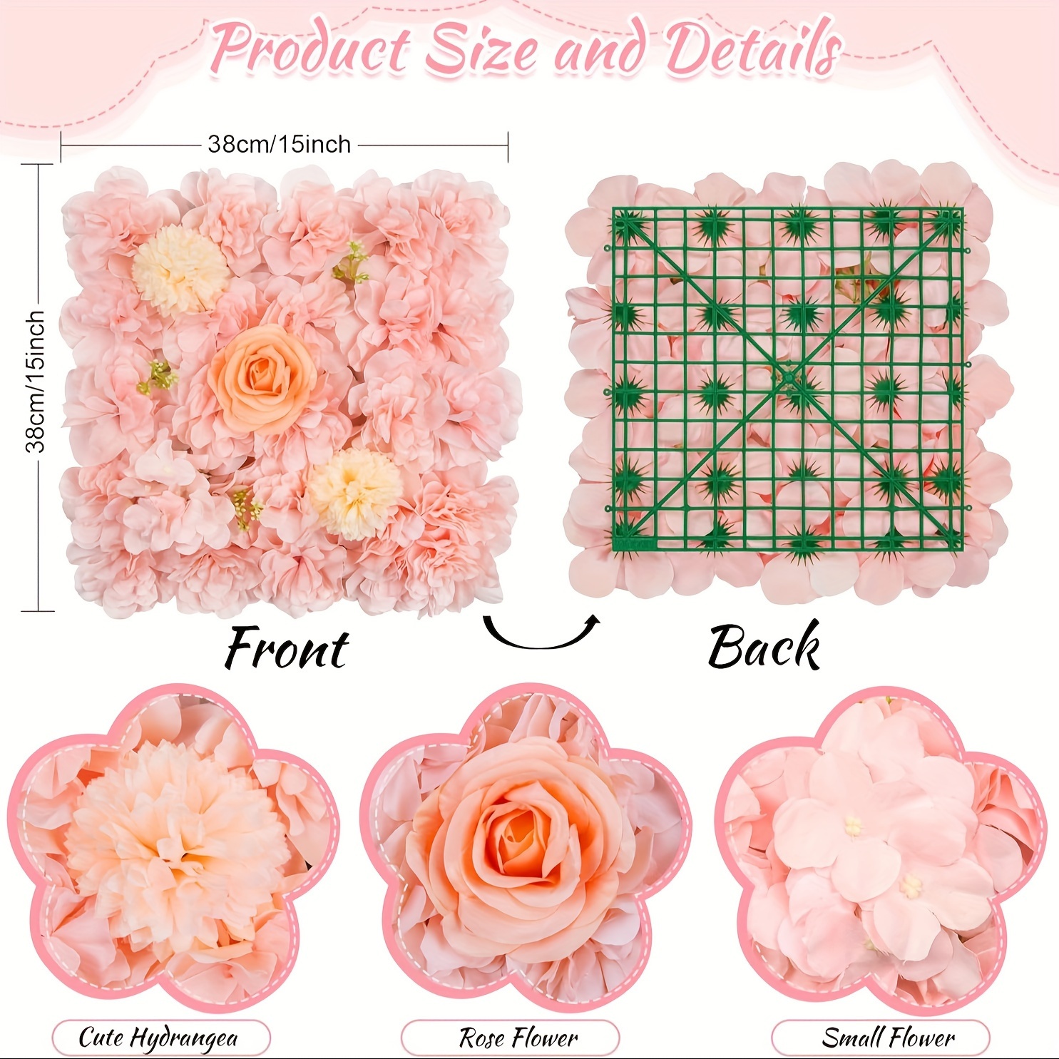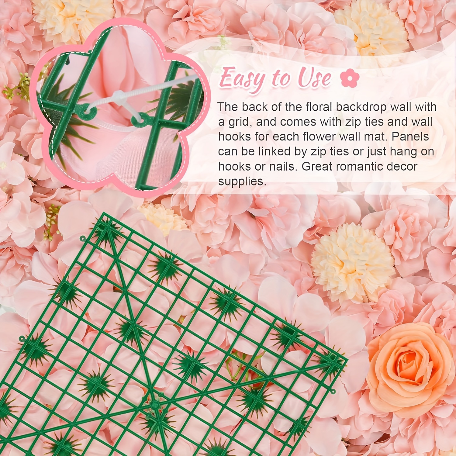 12pcs Pink Rose Floral Backdrop, 15x15 Inches - Elegant Polyester Photography Background for Weddings, Bridal Showers, Birthday Parties, and Romantic Celebrations, Party Backdrop | Elegant Event Backdrop | Blush Wedding Roses