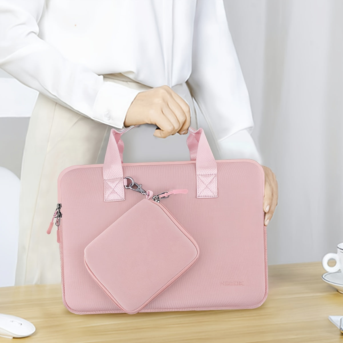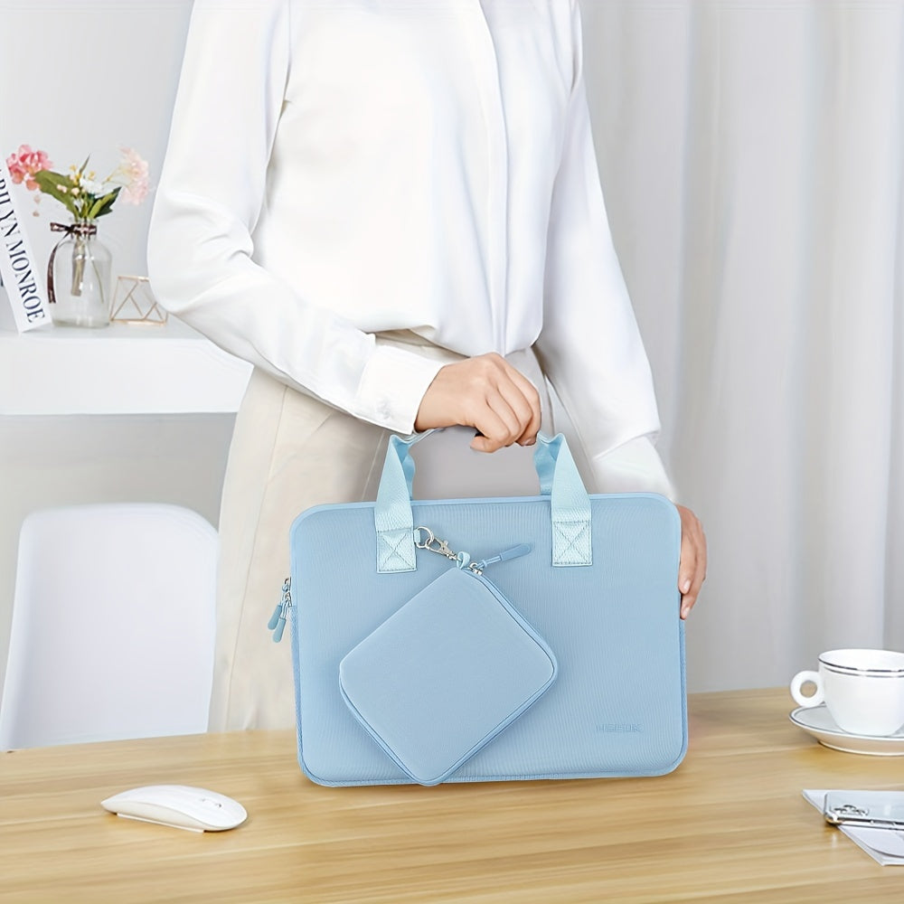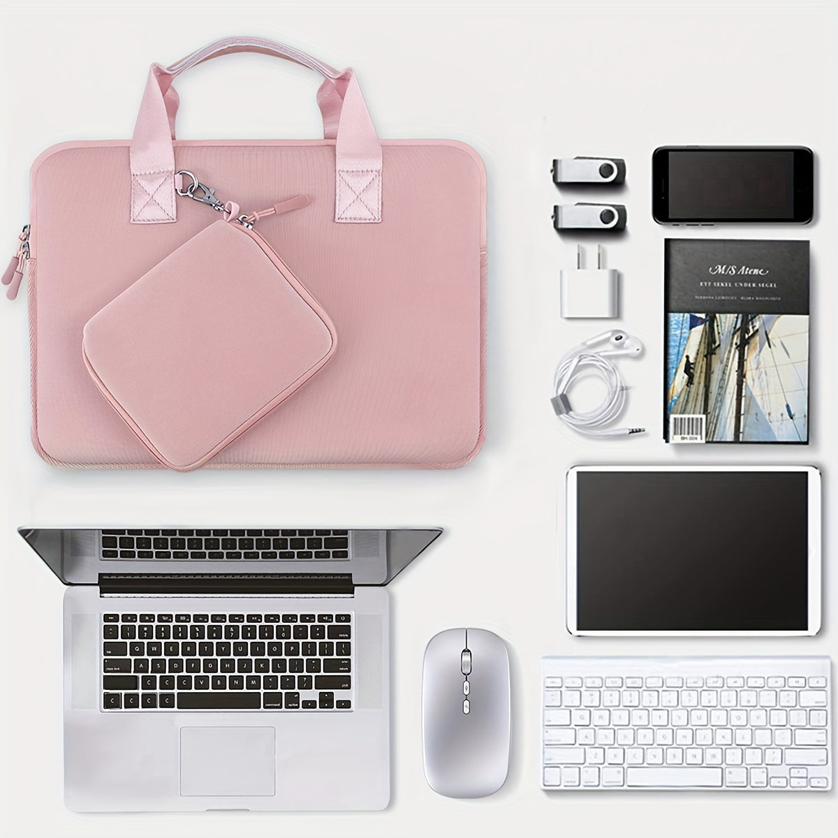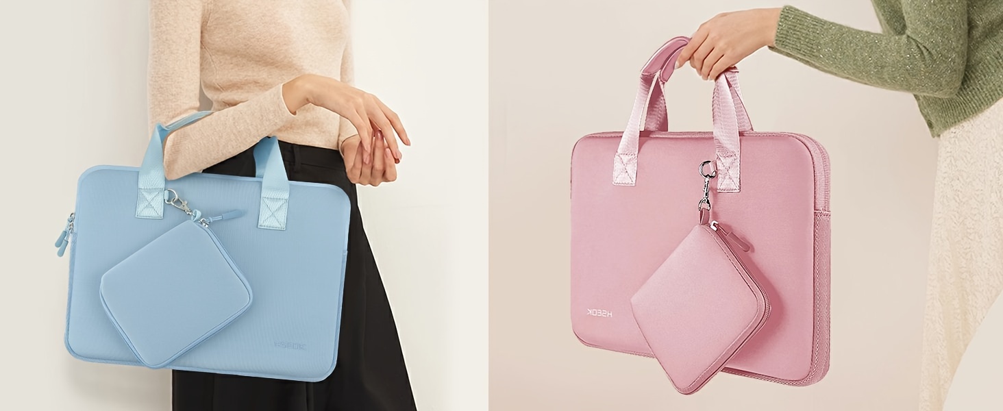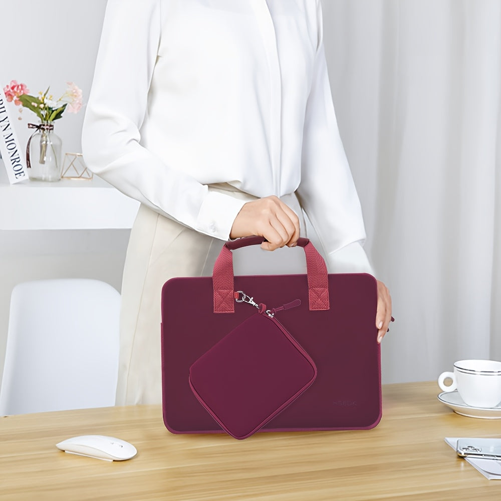 Convenient Laptop Handbag: Easy to carry, This slim laptop sleeve with the Faux Leather handles and a small D ring & hook to carry on the small acssory bag that to take your charger, cable, mouse, external backup drive etc