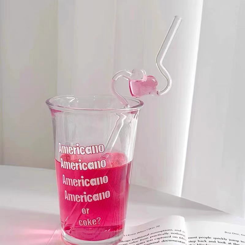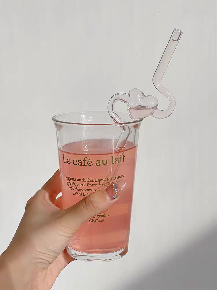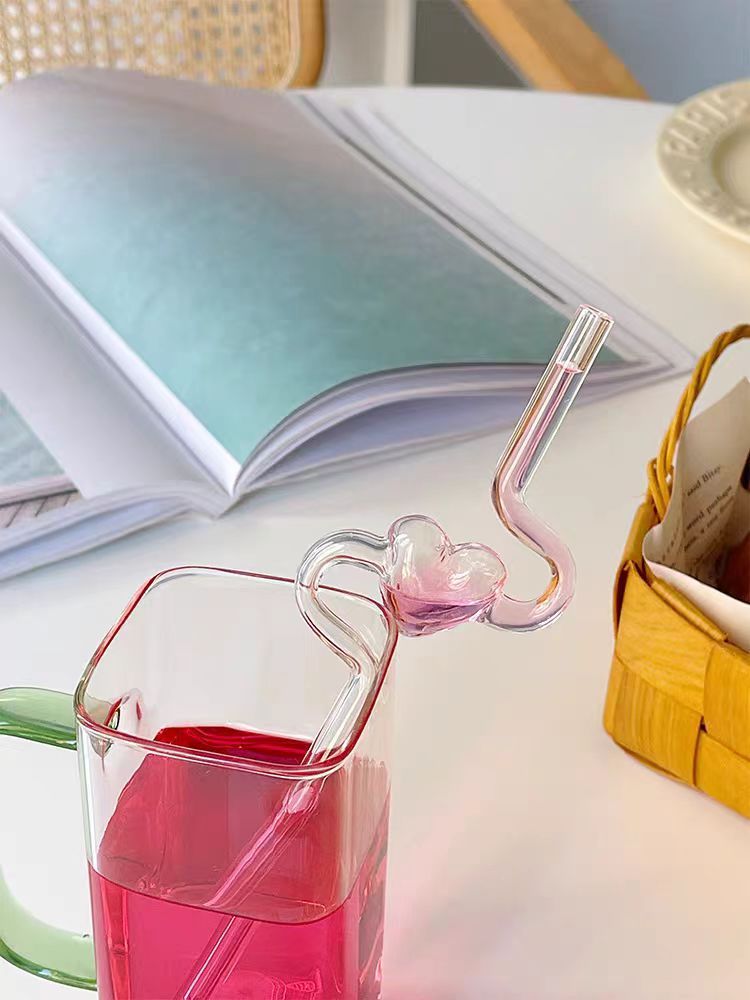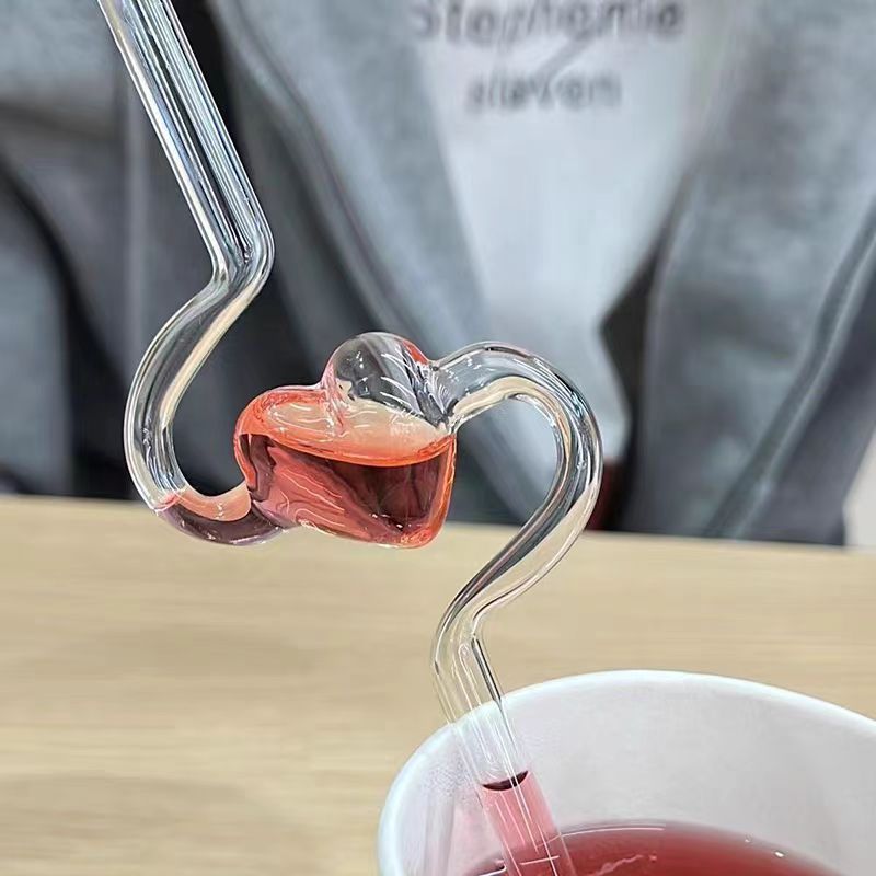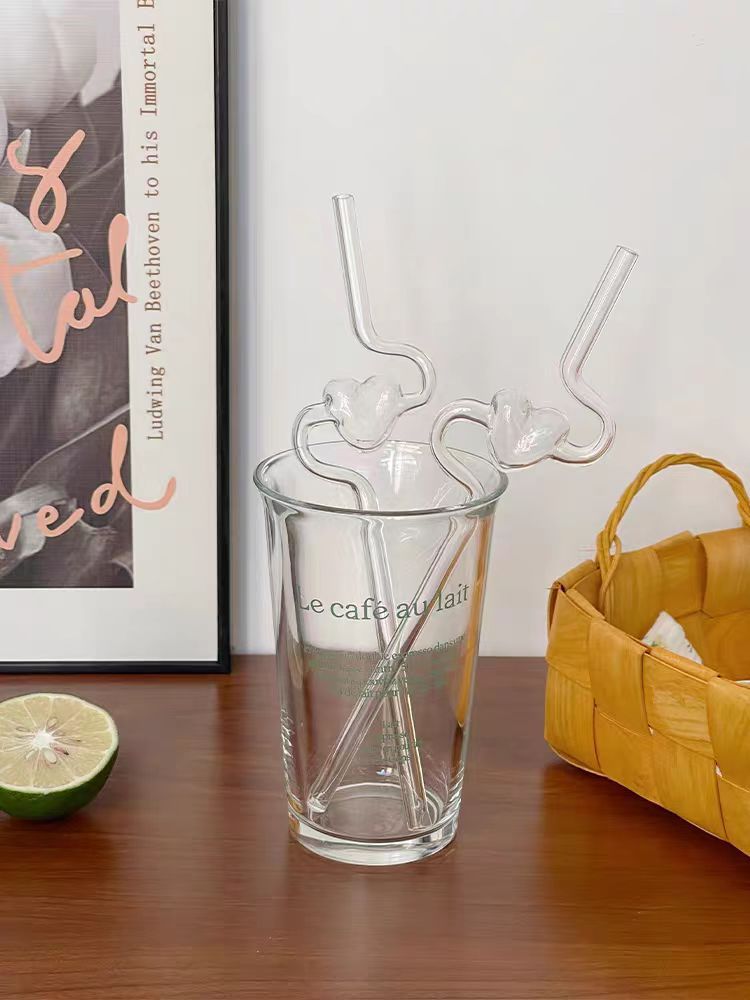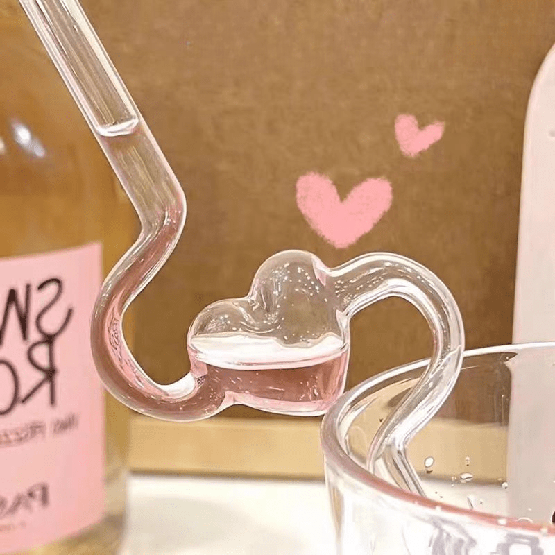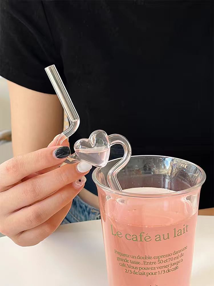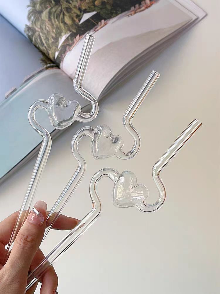 1pc Reusable Glass Straw With Cute Heart Design - High Borosilicate, Transparent & Creative For Milk And Juice Drinks