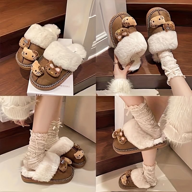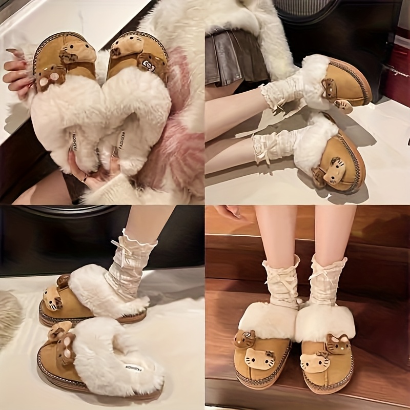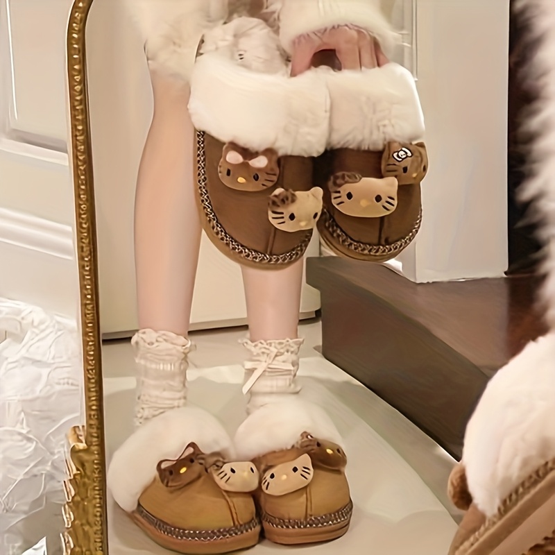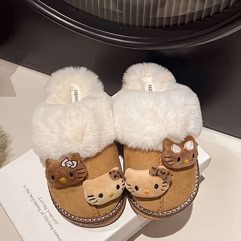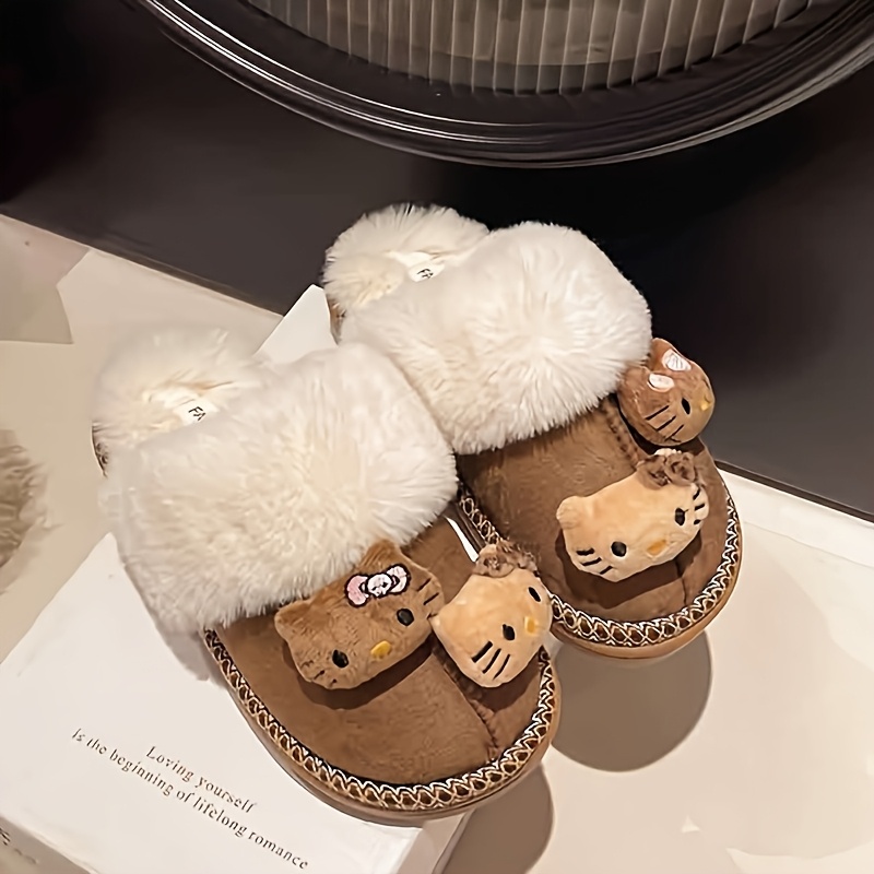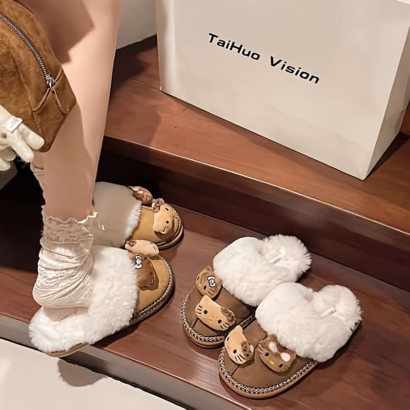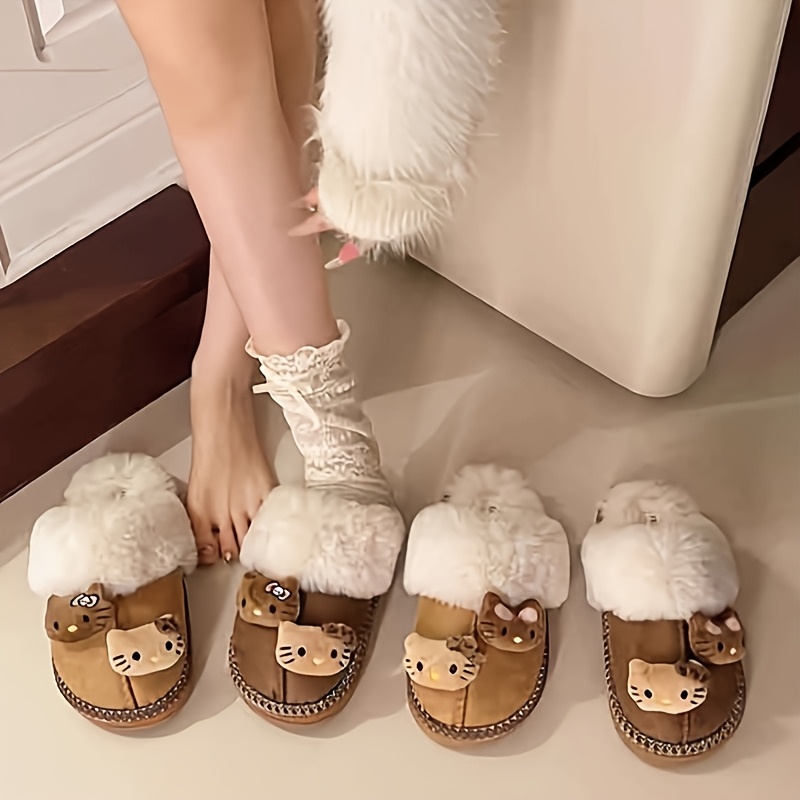 1pc Sanrio Hello Kitty Closed Toe Slippers, Women's Fashion Slip-on Kitty Cat Plush Slippers with Faux Plush Interior And Rubber Bottom, Cute And Warm Non-slip House Shoes, Birthday Gifts And Festival Gifts for Mom Or Girlfri