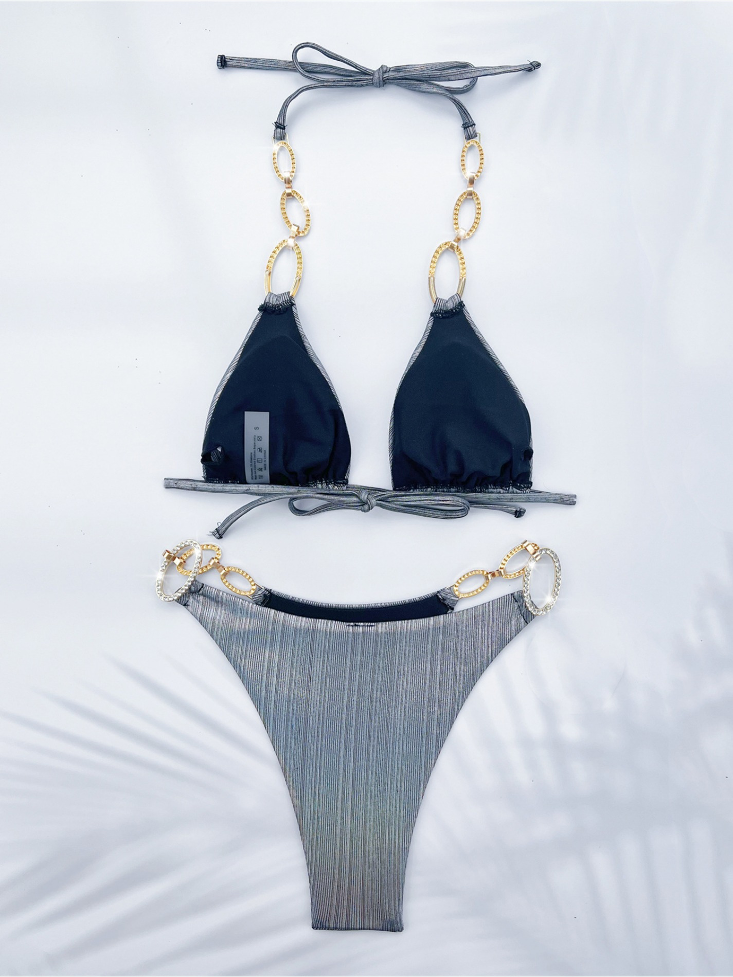 2025 new bikini strap swimsuit European and American halter swimsuit female leopard print swimsuit sexy bikini