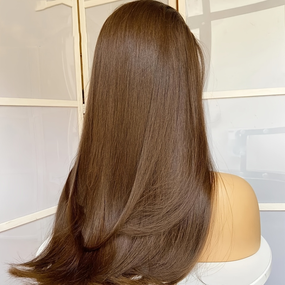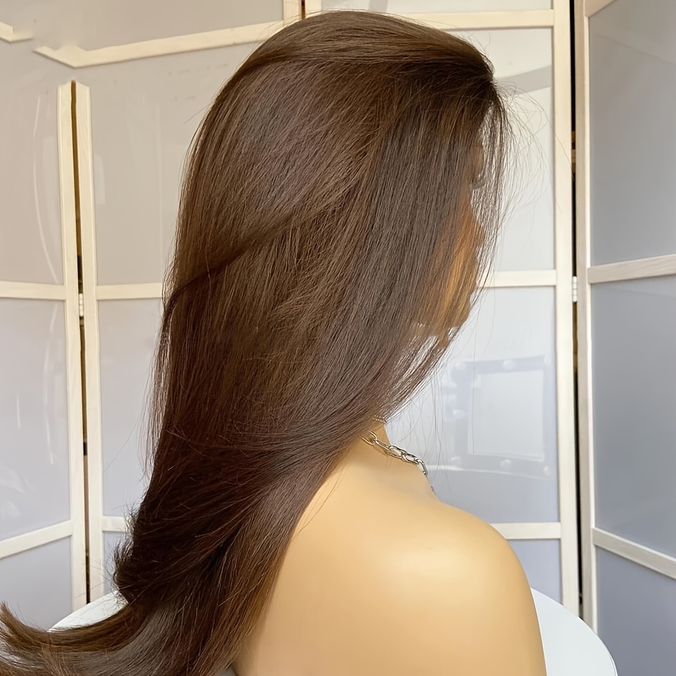 32" Long Brown Straight Lace Front Wig - 180% Density, Heat-Resistant Synthetic Hair for Women, Elegant Style for Daily Wear, 13x4 Lace Area, Smooth & Versatile Look for All Ethnicities, Daily Wear Wig | Elegant Straight Wig