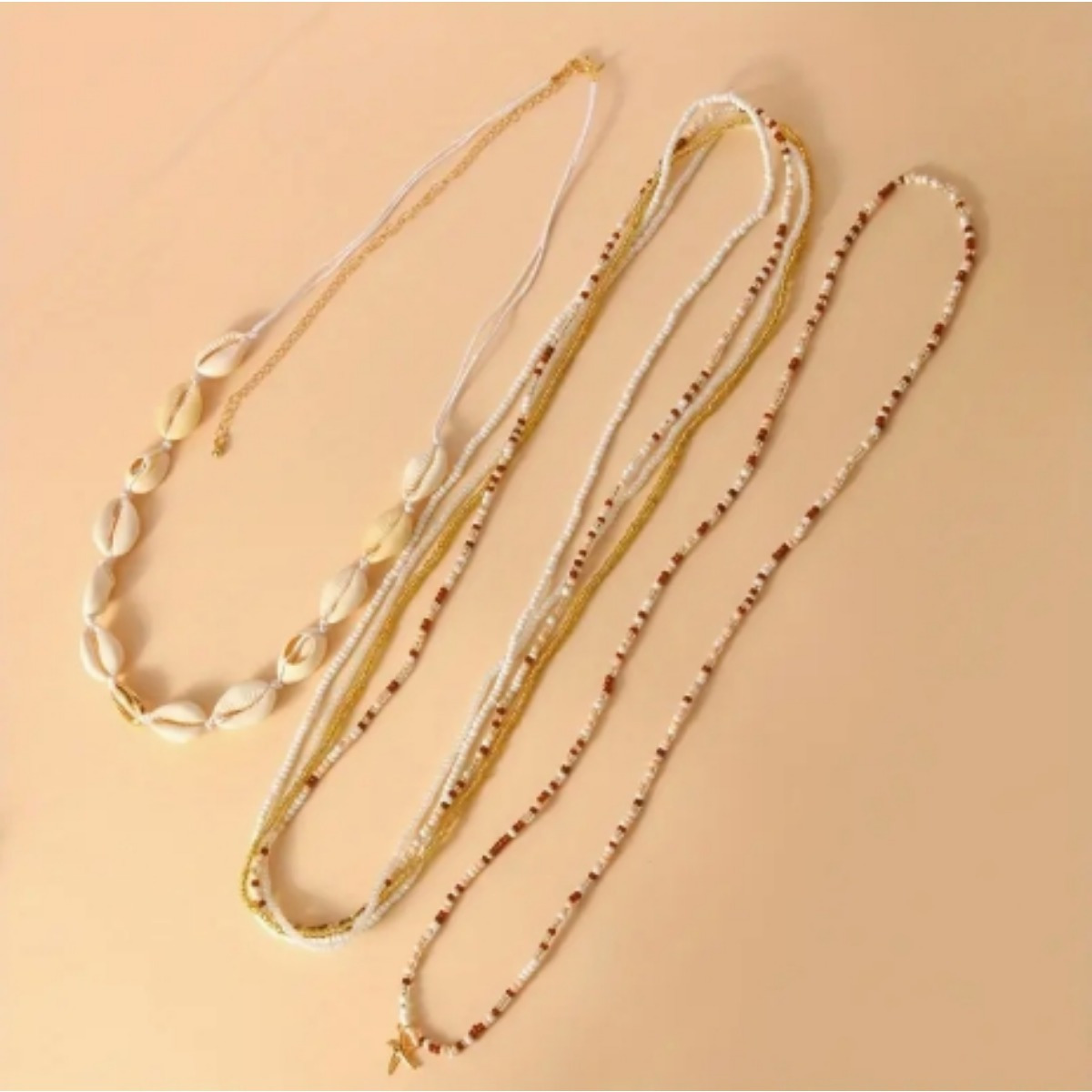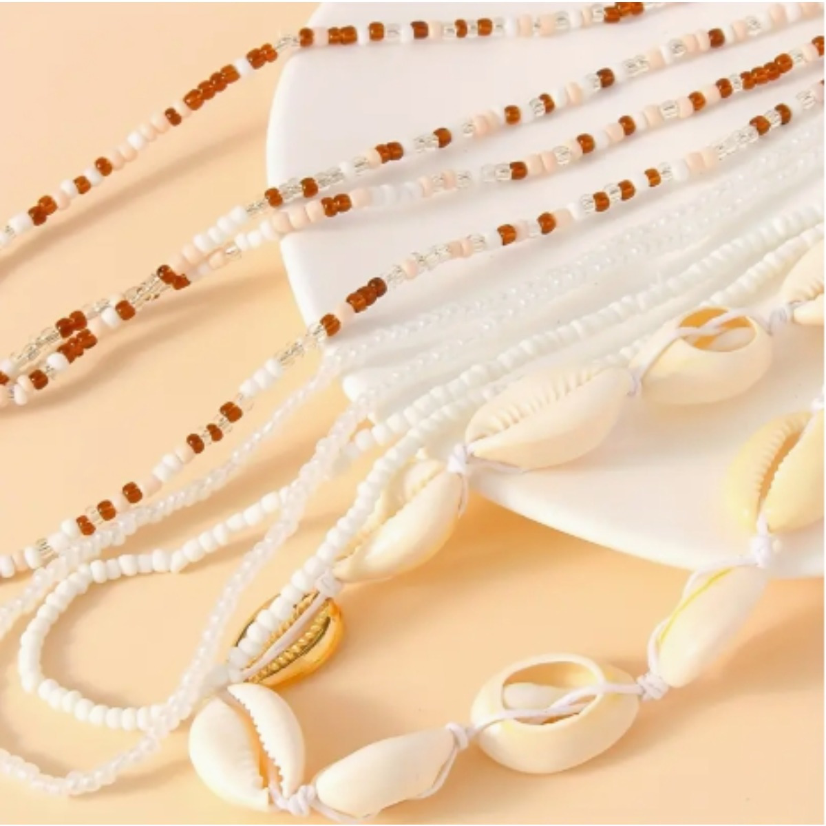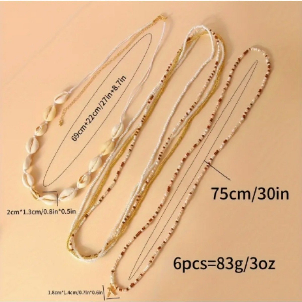 6pcs Boho Chic Shell Pendant Multi-layer beaded waist chain, suitable for women, summer fashion beach handmade elastic body chain, no plating, glass beads, suitable for Casual Attire and gift giving, suitable for Christmas