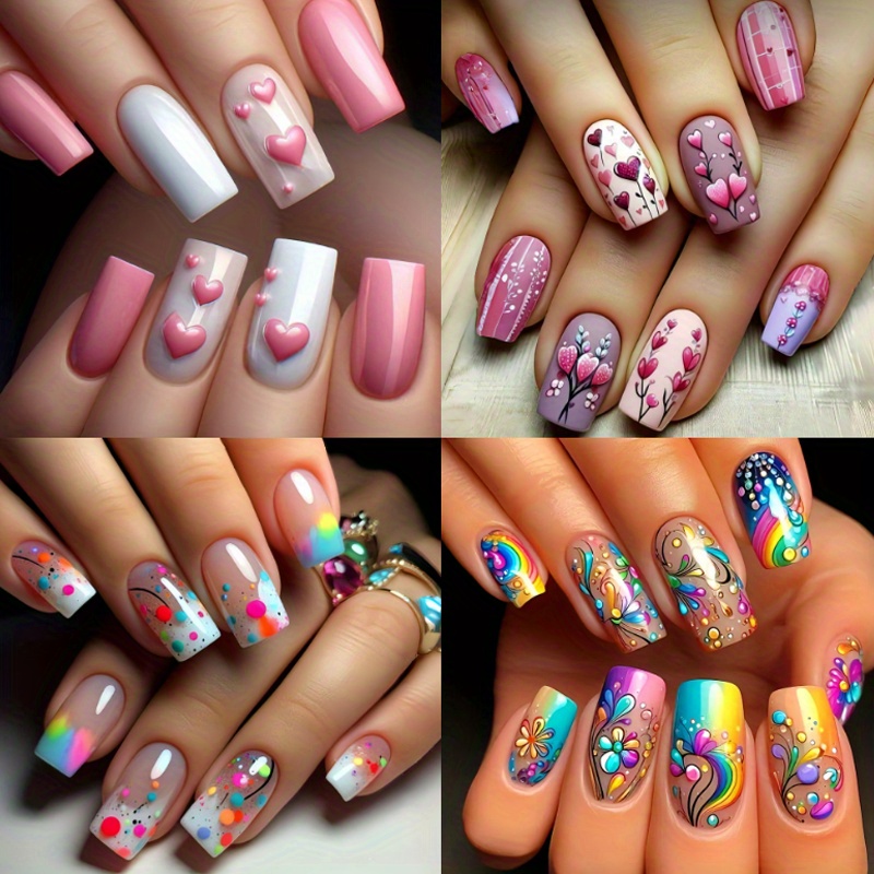 96pcs (4 PACK) Chic Almond-Shaped Press-On Nails Set with Sparkling Hearts&Glitter Accents - Includes Jelly Adhesive Tabs, Nail File - Perfect ForValentine'S Day