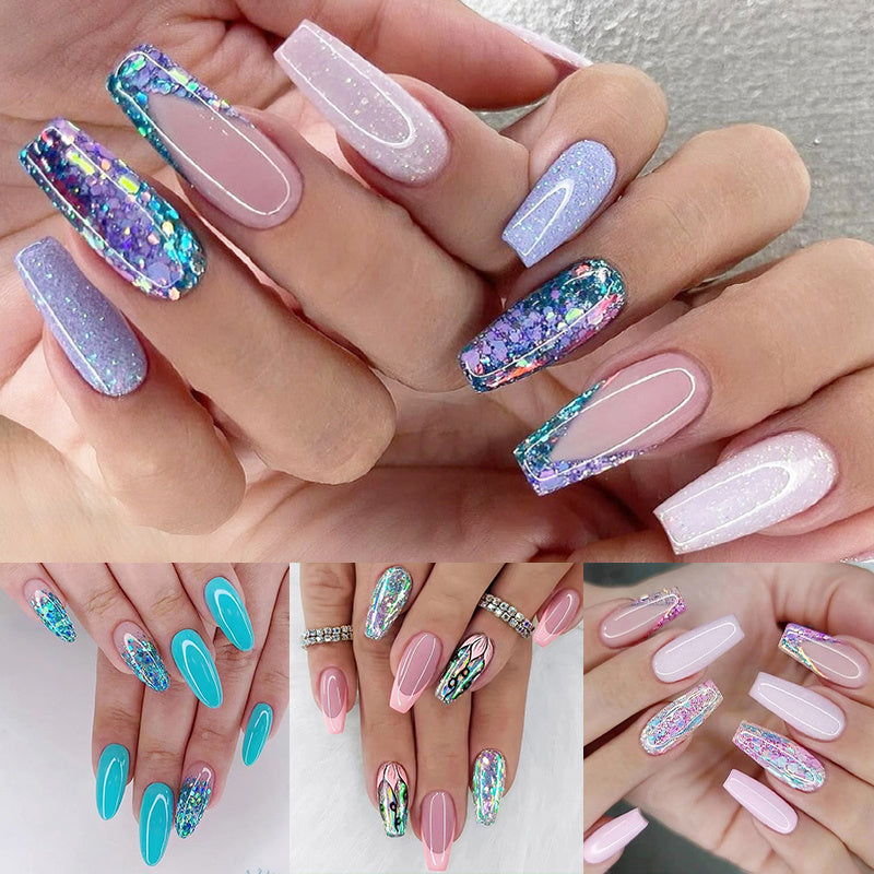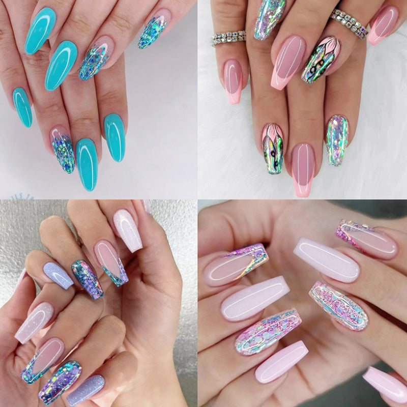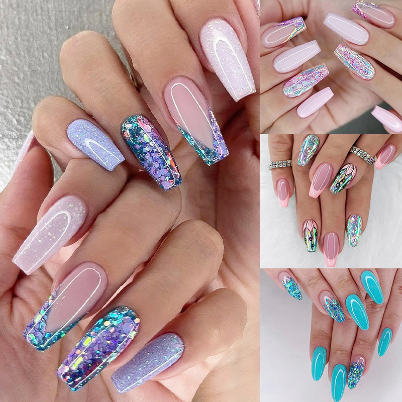 96PCS (4pcs) False Nail Stickers, French Flash Simple and Fashionable Solid Color False Nails for Manicure and Medium and Long Length European and American Flash French Manicure Pink and Sweet Flower Wearing Nails