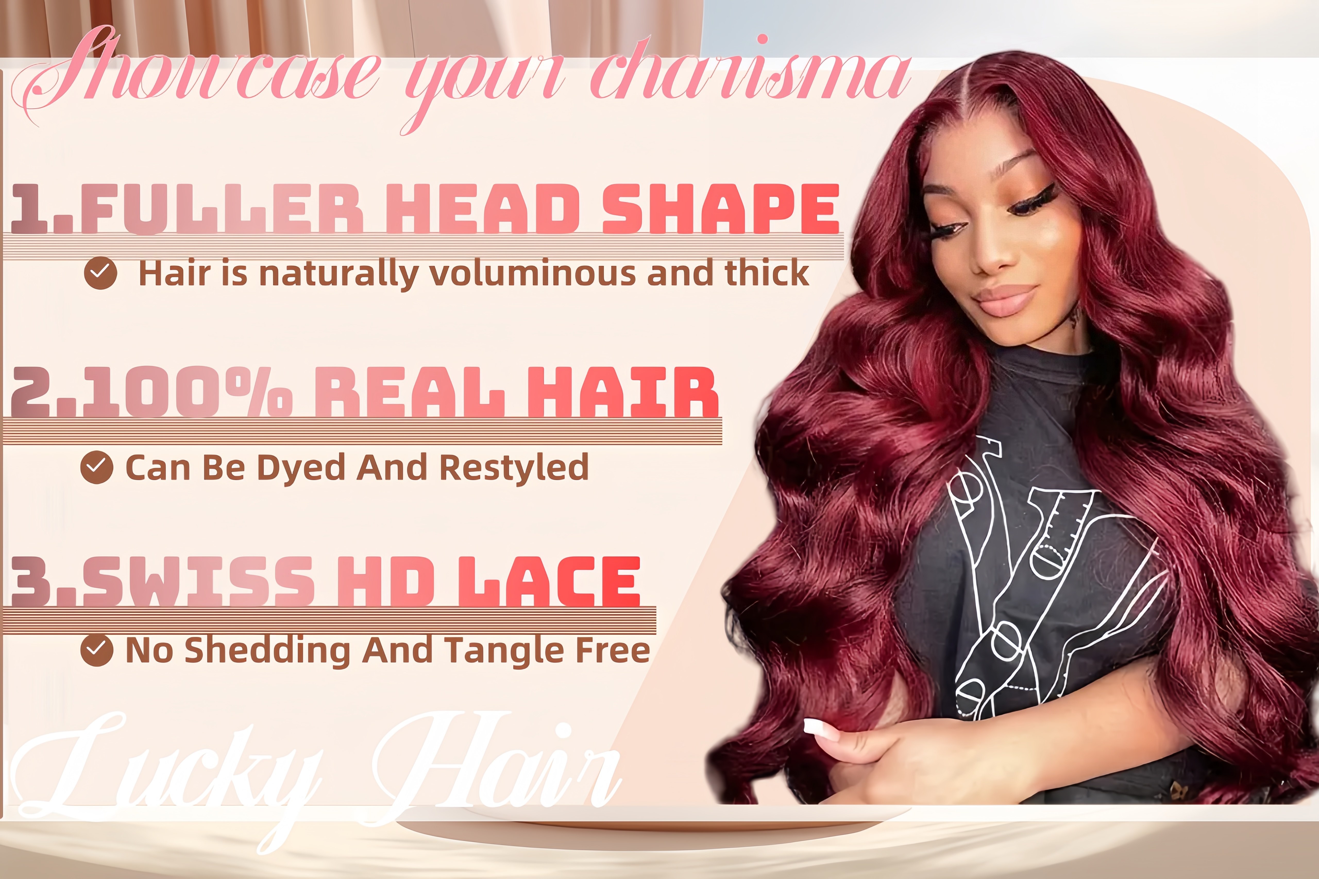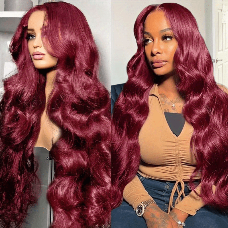 99J Burgundy HD Lace Front Human Hair Wig - Glueless 13x4 Pre-Plucked Body Wave 200% Density Wine Red Costume Wig for Women, Wear & Go Party & Holiday Hair, Wig Accessories