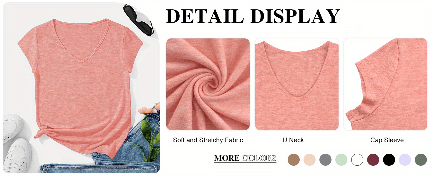 Cap Sleeves Basic Soft Breathable Lighweigh Summer Shirts