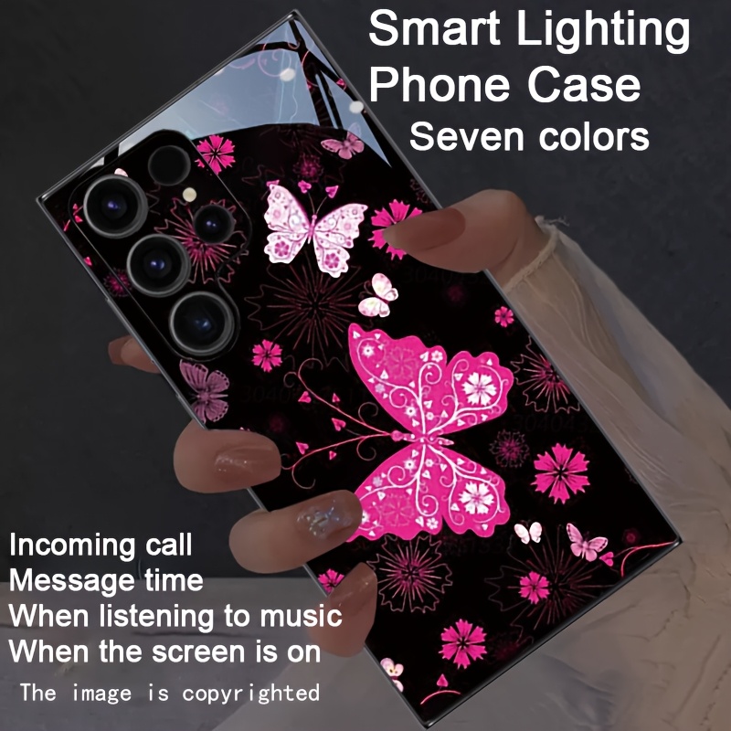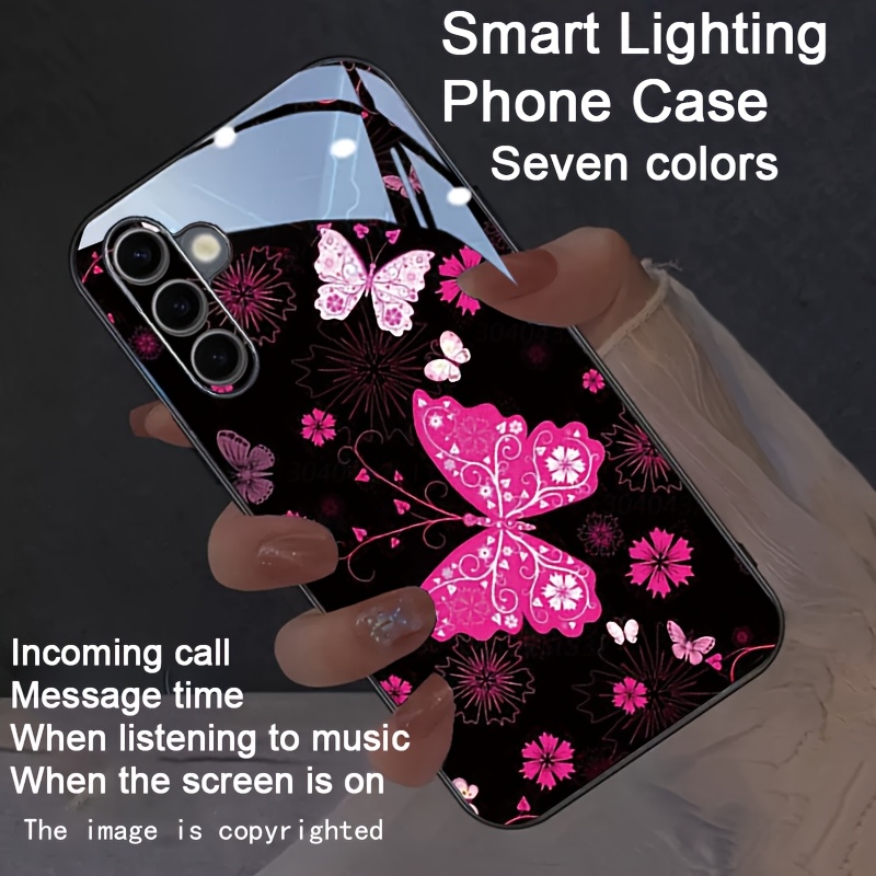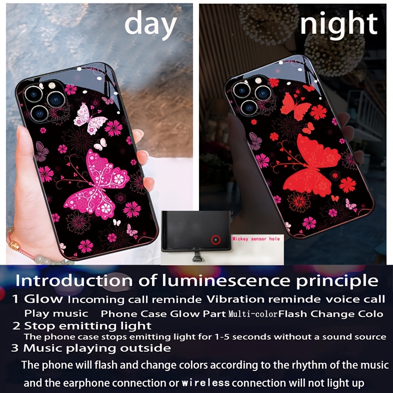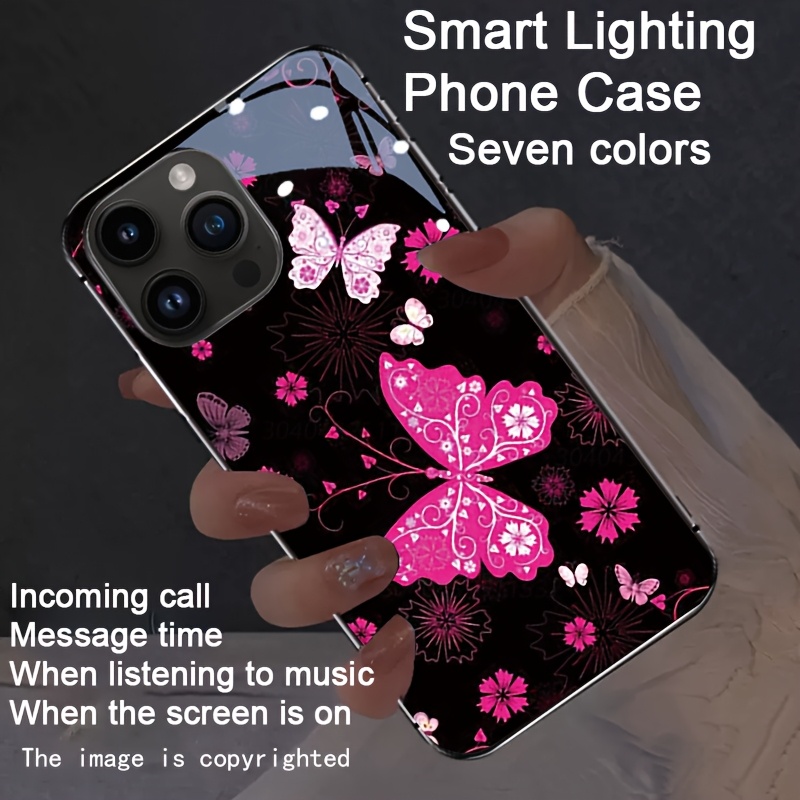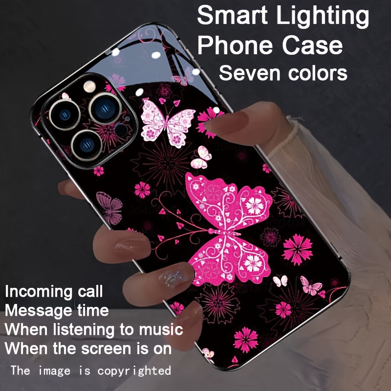 Butterfly Dancing with Flowers Colorful Smart Voice Controlled Luminous Phone Case Suitable for 16promax/15promax/14promax/13promax/12promax/11promax/XSmax/7G Smart Luminous Voice Controlled Phone Case - Luminous Technology,