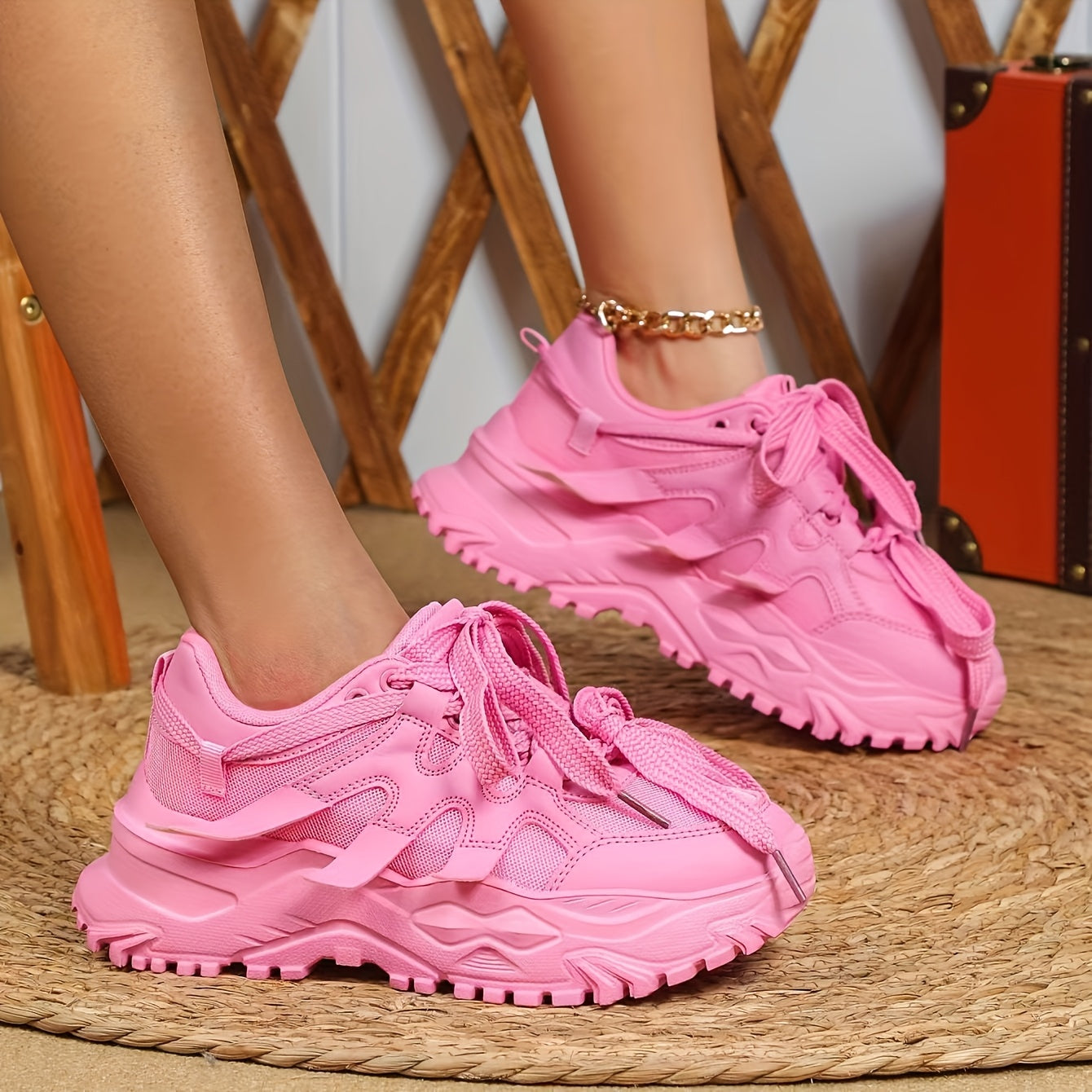Chunky High-Top Sneakers for Women - Pink Breathable Mesh Dad Walking Shoes with Cushioned EVA Sole, Comfortable & Stylish for Casual Outings & Light Activities, Light Activity Footwear | Stylish Hightops | Sneakers, Ladies S