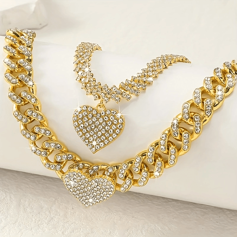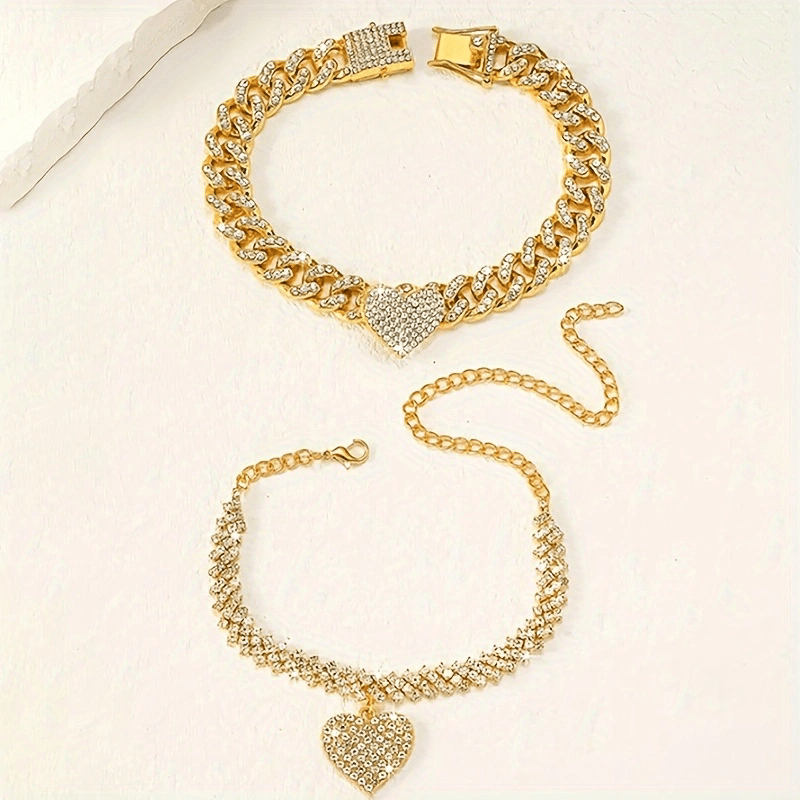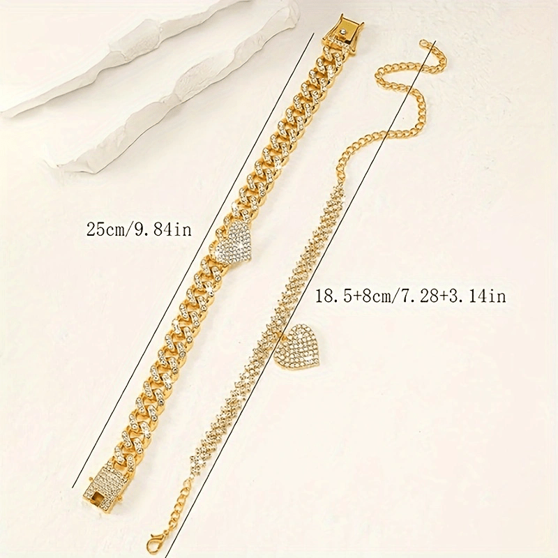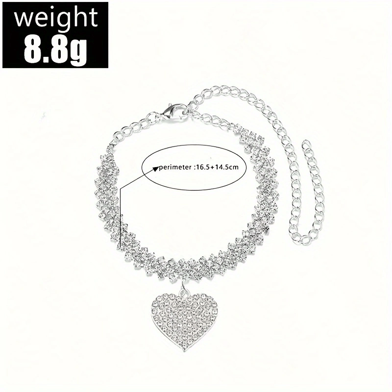Cross-Border Hot Heart Shape Rhinestone Anklet Suit Personality Simple Titanium Steel Anklet Beach Ornament Ankle Chain