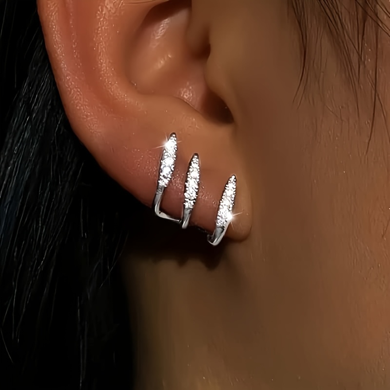 Elegant Women’s Hoop Earrings - Three-Pronged Curved Design, Shiny Metallic Finish, Low Allergy, Perfect for Casual Attire or Gift Giving (Valentine’s Day, Christmas), Quirky Earrings, Best for Christmas
