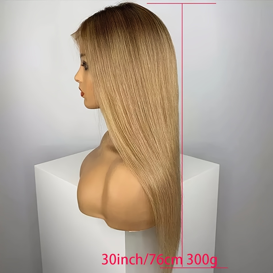 [Everyday Elegance] Super Soft Gradient Brown 30" Long Straight Synthetic Lace Front Wig - Density, 13x4x1 Deep Parting, Glueless Pre-Plucked, Heat Resistant for Daily Wear, High Temperature Fibe