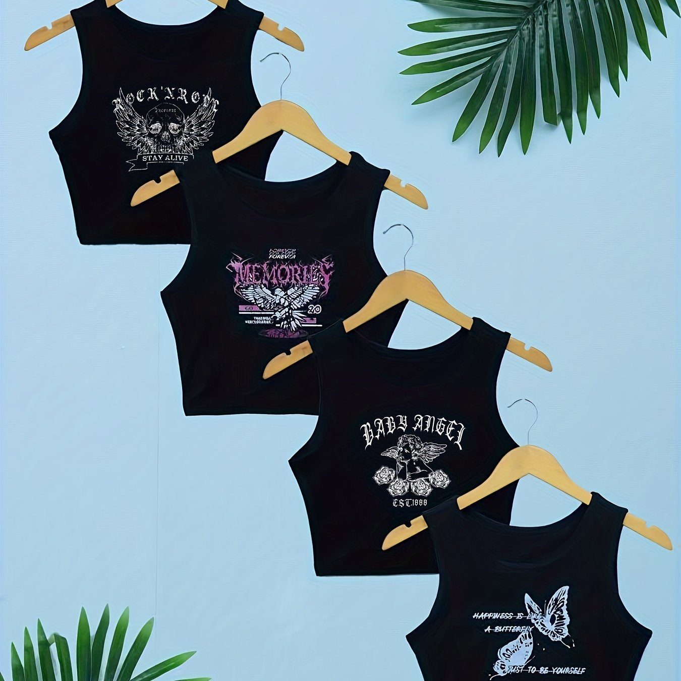 Graphic Print Tank Top 4 Pack, Sexy Crew Neck Summer Sleeveless Top, Women's Clothing