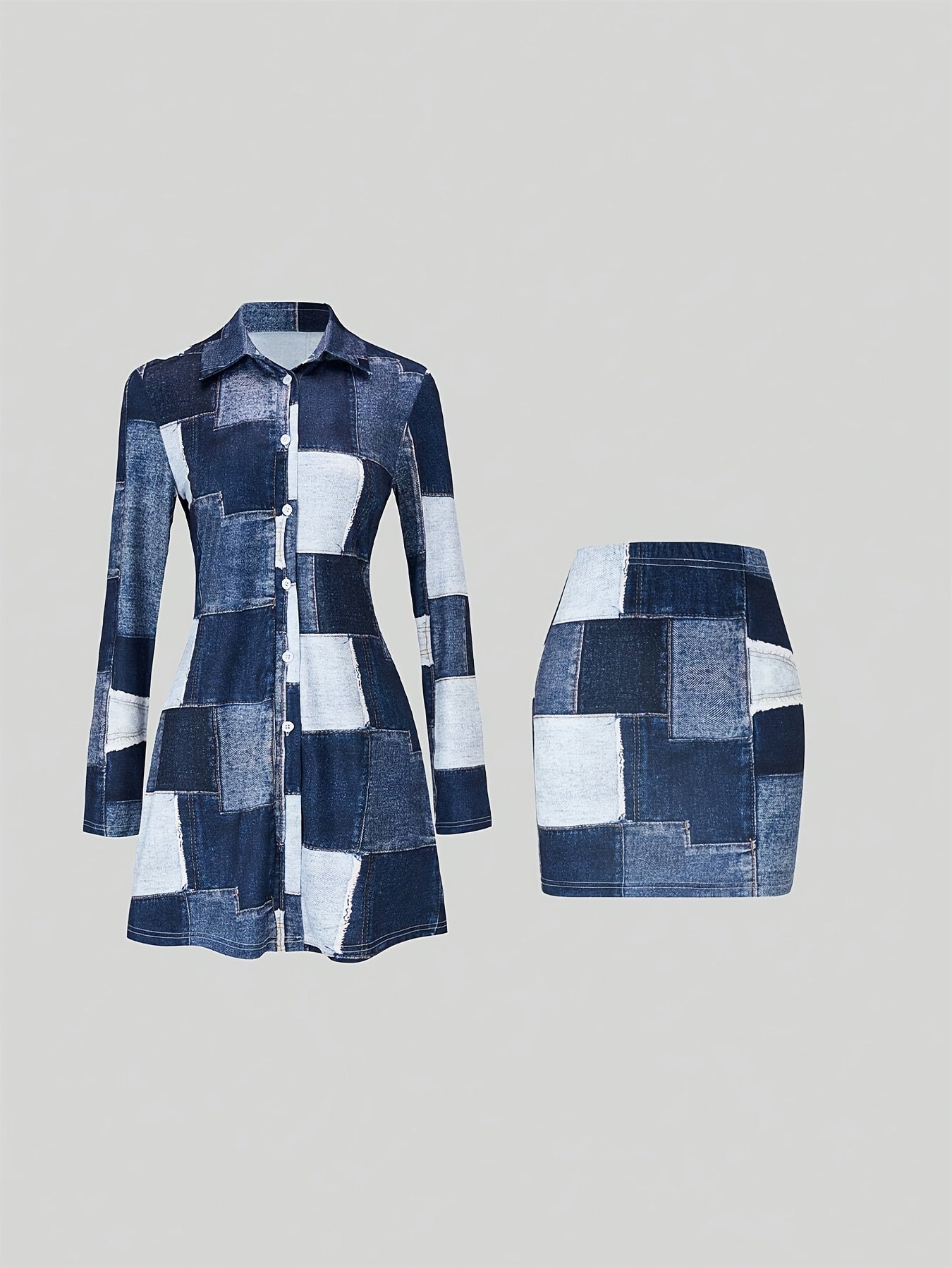 Ladies Plaid Printed Button-lapel Knitted Top And Skirt Suit, Spring And Summer Suitable For Daily Leisure And Business Office, Polyester Fiber, Women'S Wear