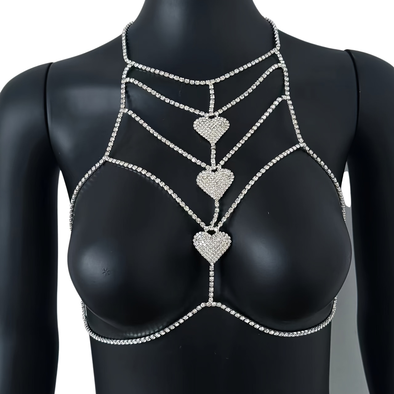 Luxurious Silvery-Plated Rhinestone Heart Body Chain - Sexy Multi-Layer Chest & Neck Jewelry for Women, Perfect for Parties and Bikini Accessories