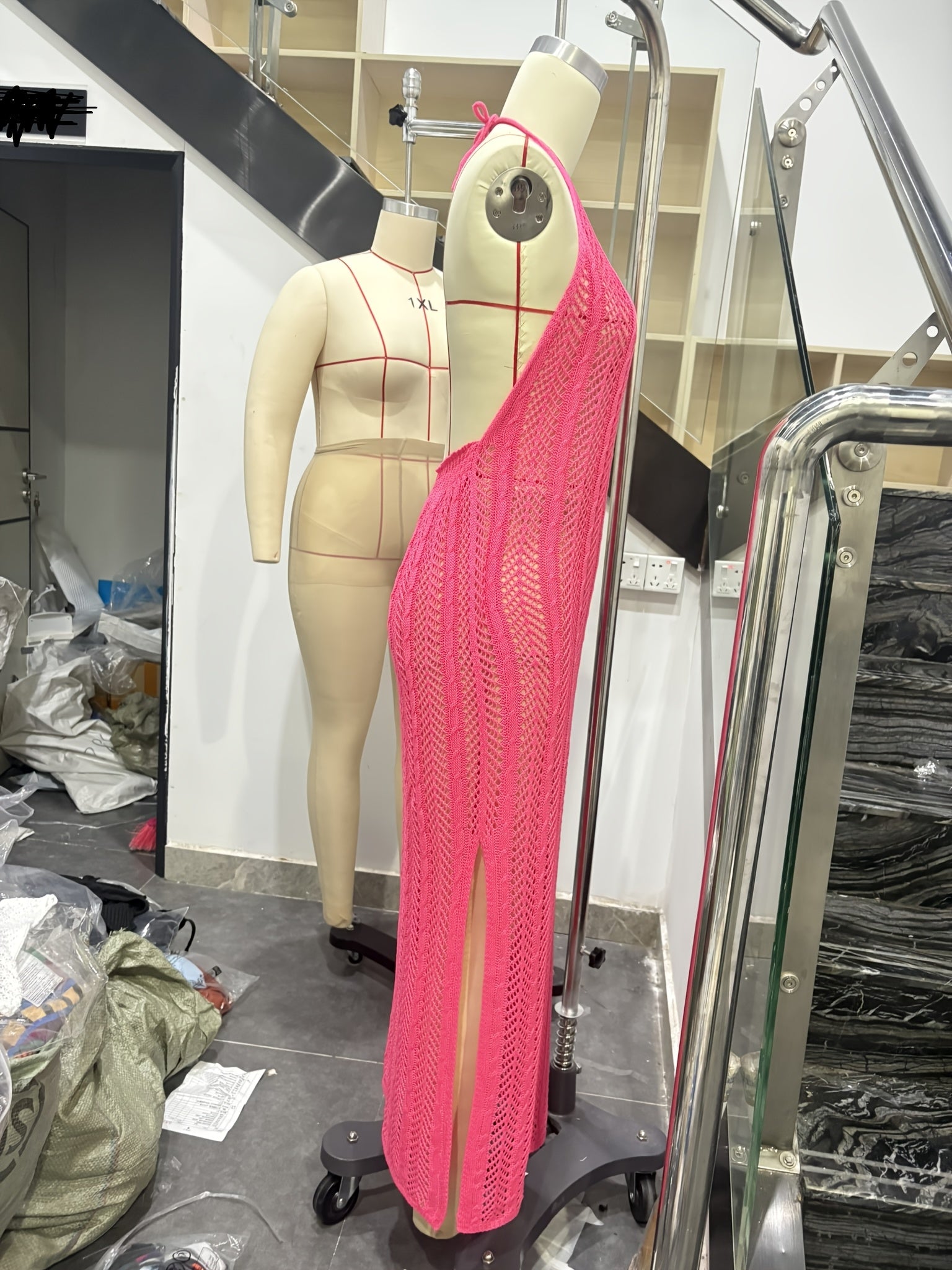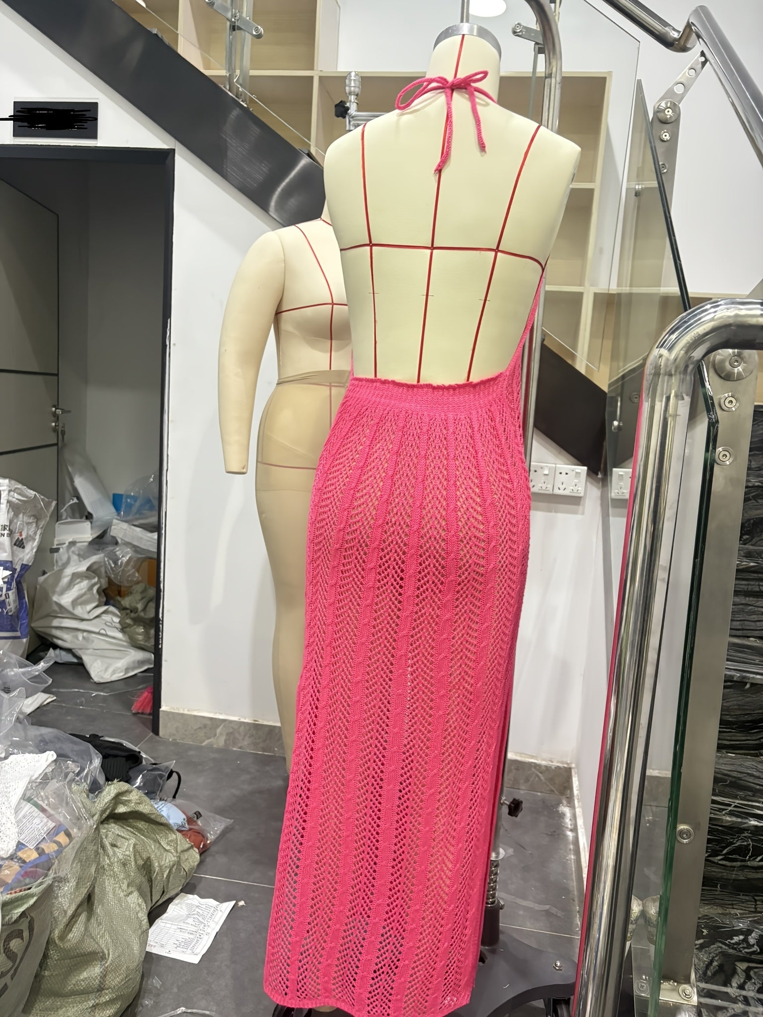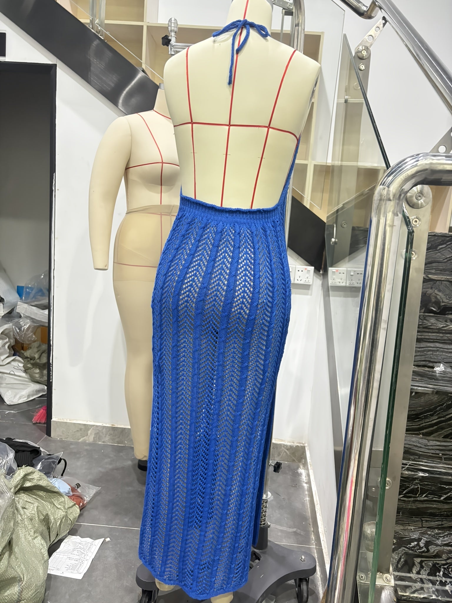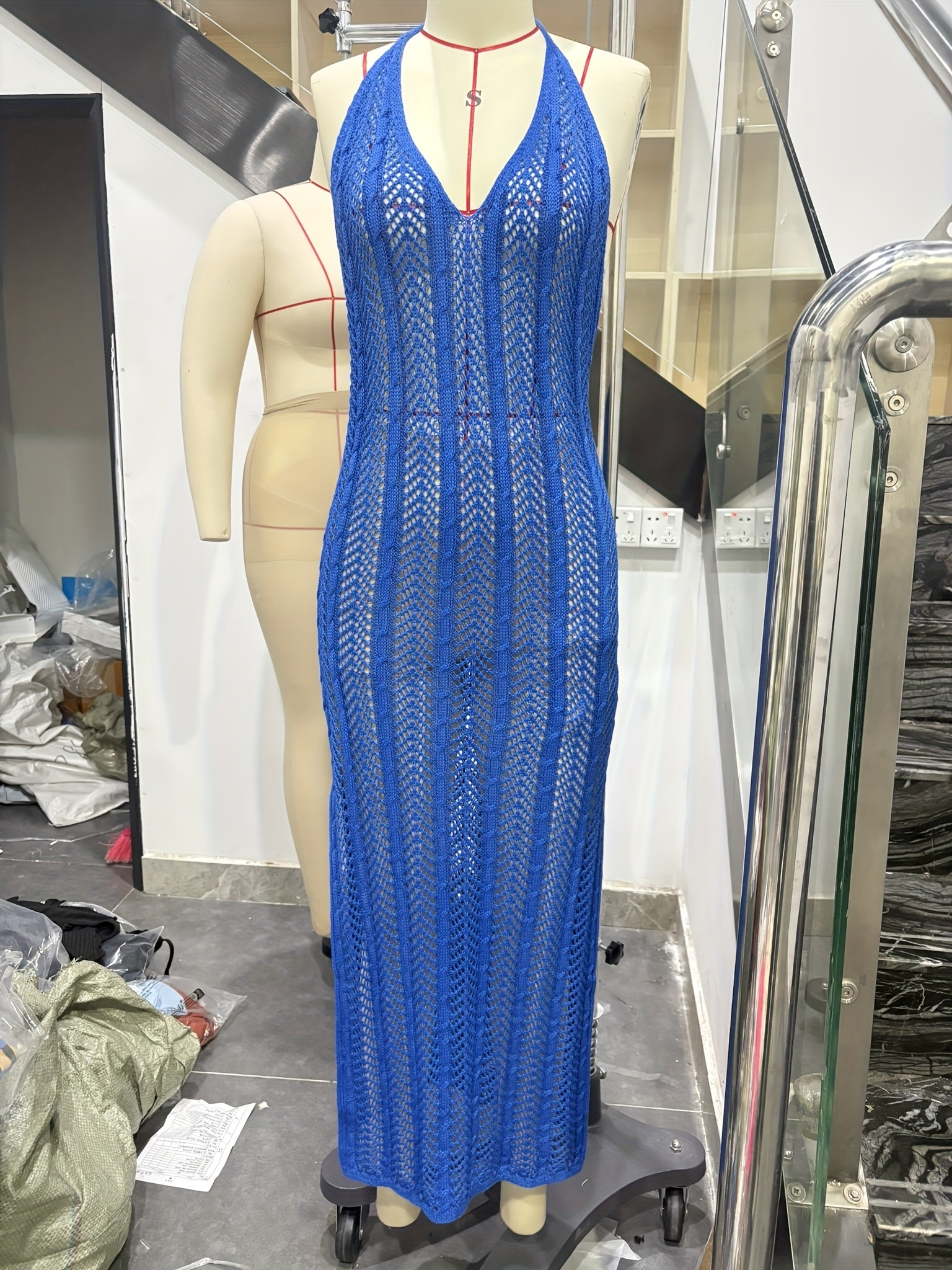 MOXDO Women's Halter Neck Deep V-Neck Beach Cover-Up Dress - Sexy Semi-Sheer Wrap with Cut-Out Details, Stretchy Machine-Washable Long Dress for Poolside & Tropical Vacations, Beach Dress, Vacation Coverup, Elegant Beachwear,