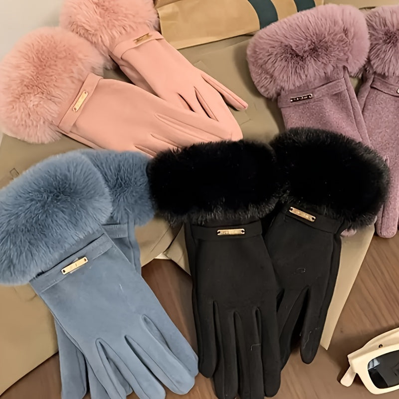 Plush Furry Cuff, Double-Layer Thick Insulation, Windproof & Warm, Ideal for Outdoor Activities & Cycling, Available in Pink/Purple/Blue/Gray