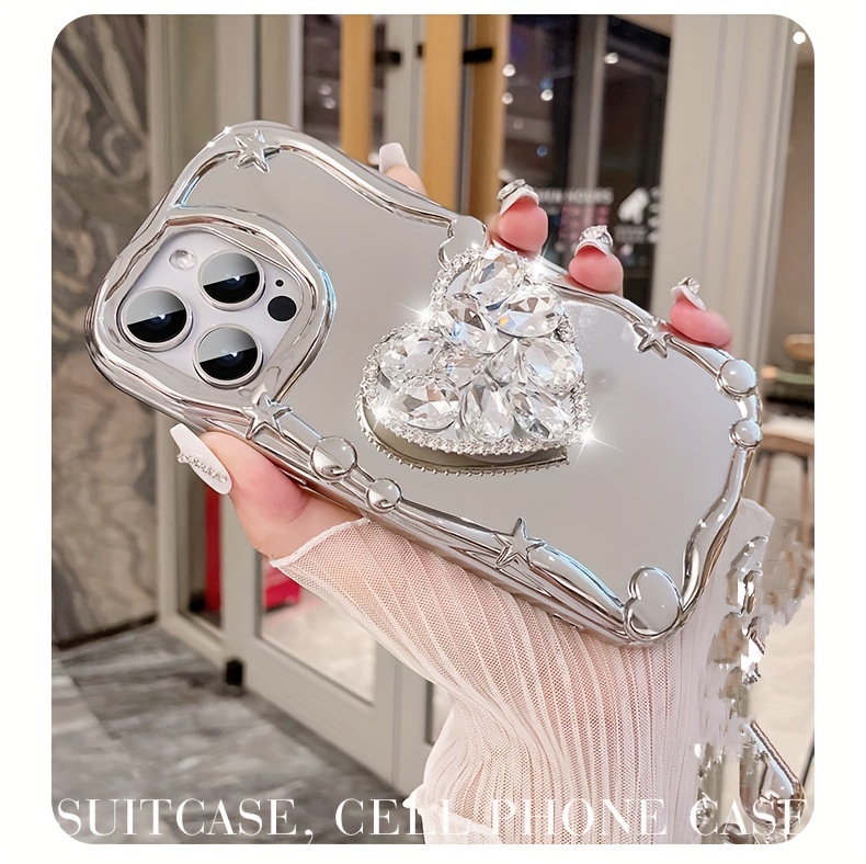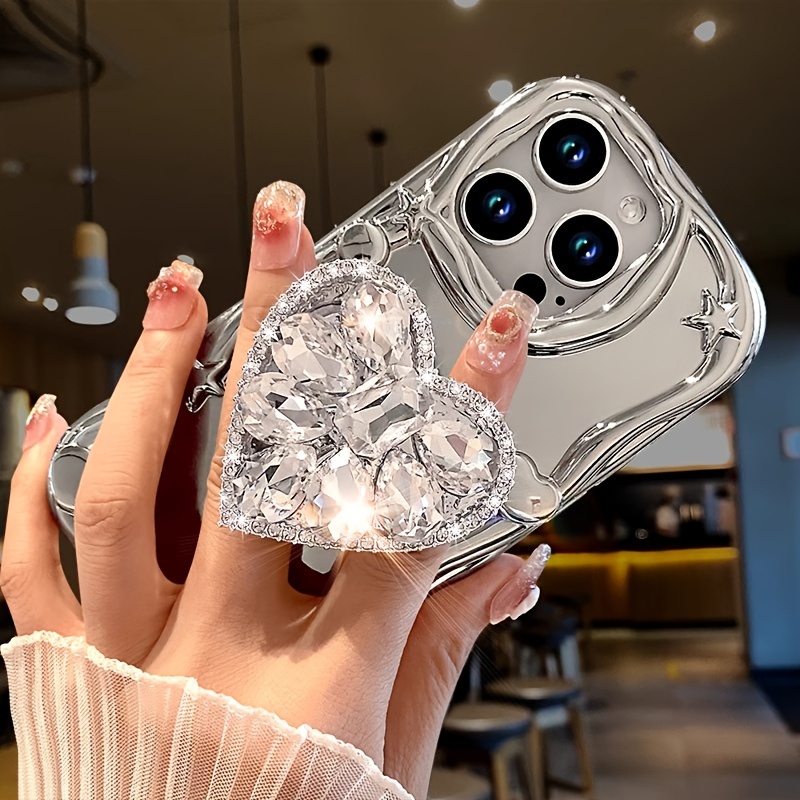 Rhinestone iPhone Case Bracket - Silvery Mirror Love Phone Bracelet