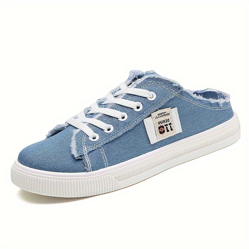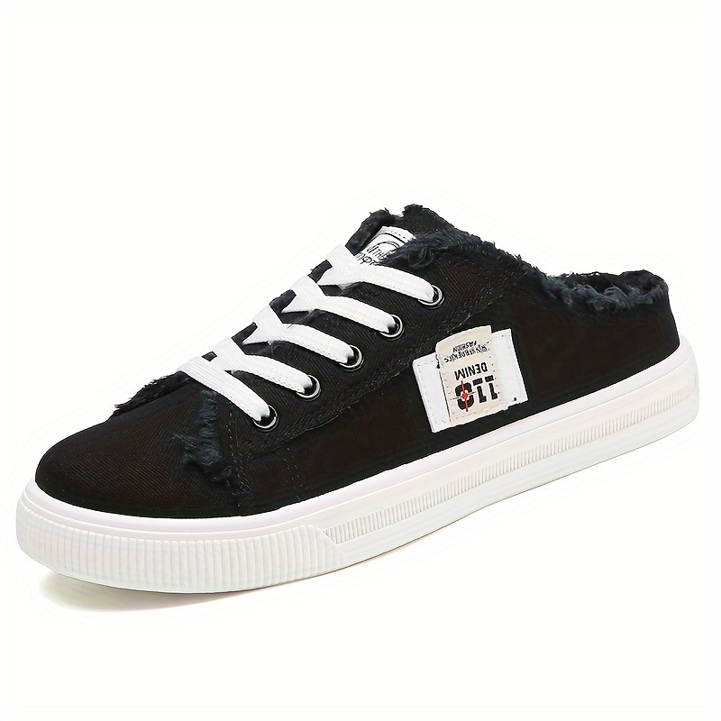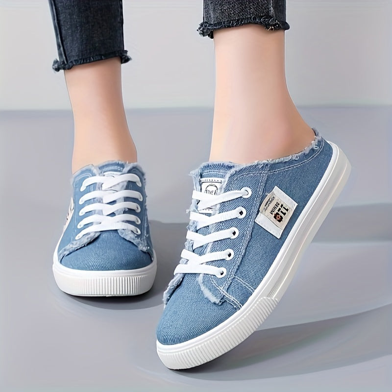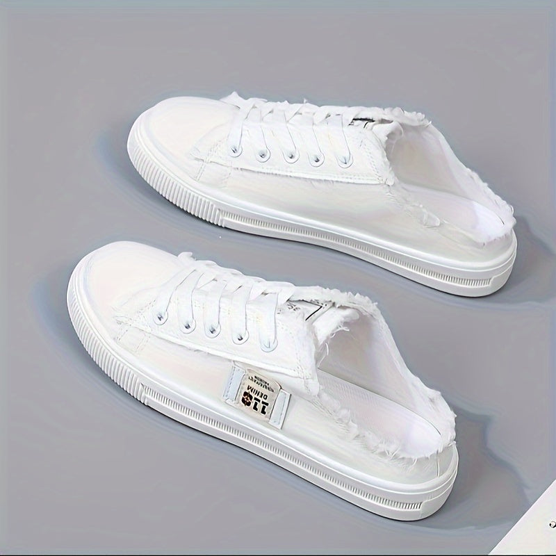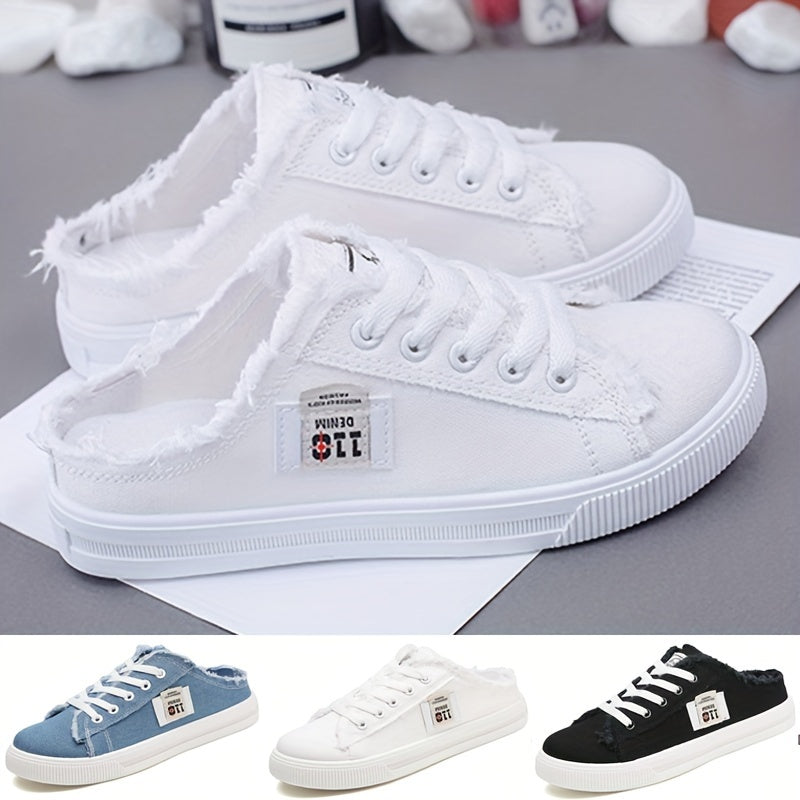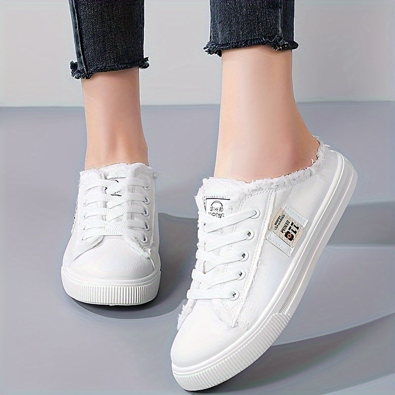 Round Toe Breathable Women's Solid Canvas Shoes Slippers Lace Up Slip On, All-match Footwear