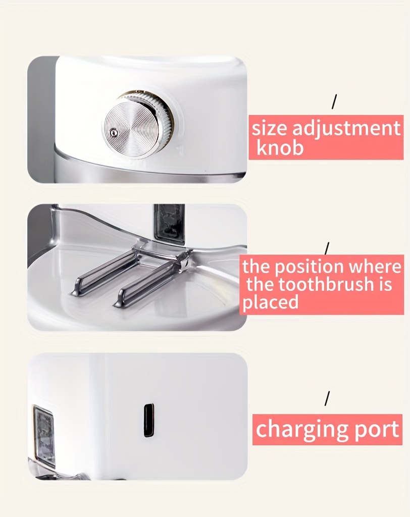 Unlike conventional dispensers, the automatic toothpaste dispenser uses infrared sensing technology. Just position your toothbrush in the detection zone, and the toothpaste will be dispensed automatically. There's no need to press or squeeze the dispenser.