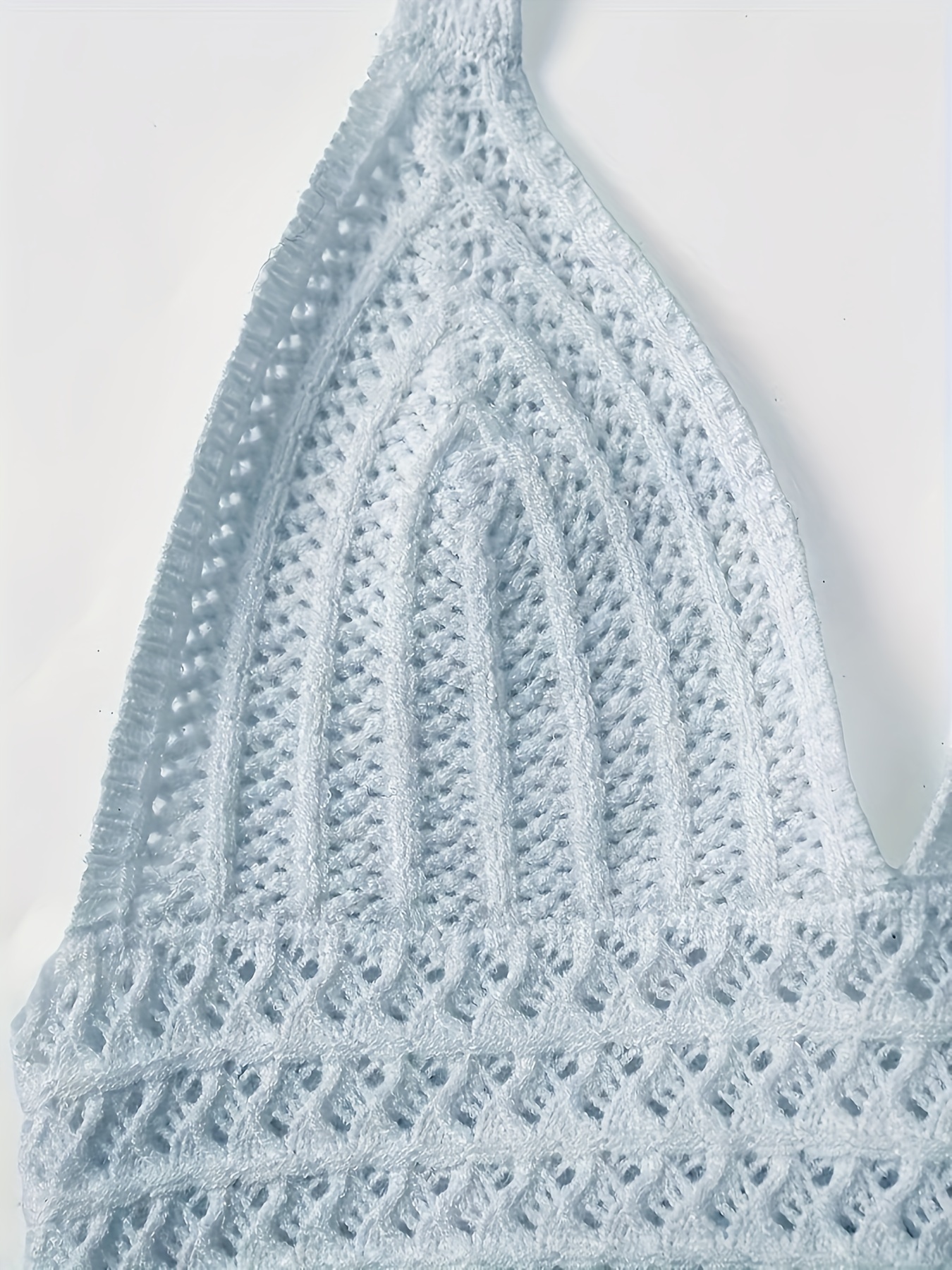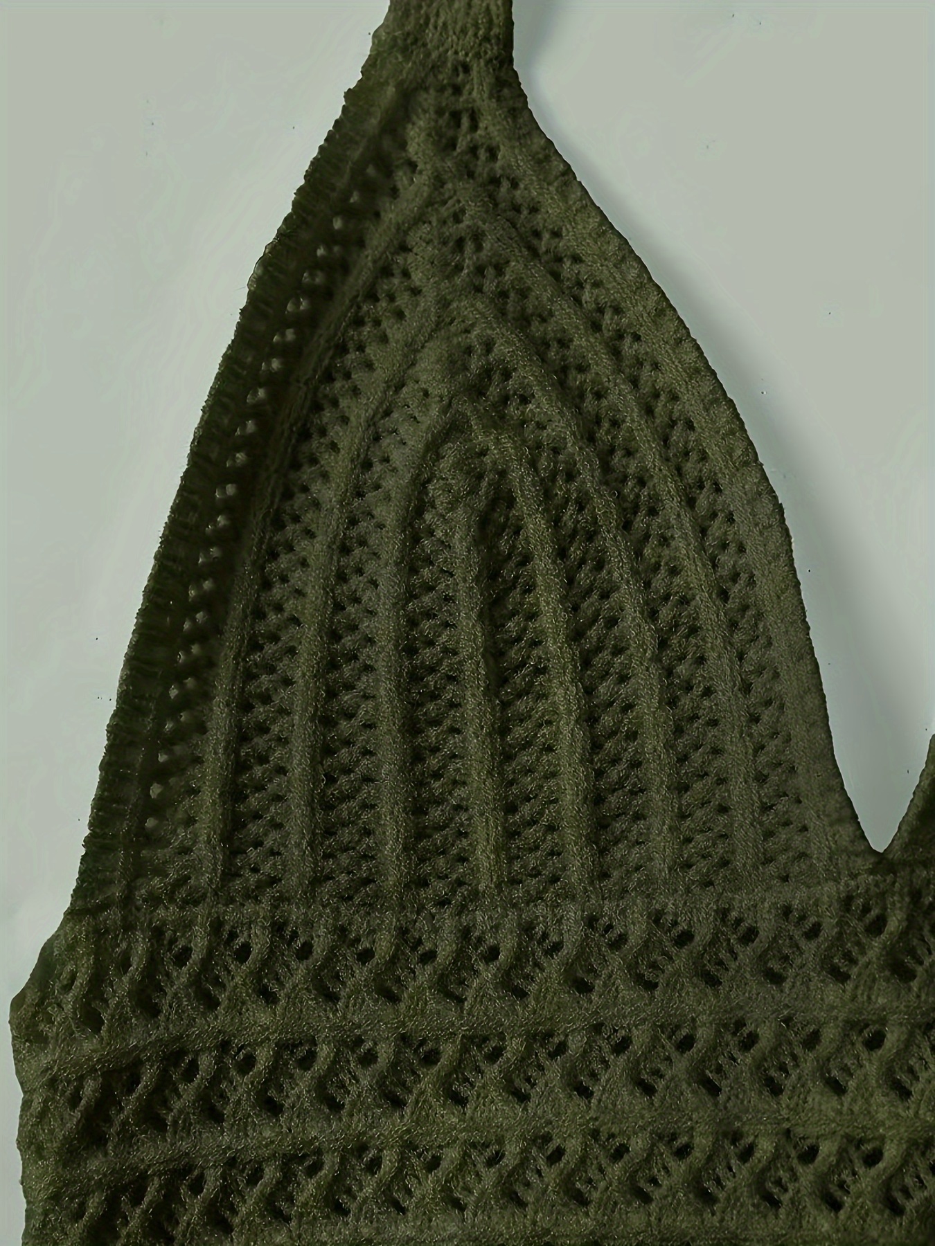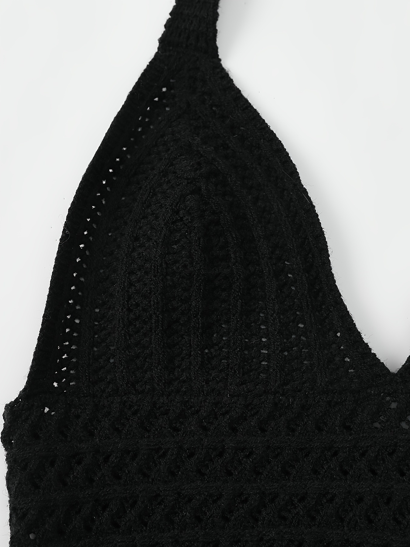 Solid Cross Tie Back Halter Top, Versatile V-neck Backless Crop Knitted Top, Women's Clothing