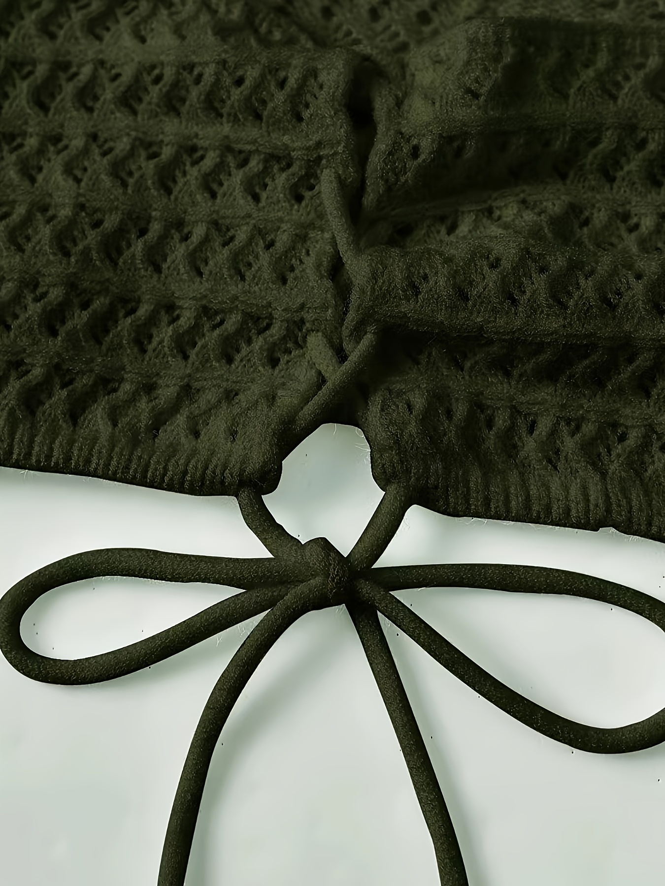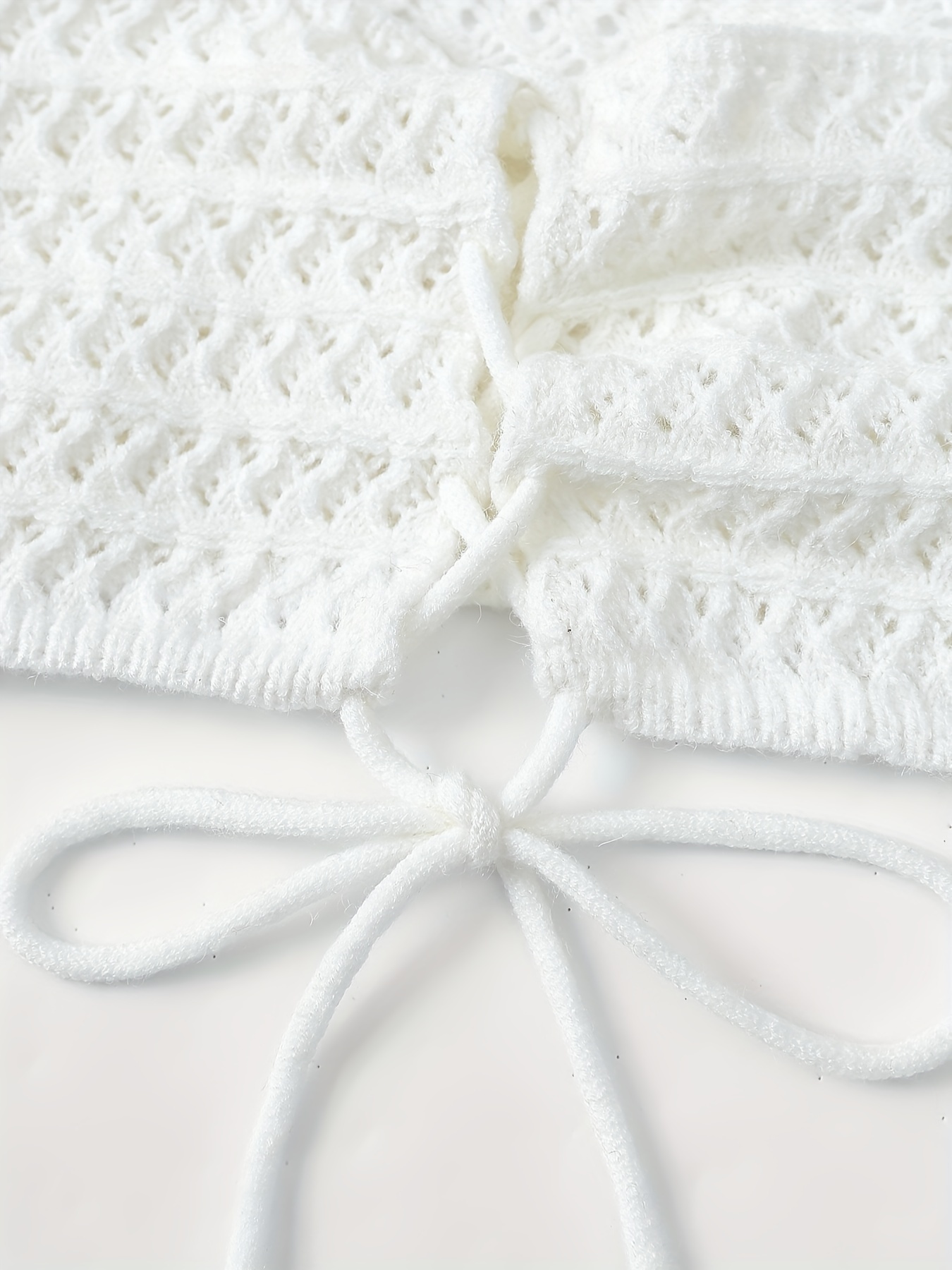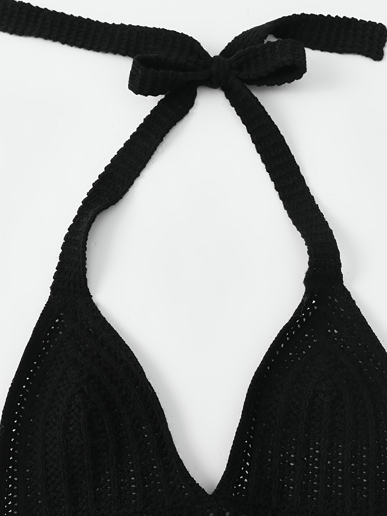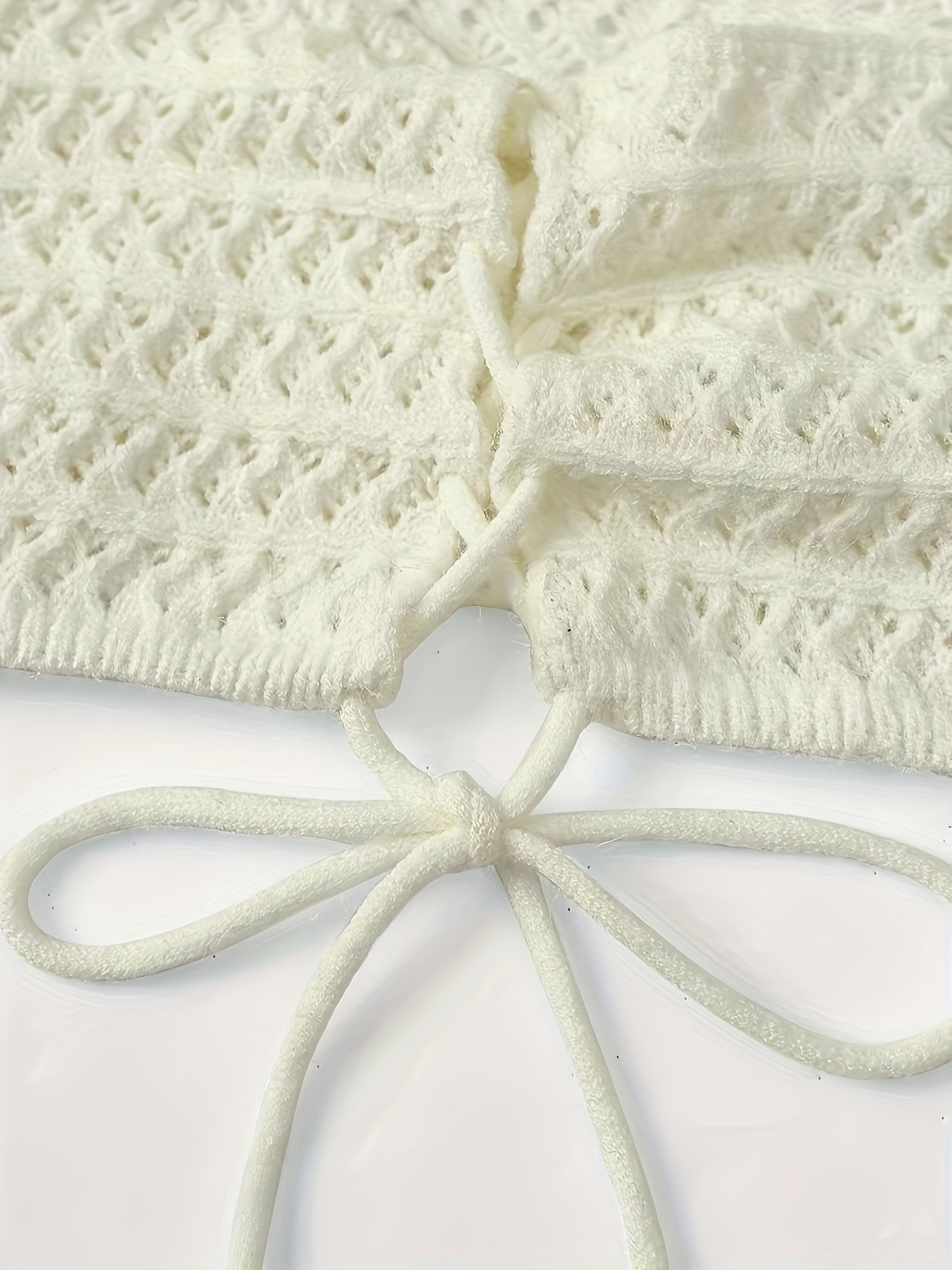 Solid Cross Tie Back Halter Top, Versatile V-neck Backless Crop Knitted Top, Women's Clothing