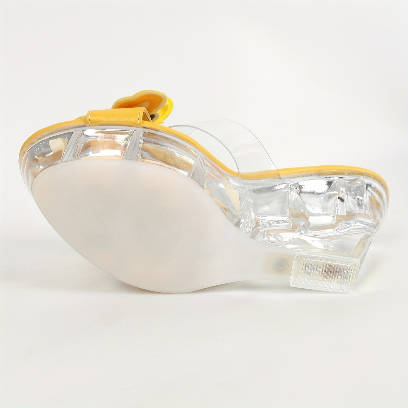 Women’s Transparent High Heel Sandals with Yellow Butterfly Accents – Stylish Slip-On Platform Wedge Shoes for Nightclubs, Banquets, and Fashion Shows, Fashion Show Sandals | Butterfly Accent Sandals | Durable Rubber Sole
