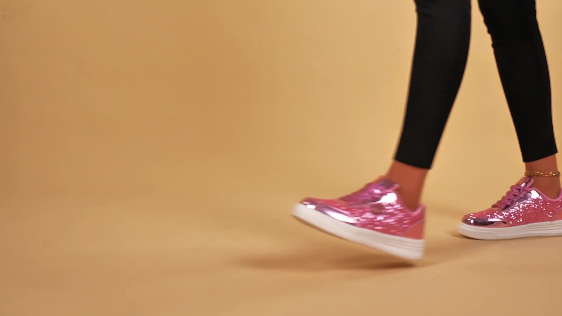 Women'S Glittery Sequin Sneakers - Golden & White Low-Top Lace-Up Casual Skate Shoes with MD Sole, Fabric Insole, and Synthetic Upper for All Season