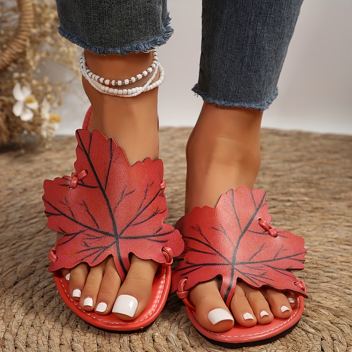 Women'S Maple Leaf Flat Sandals, Lightweight Soft Sole Summer Flats, Casual Beach Slides, All-season Slip-on Open Toe Strappy Back Shoes with TPR Sole