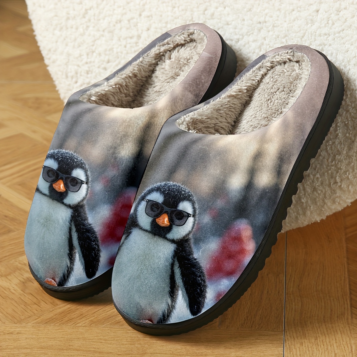 Women's Penguin Print Slip-On Slippers - All-Season Indoor House Shoes with Soft Fabric Upper & TPR Sole, Cute Animal Design for Cozy Home Comfort, Cute Slippers