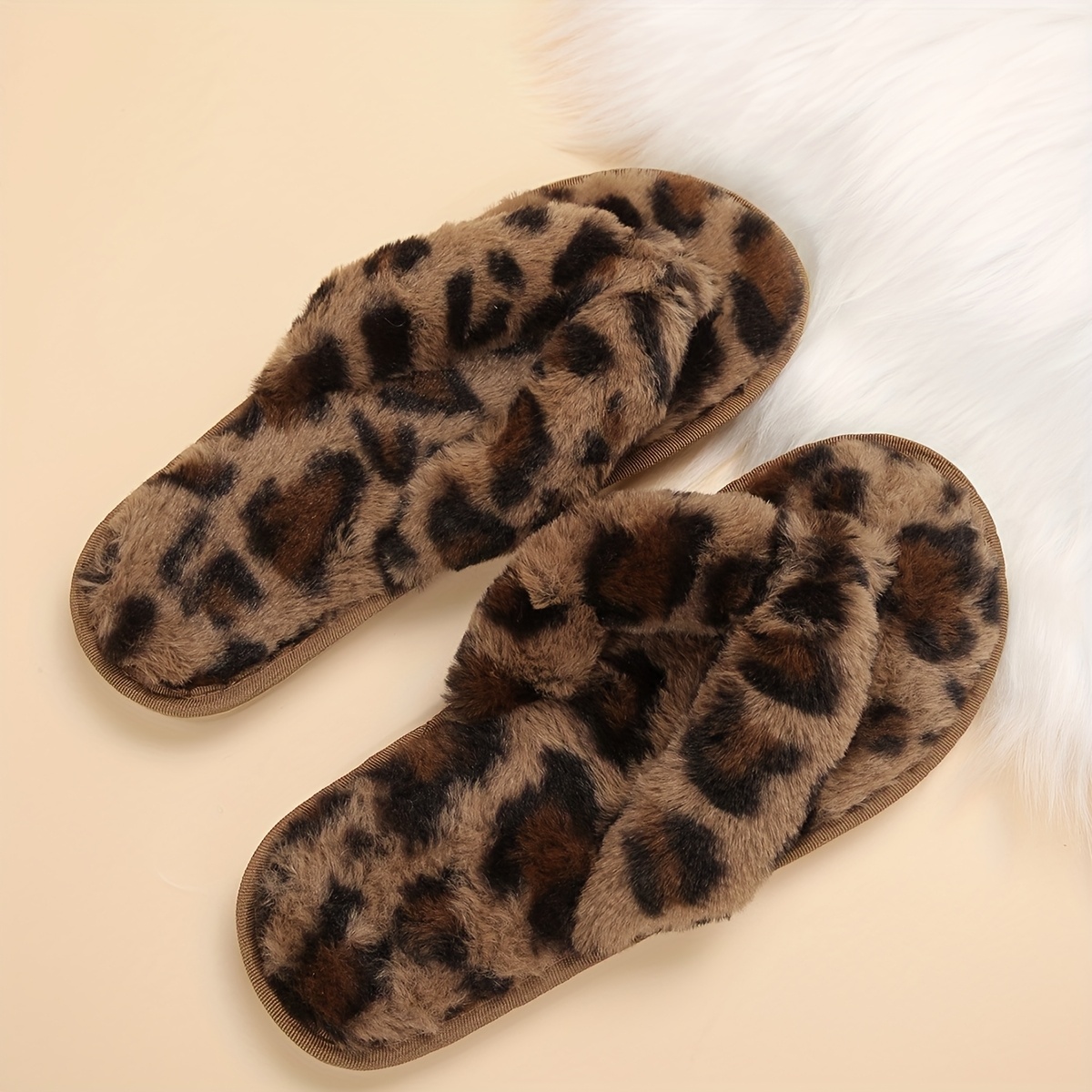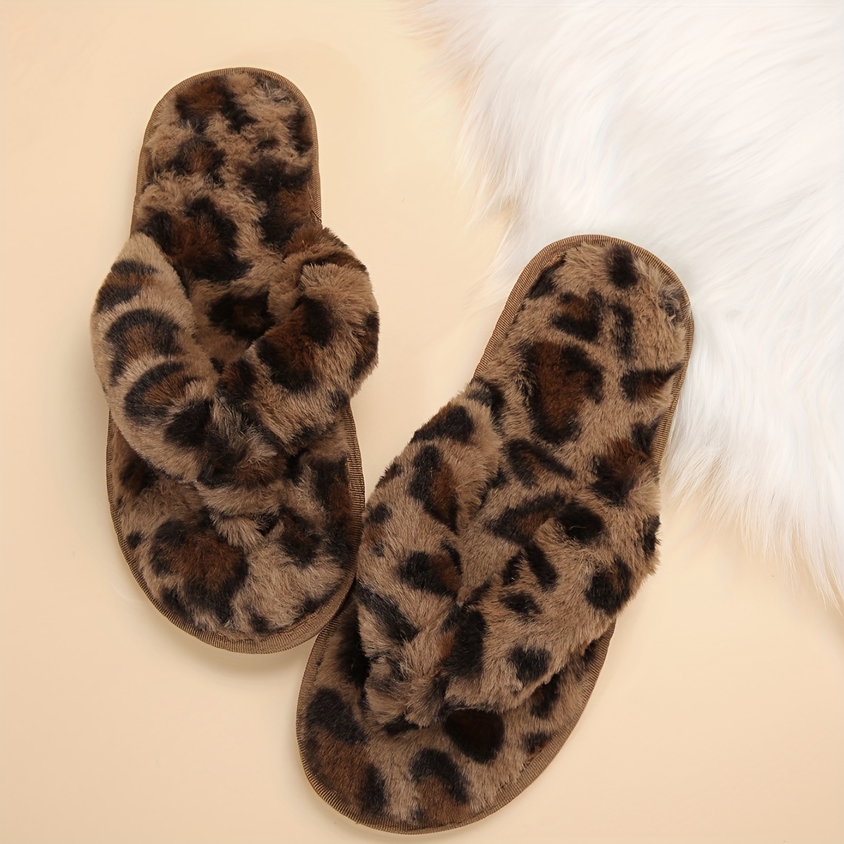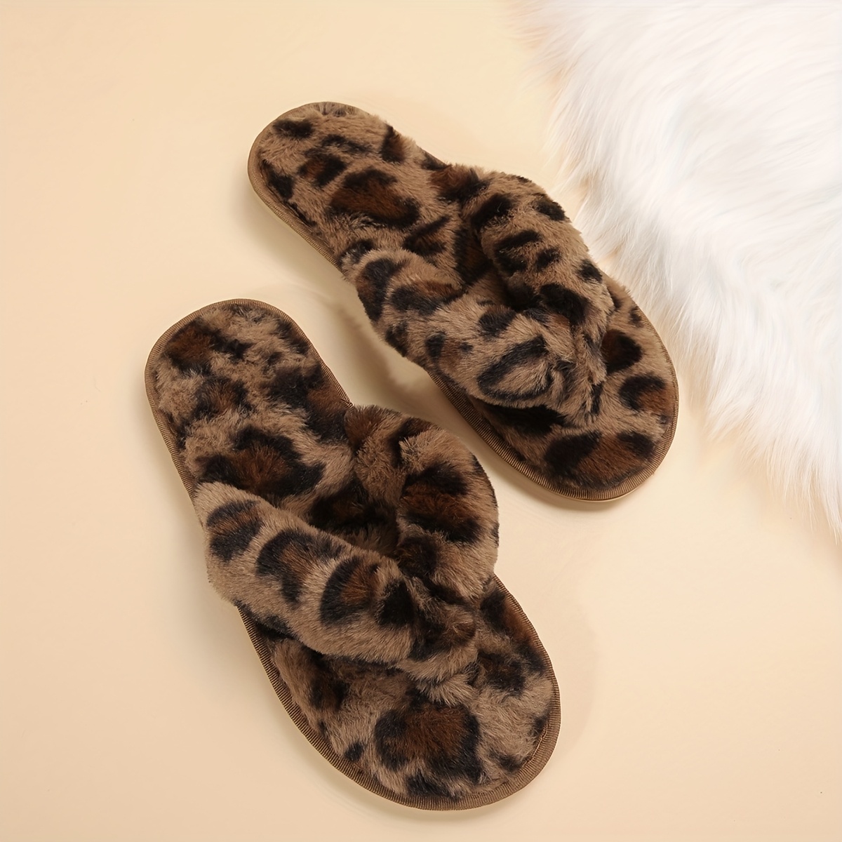 Women's Plush Leopard Print Slip-On Slippers - All-Season Indoor House Shoes with Soft Fabric Upper & TPR Sole, Cozy Animal Design for Home Comfort, Slipresistant Footwear | Playful Footwear, Ladies Slippers