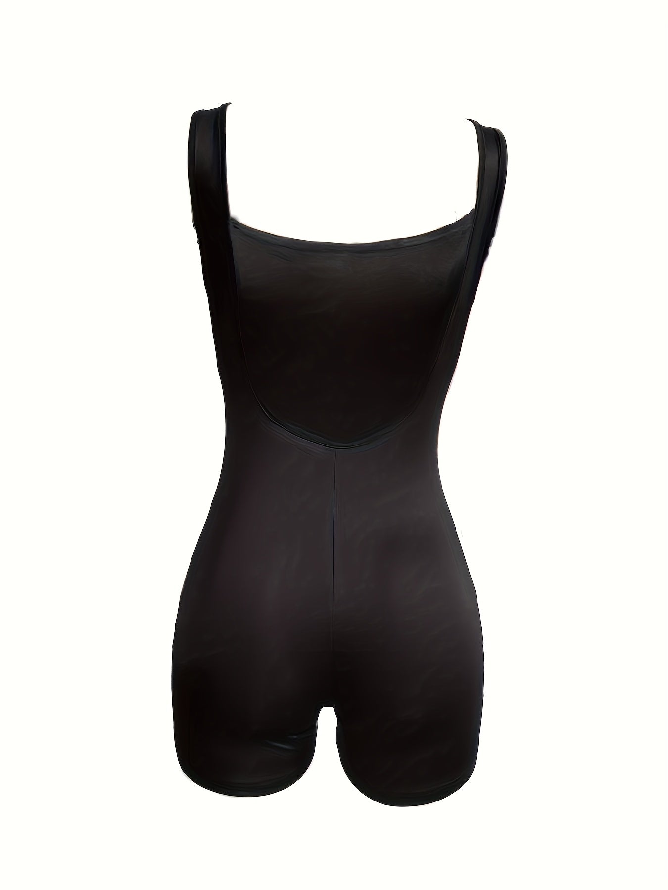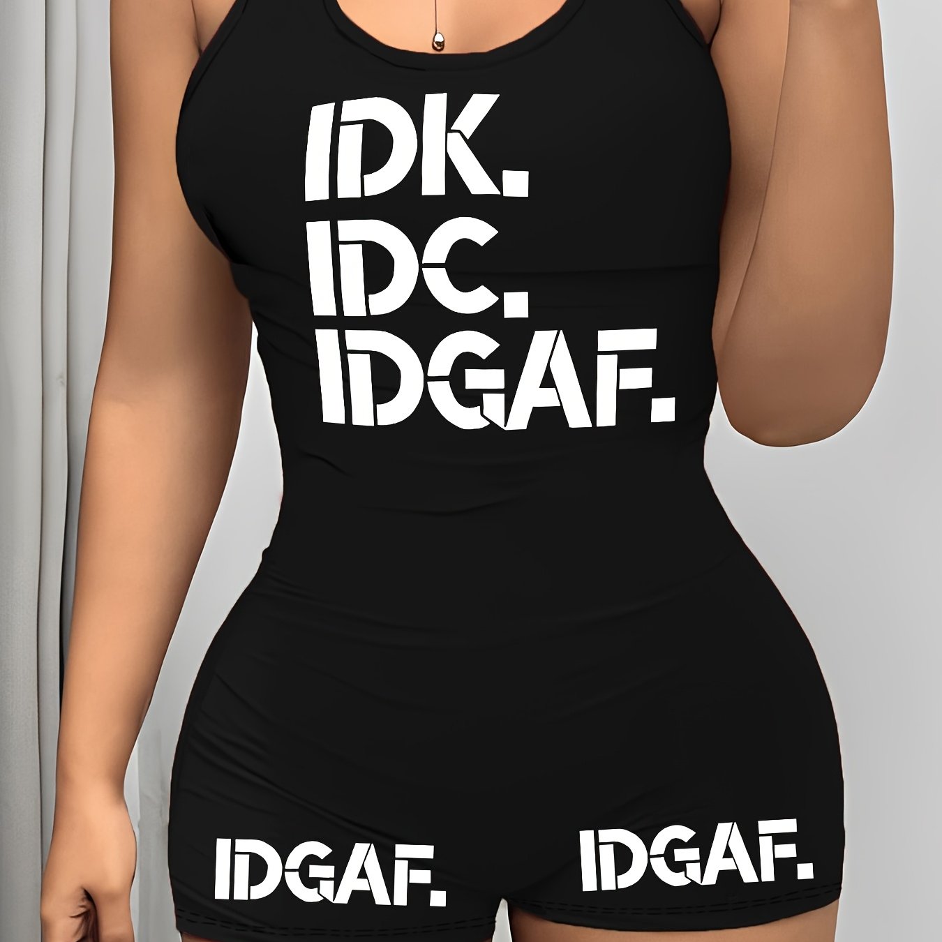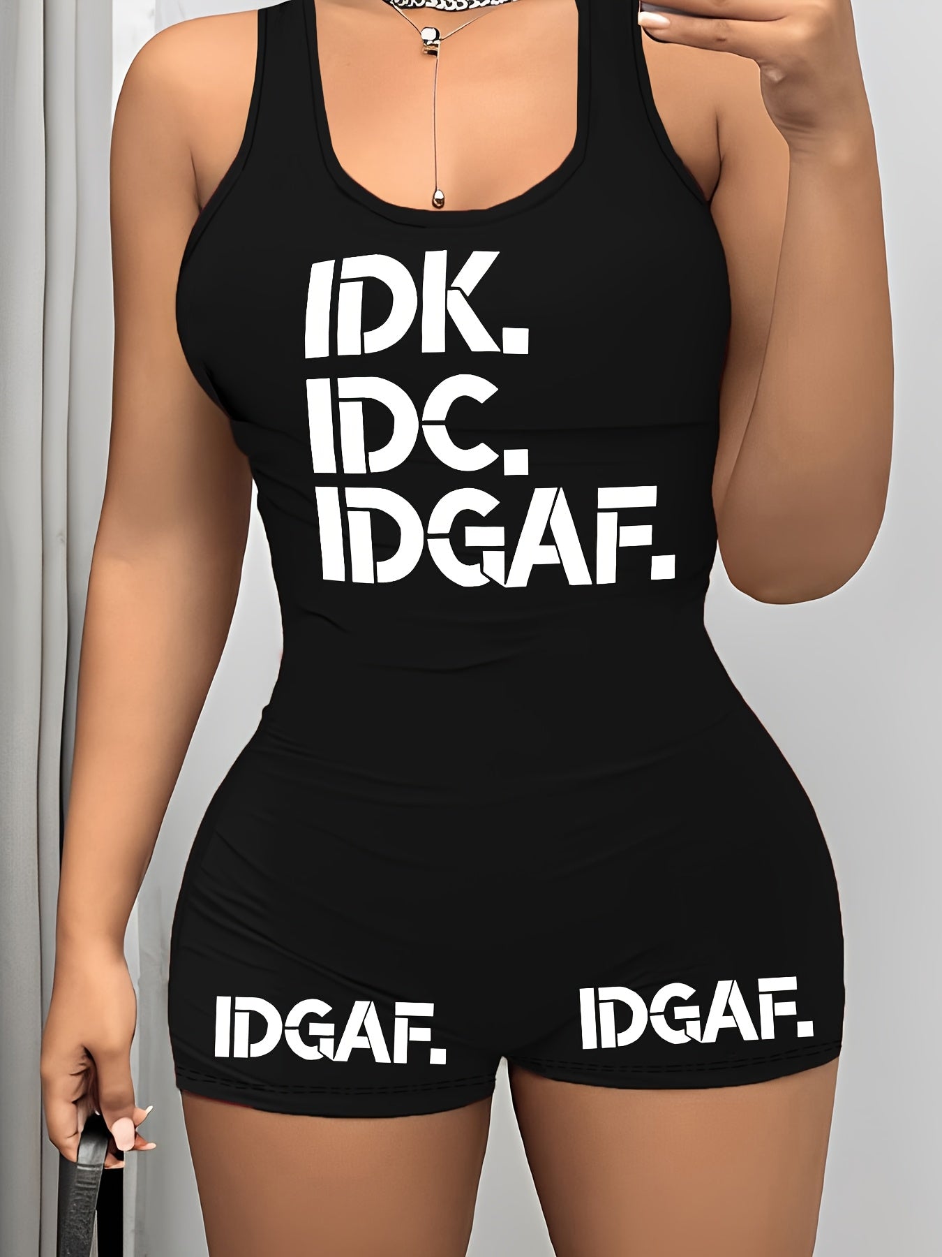Women's Sexy Backless Cut-Out Letter Print Jumpsuit - Stretchy Polyester-Spandex Blend, Square Neck, Machine Washable, All-Season Casual Wear, Sexy Jumpsuit