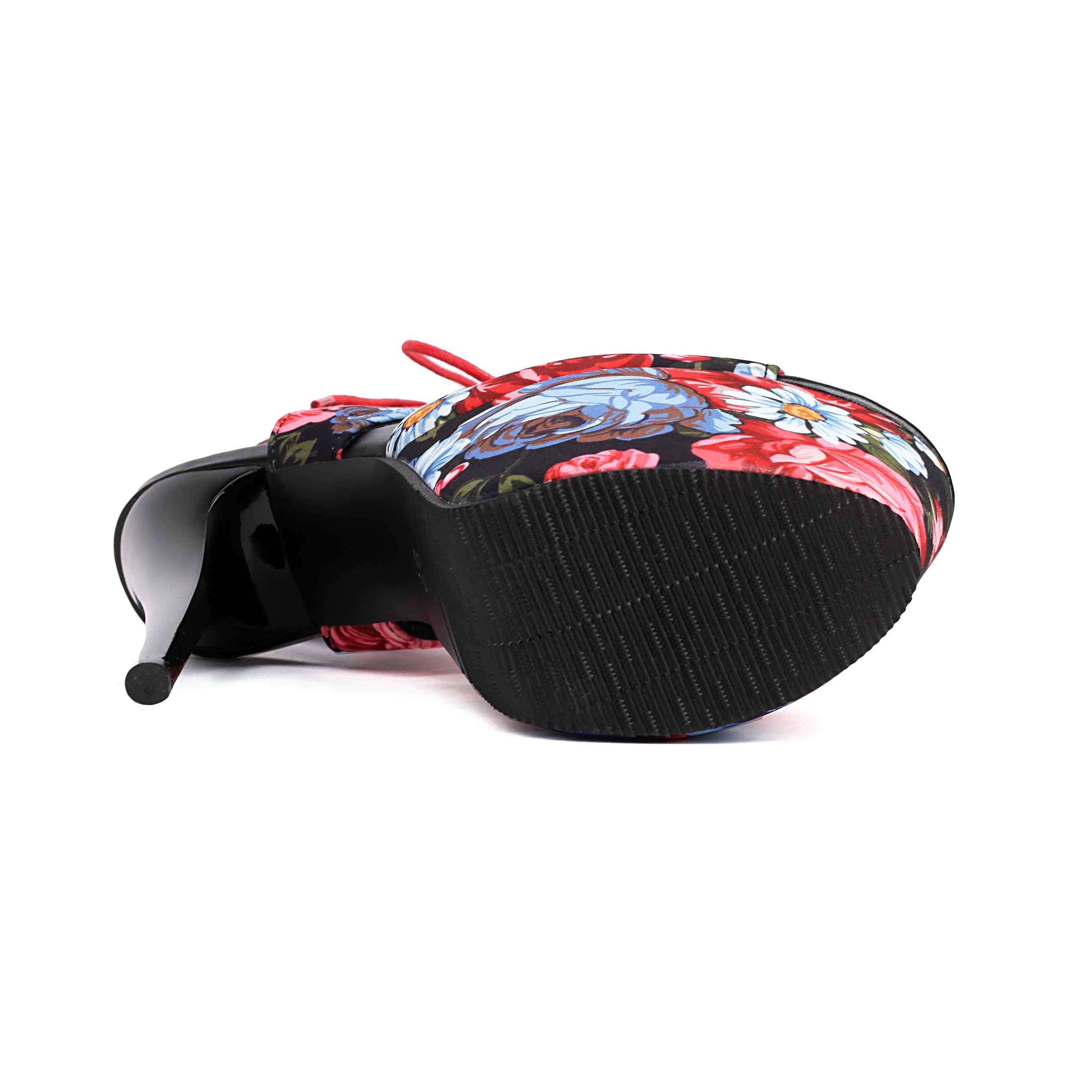 Women's Skull & Flower Pattern Stiletto Heels with Open Toe and Platform, Side Zipper Dress Pumps