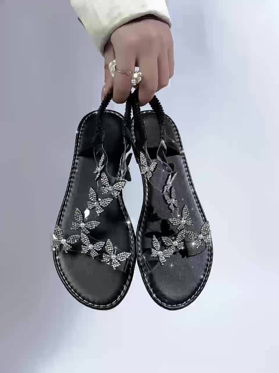 Women'S Summer Flat Sandals with Butterfly Embellishments - Slip-On, Open Toe, Synthetic Upper, TPU Sole, All-Season Comfort, Casual Footwear|Butterfly Embellishments|Synthetic Upper, Sandals for Women