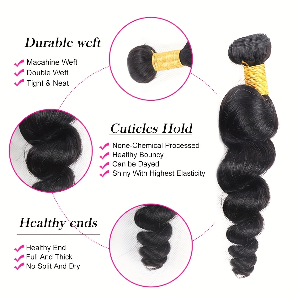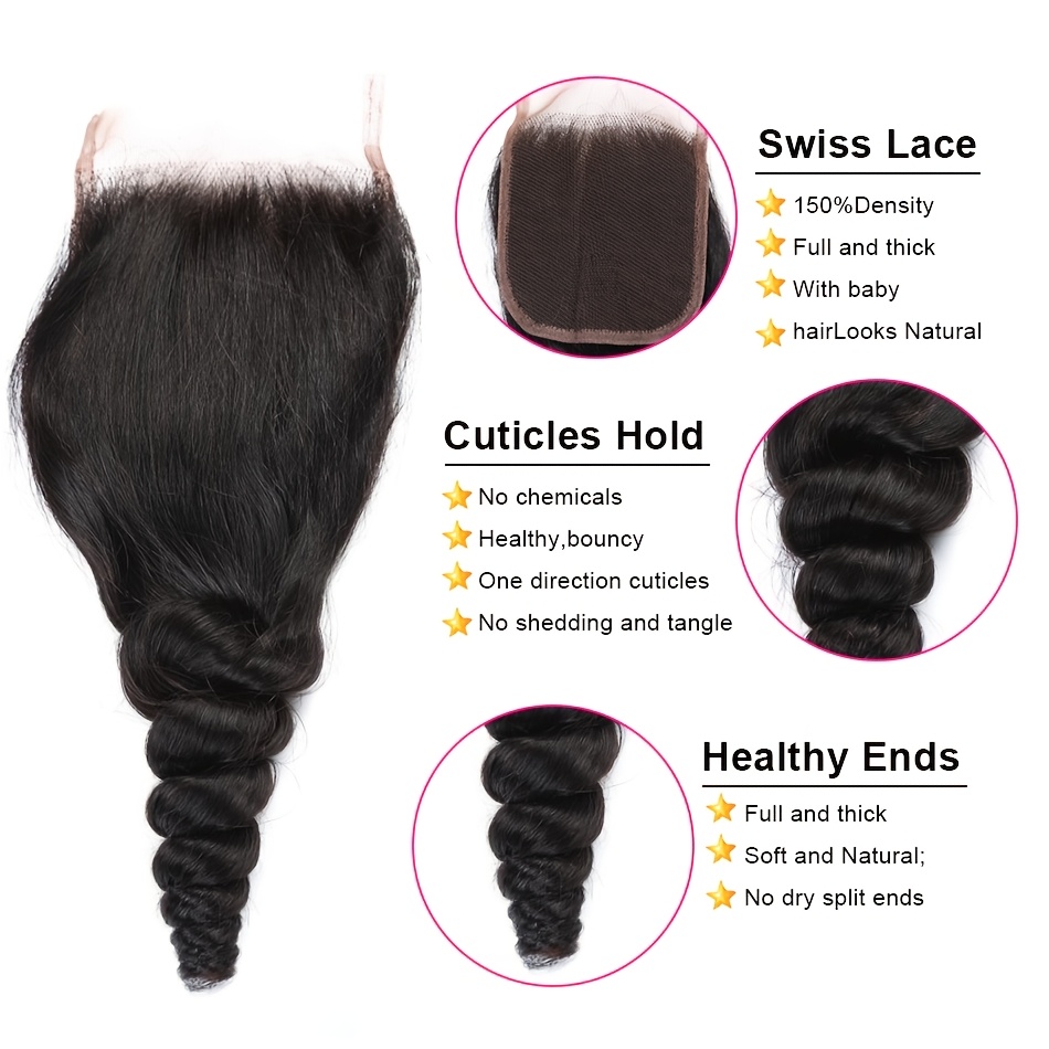 14A Loose Wave Bundles with Closure Human Hair 3 Bundles with 5x5 Lace Closure for Women Free Part 100% Unprocessed Virgin Peruvian Loose Deep Wave Human Hair Weave Bundles with Lace Closure Natural Color