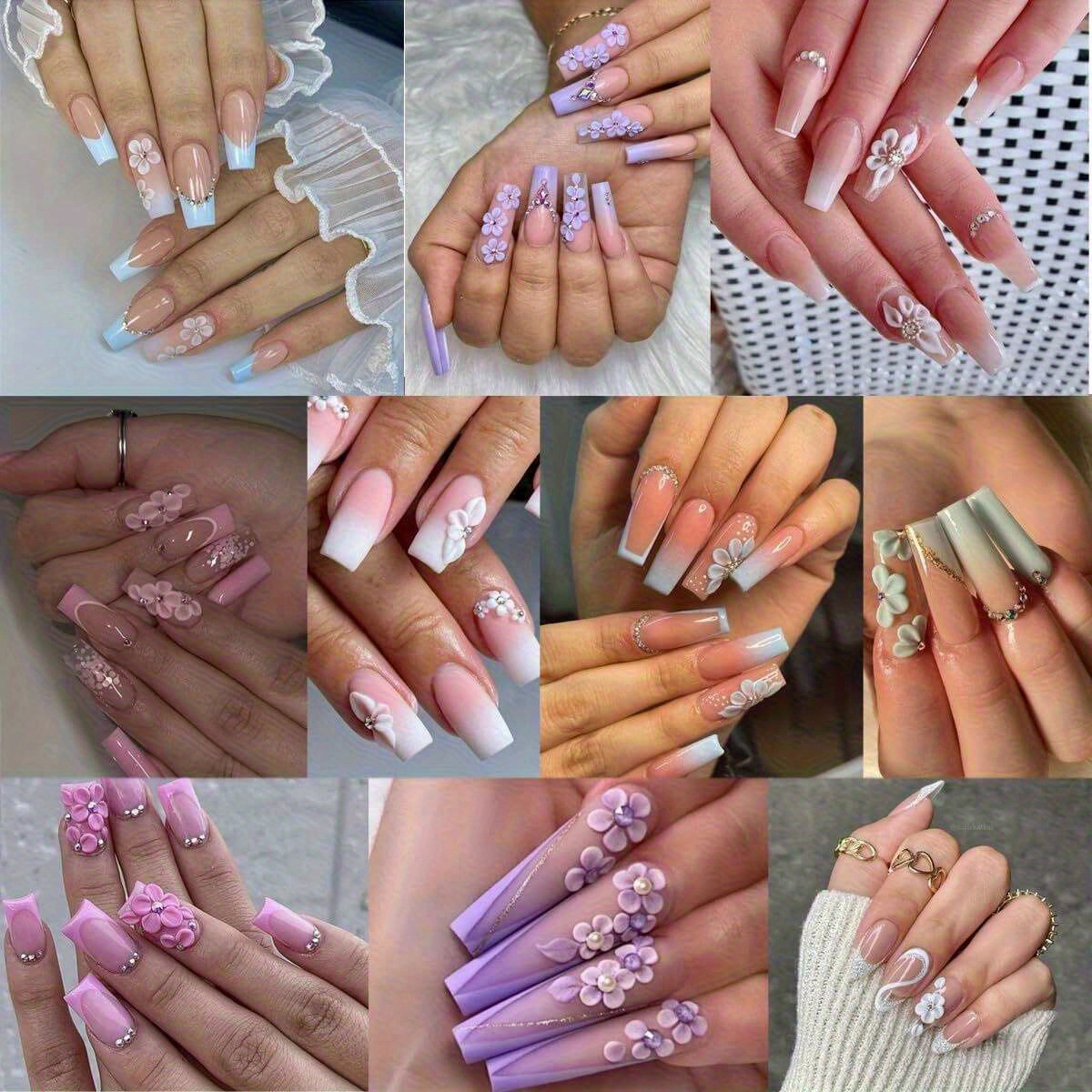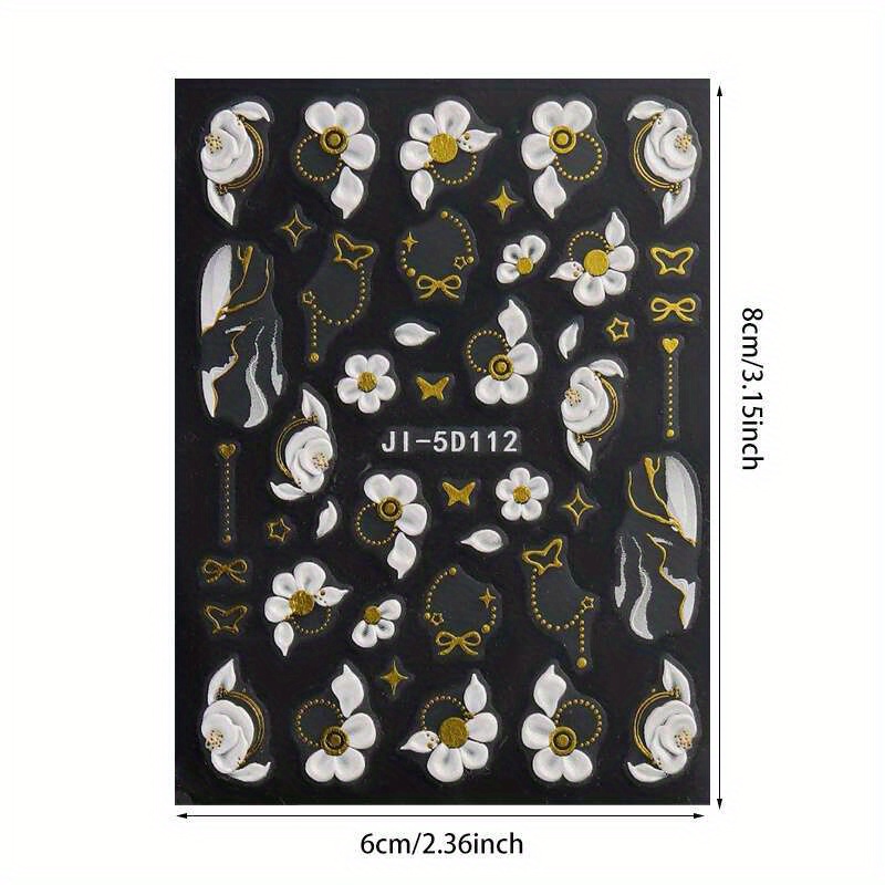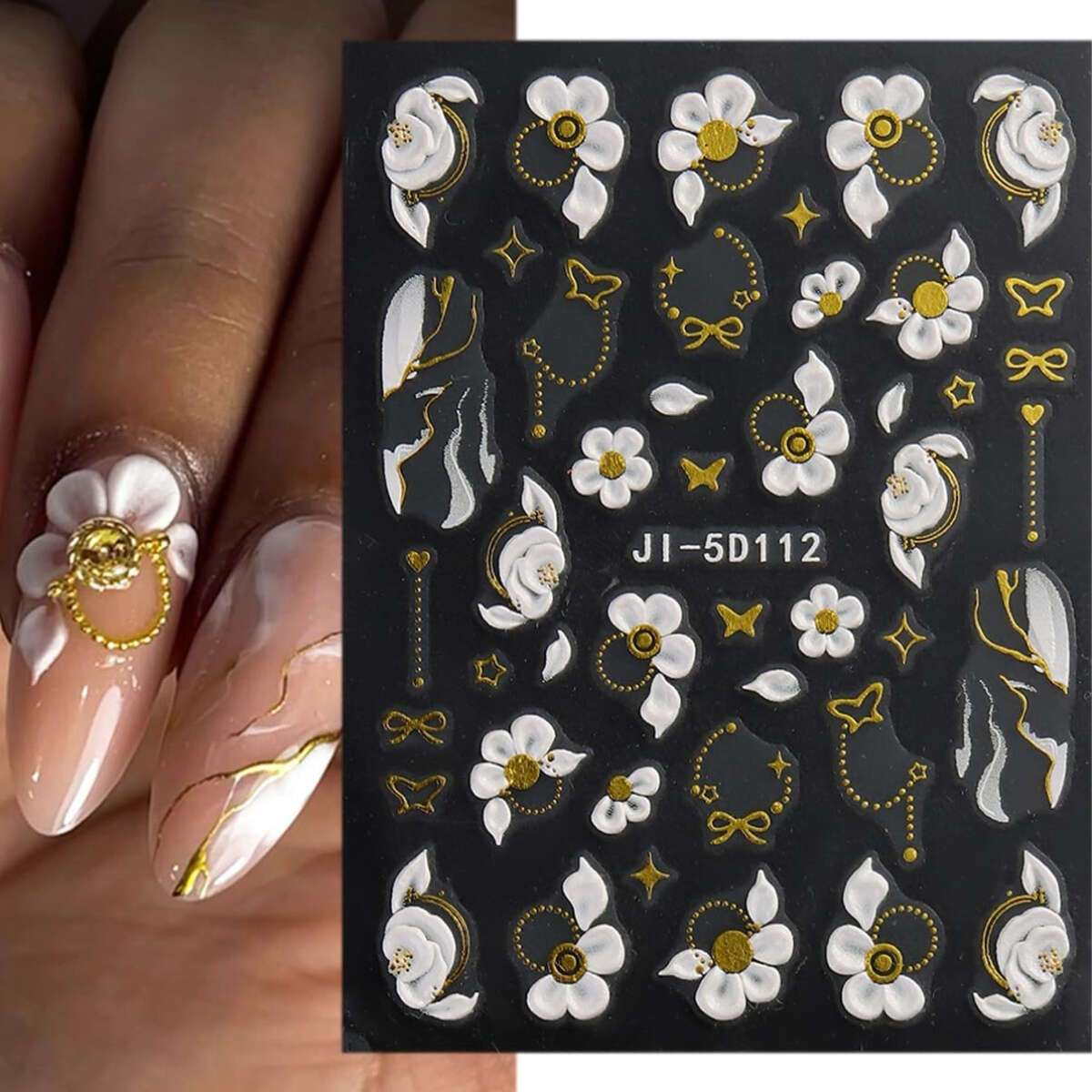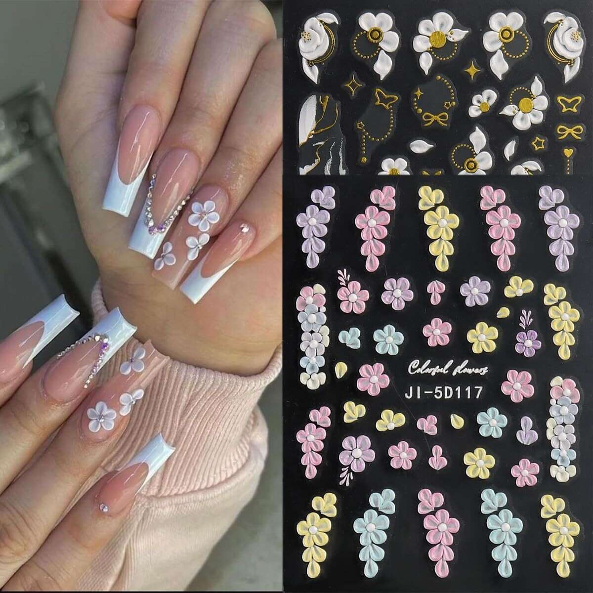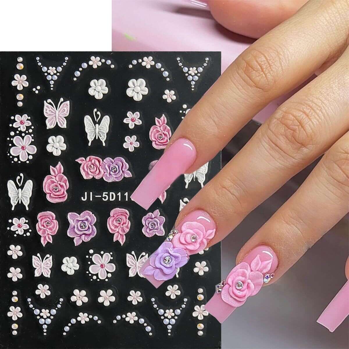 3 Sheets of Vibrant 5D Embossed Floral Nail Art Stickers - Reusable, Self-Adhesive, and Durable with Pink, Purple, and White Chain Butterfly and Spring Flower Designs - Perfect for Nail Decoration, DIY Projects, and Fashionab