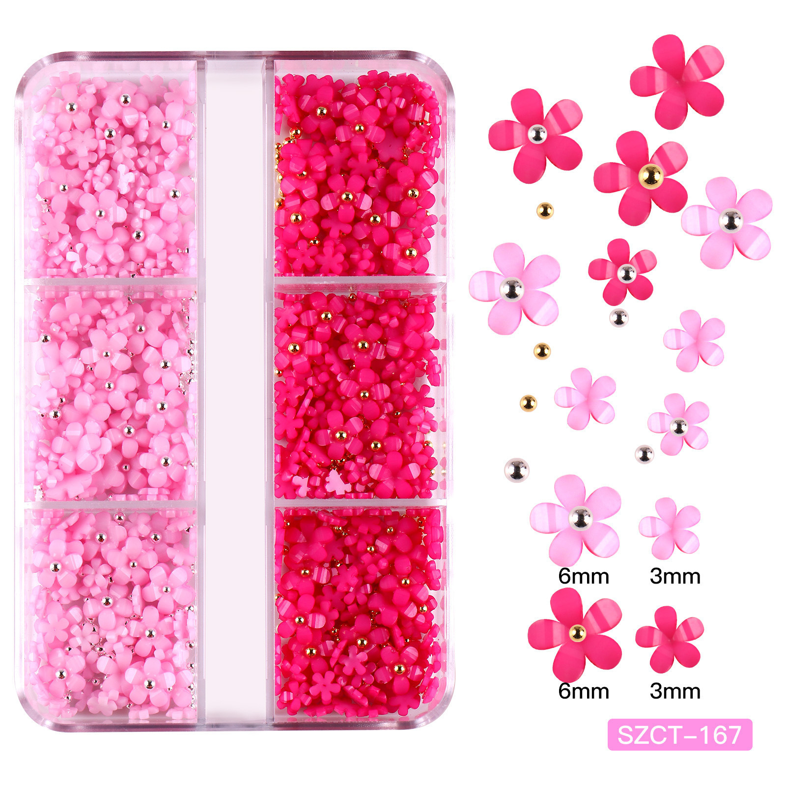 3D Flower Nail Charms, 4 Boxes 3D Acrylic Flower Nail Art Rhinestones White Pink Mixed Cherry Blossom Spring Gems Acrylic Nail Supplies with Pearls Manicure DIY Nail Decorations
