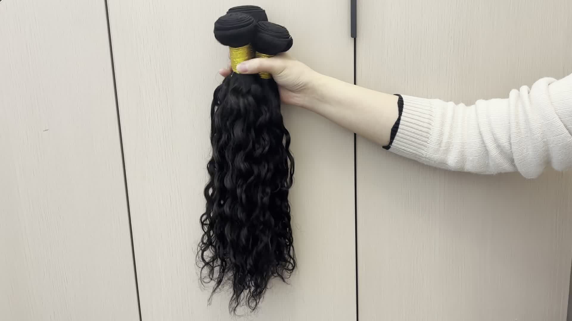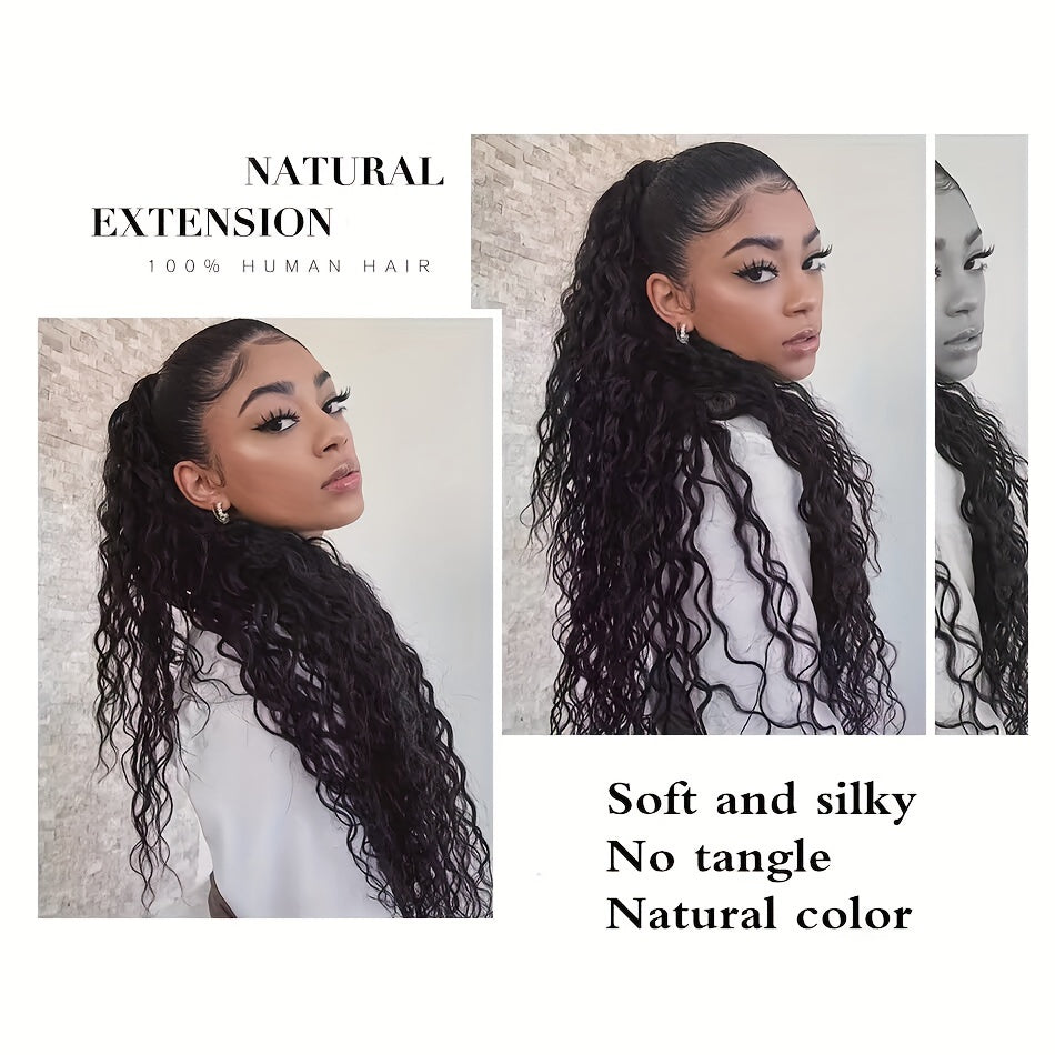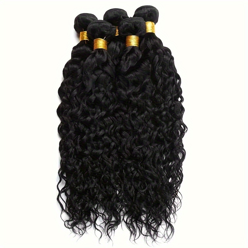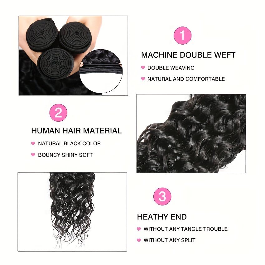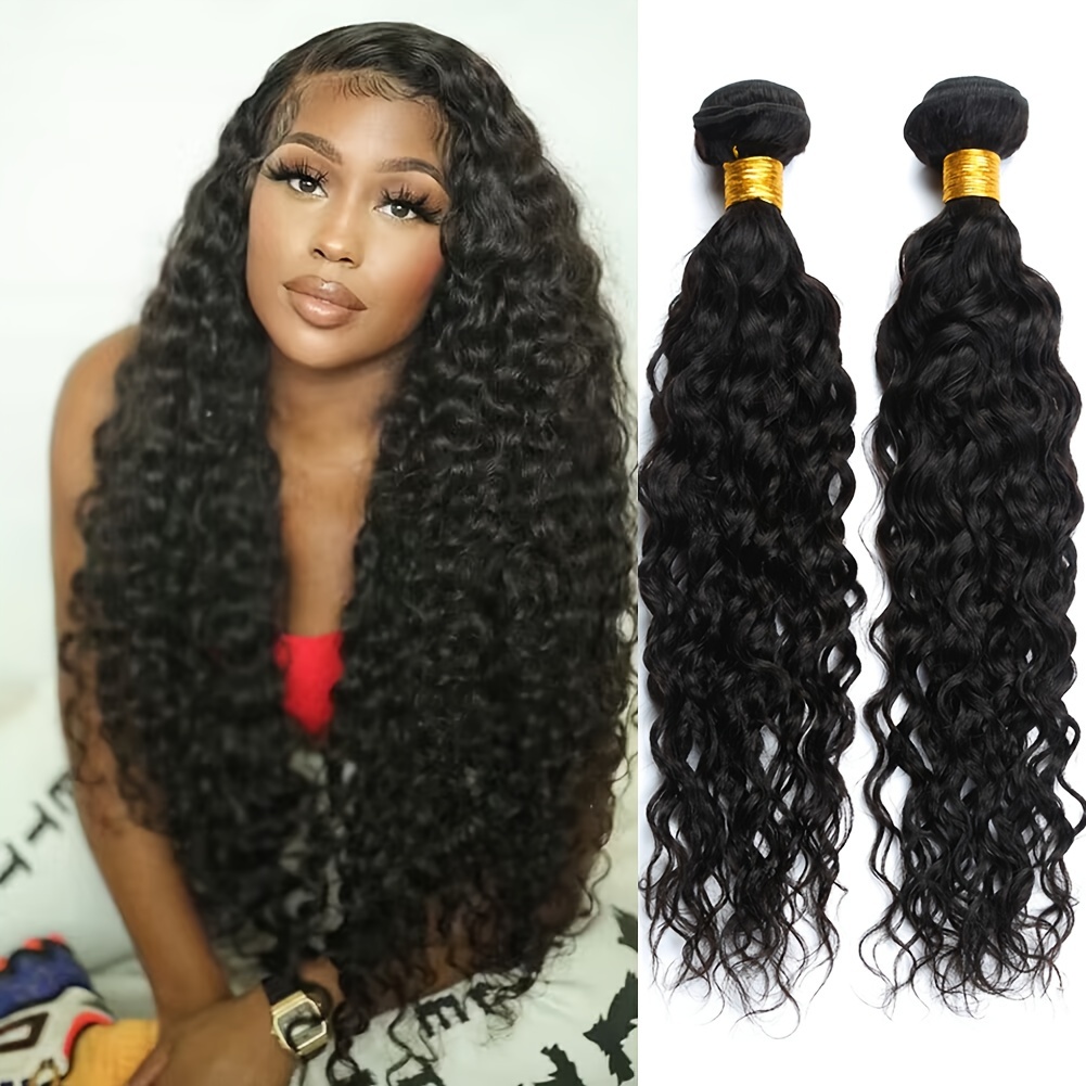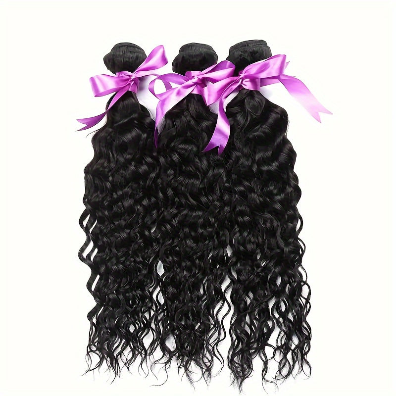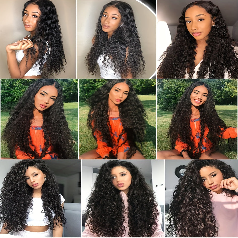4 Bundles Water Wave Human Hair with 4x4 Lace Closure - 100% Virgin Remy Hair, Unprocessed Curly Wet and Wavy Weave for Natural Look, Includes Frontal Closure, Perfect for All Ethnicities