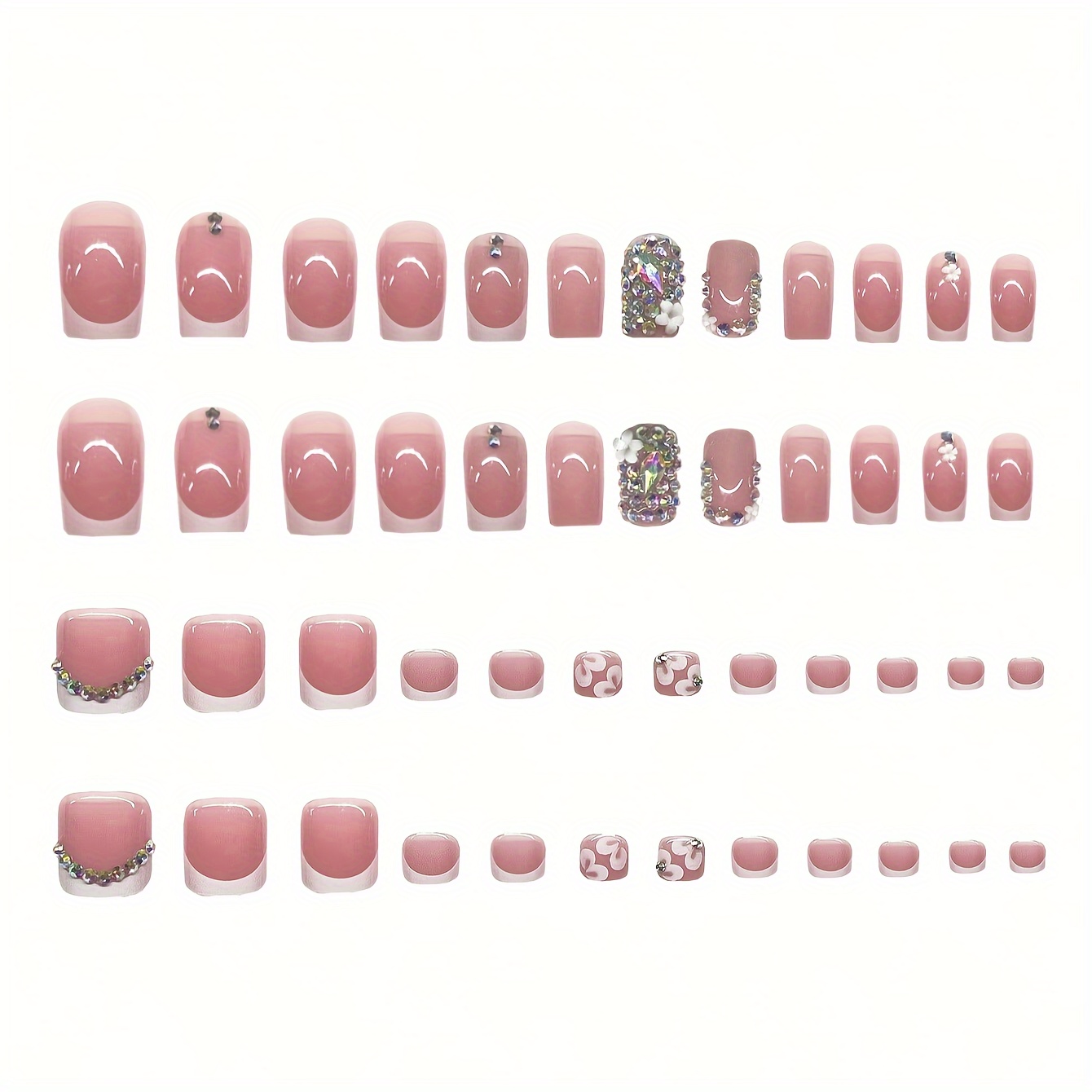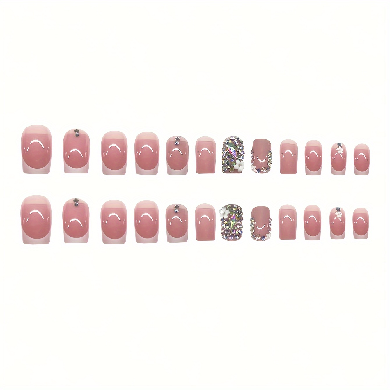 48pcs Square Nail Art Set, Nude Jelly Base with White French Glitter, Glossy Finish, Durable Long-Lasting Color, Fashionable Mix & Match, Ideal for Nail Enthusiasts