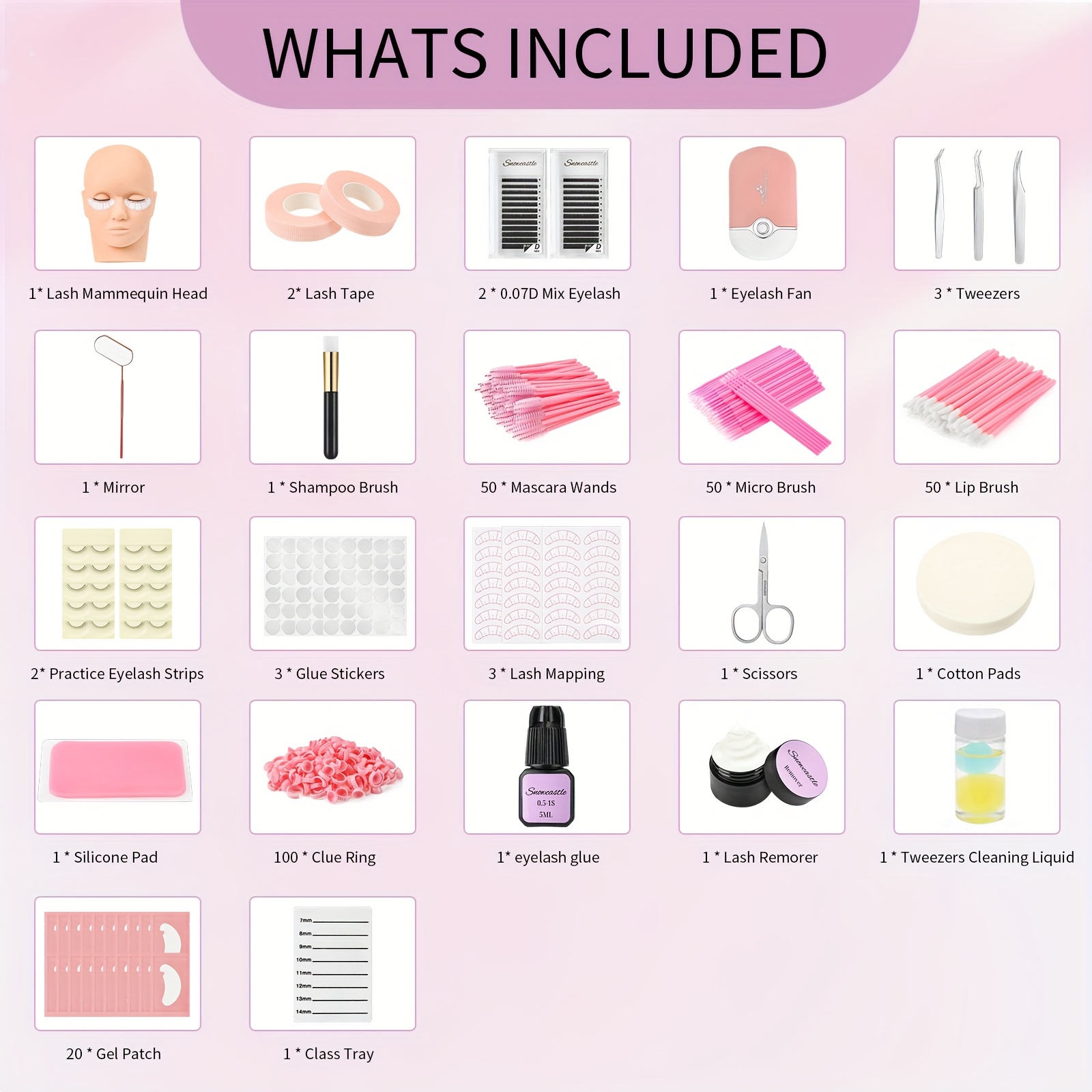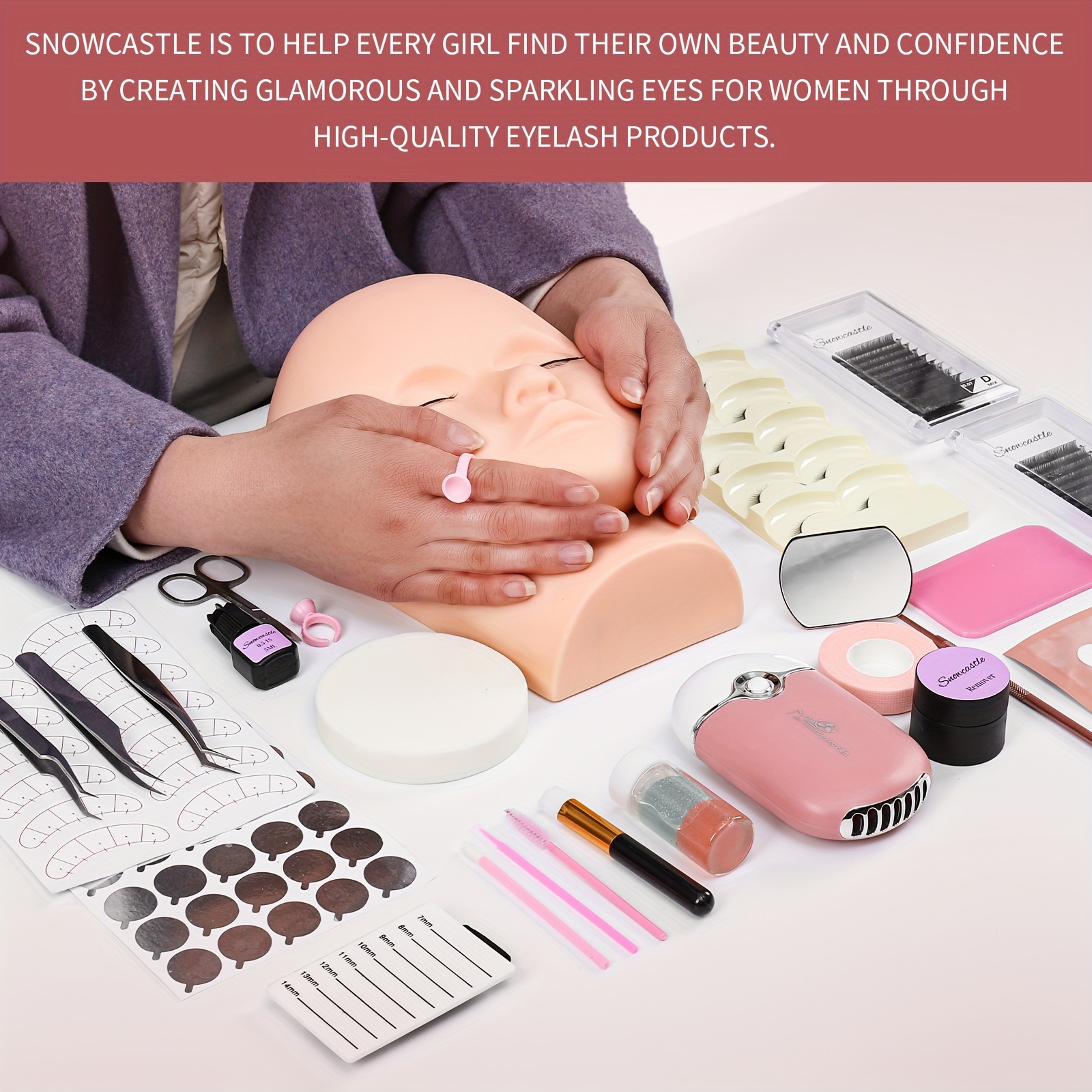 Beauty 246pcs/set Eyelash Extension Training Tool Kit With Silicone Practice Model Head, Eye Pads, Tweezers, Glue Ring, Eyelash Brushes, Individual Lashes Glue, Micro, Brushes, Grafting Eyelash Extension Set