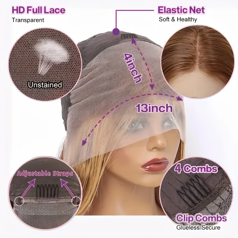 Bob Wig Human Hair 4/27 Ombre Honey Blonde HD Lace Front 13x4 - Straight 180% Density Pre-Plucked with Baby Hair Natural Look for, Hair Wig, Realistic Hairpiece