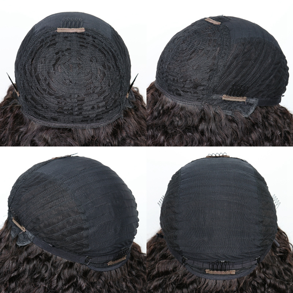 Brazilian Remy Human Hair Afro Kinky Curly Wig with Bangs - Glueless 200% Density Rose Net Cap, Elegant Short Curly Bangs Wig for Women of All Ethnicities, Hair Wig