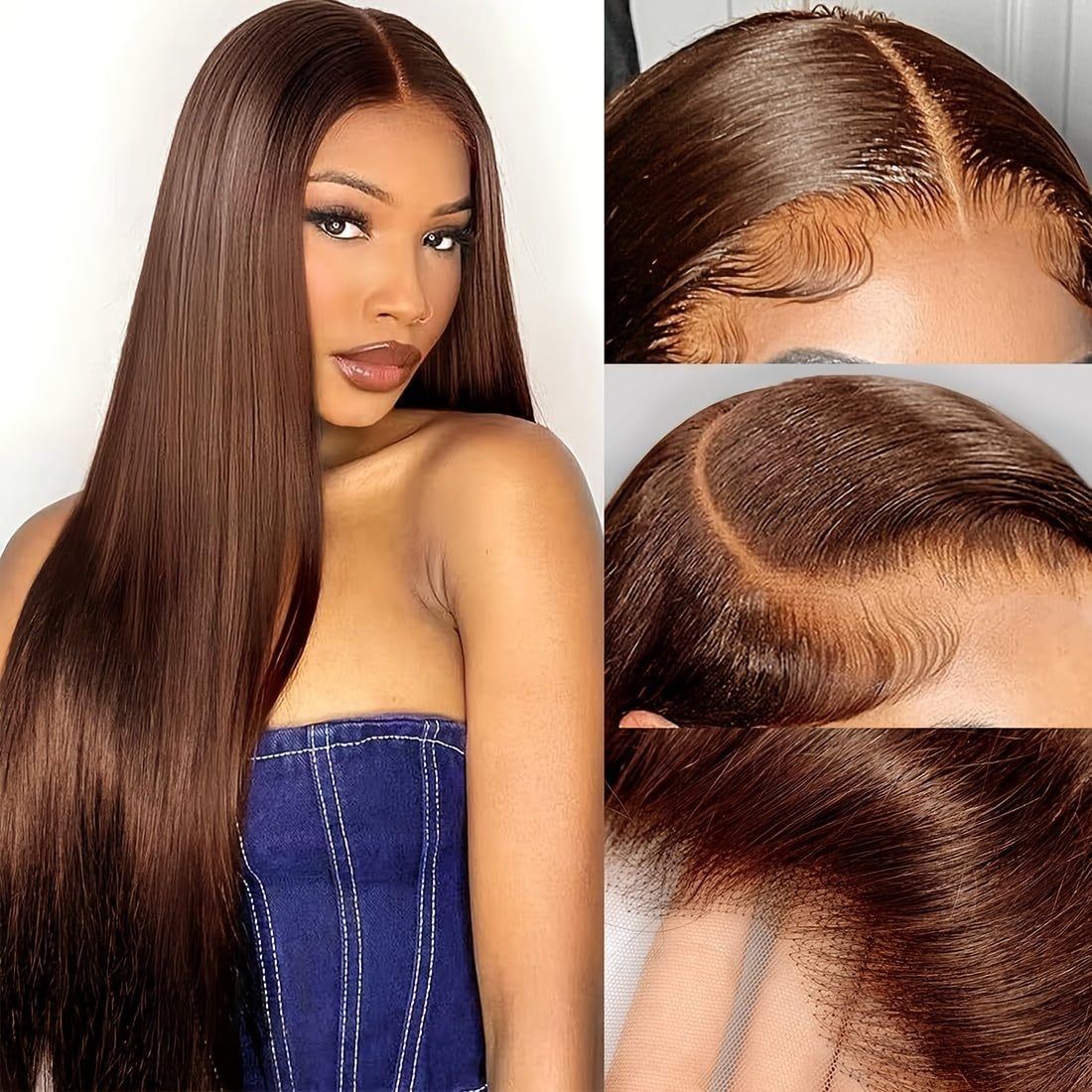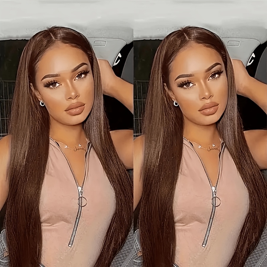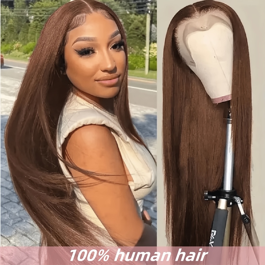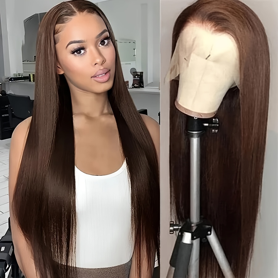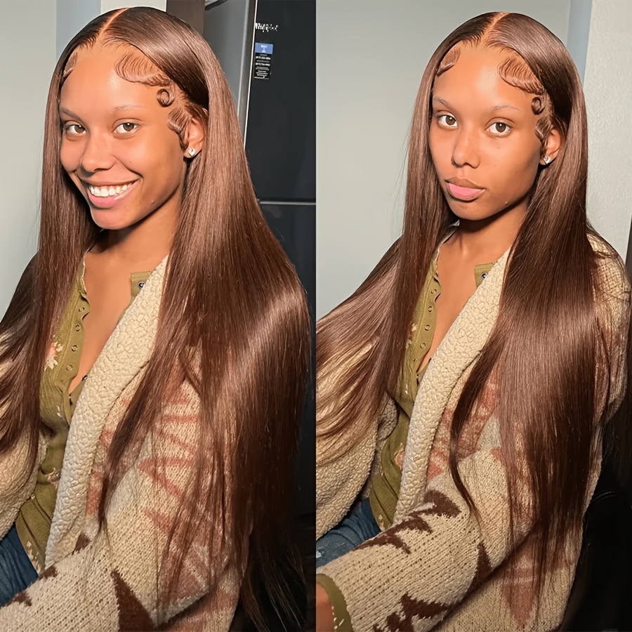 Chocolate Brown 13x6 HD Transparent Lace Front Wigs Human Hair With Baby Hair 180 Density Straight Glueless Wigs Pre Plucked Hairline 4# Brown Color