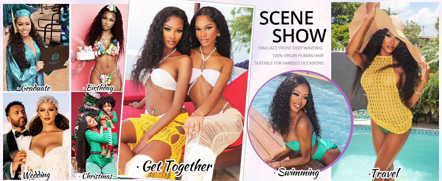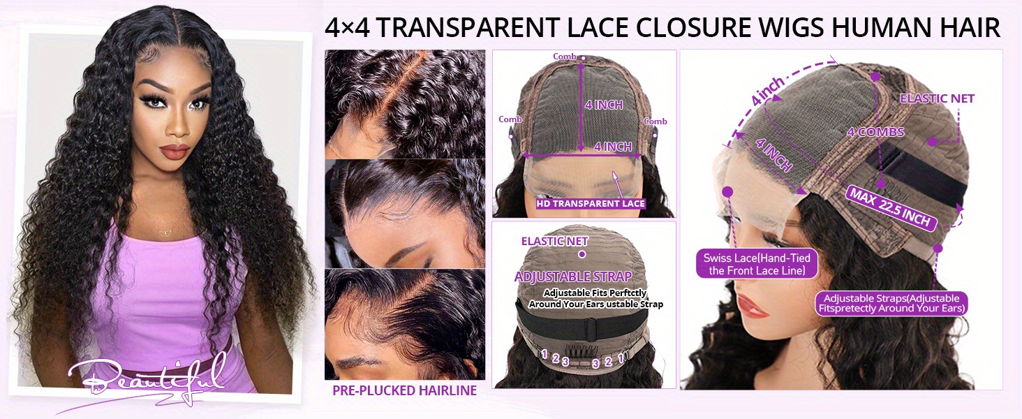 Deep Wave Lace Front Wigs Human Hair 180% Density 4X4 Transparent Lace Closure Wigs for Women Wet and Wavy Lace Frontal Wigs Glueless Wigs Pre Plucked with Baby Hair Natural Color (18 Inch)