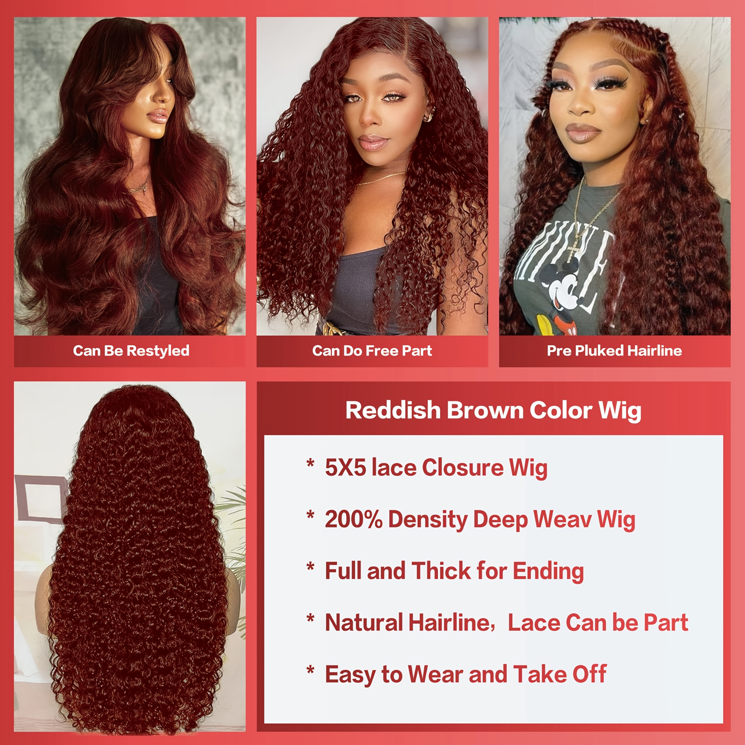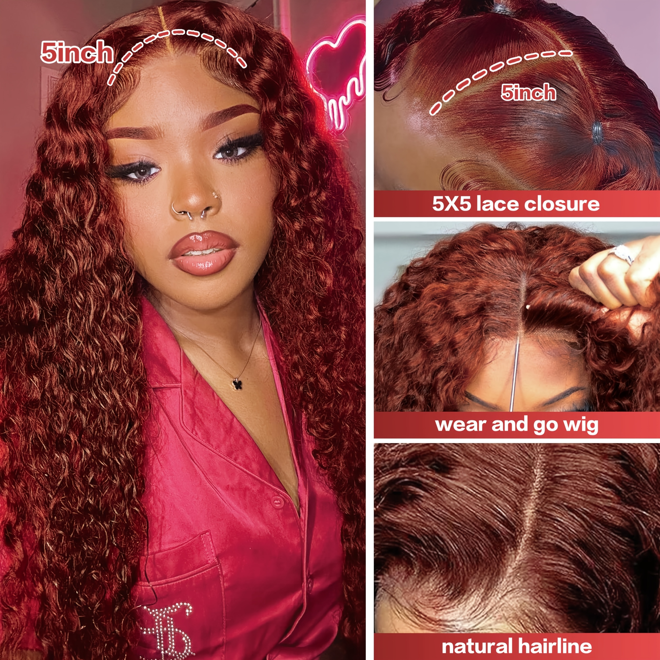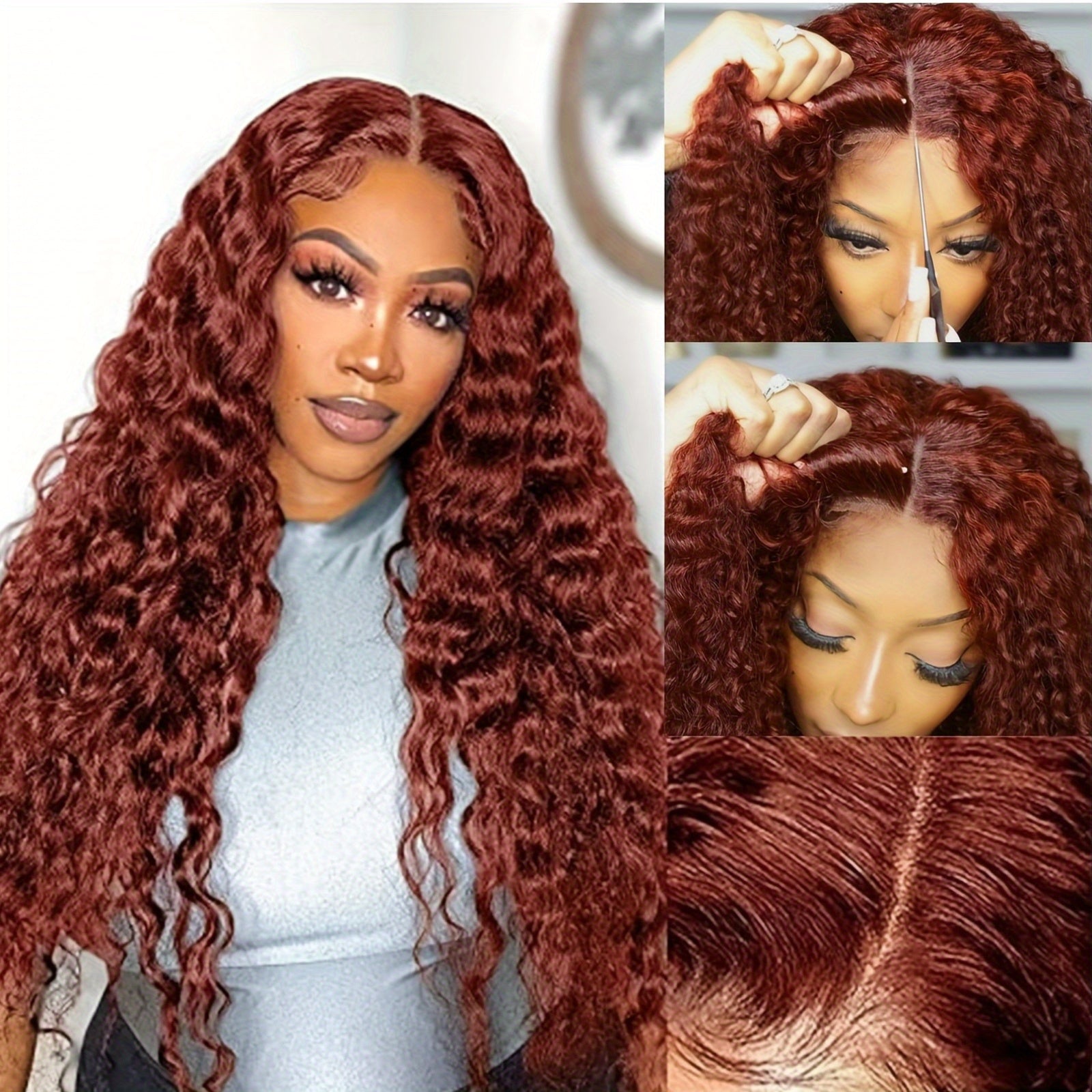 Easter Special Offer 180 Density 5x5 Red Brown Dark Wavy Front Wig 5x5 Glueless HD Lace Front Wig Colorful Curly Lace Closure Front Human Hair Wig