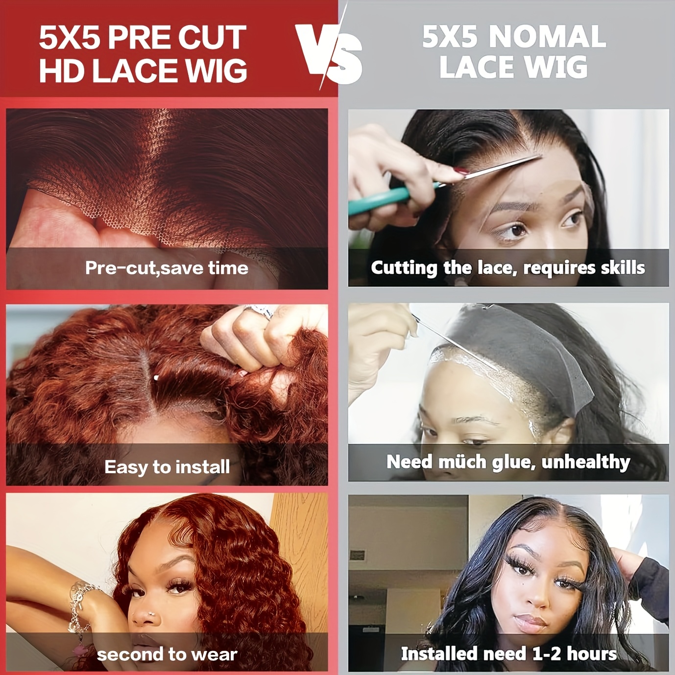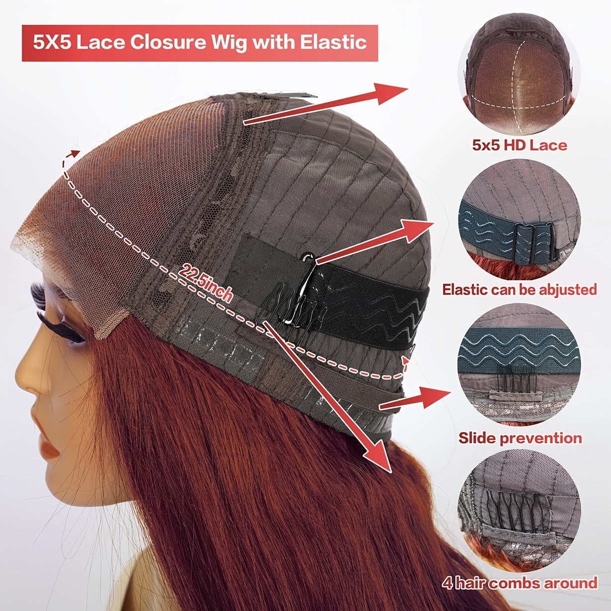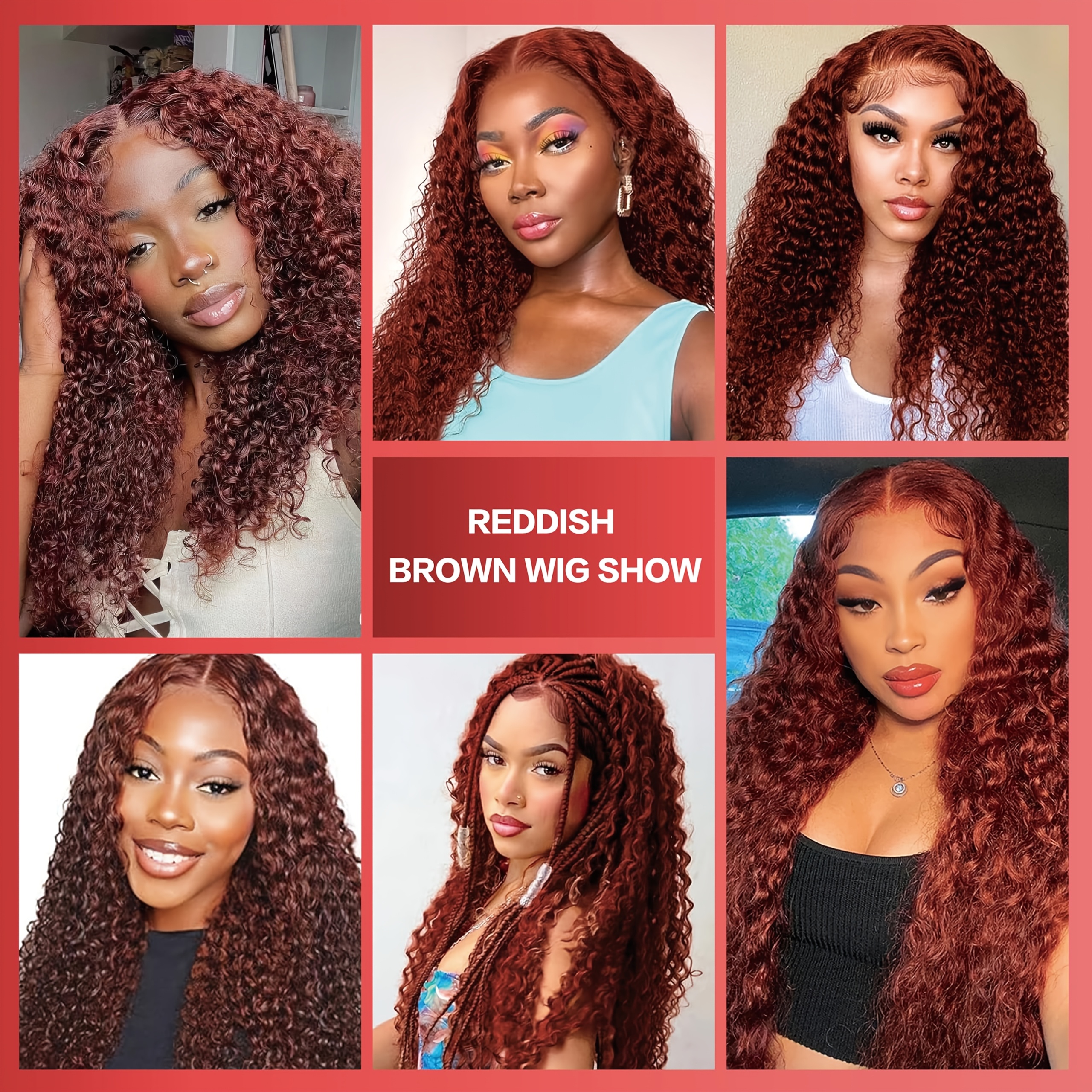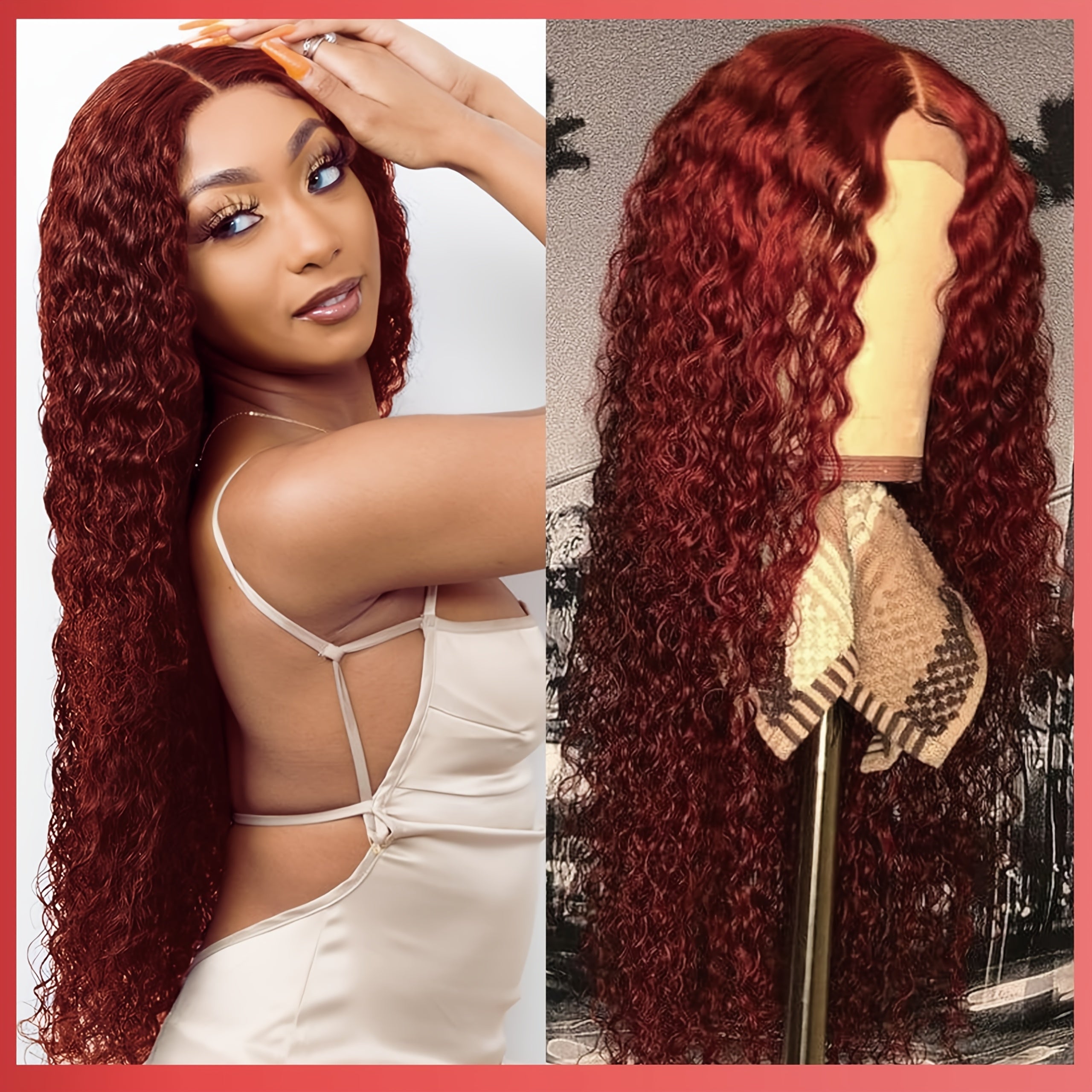 Easter Special Offer 180 Density 5x5 Red Brown Dark Wavy Front Wig 5x5 Glueless HD Lace Front Wig Colorful Curly Lace Closure Front Human Hair Wig