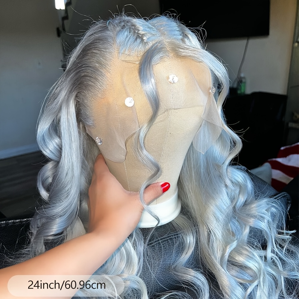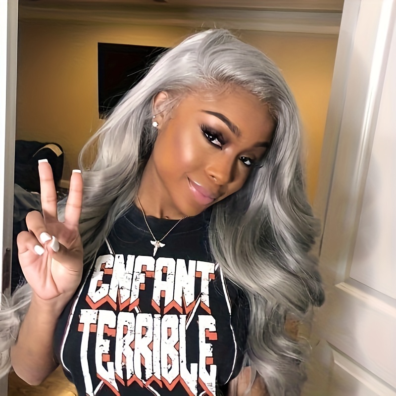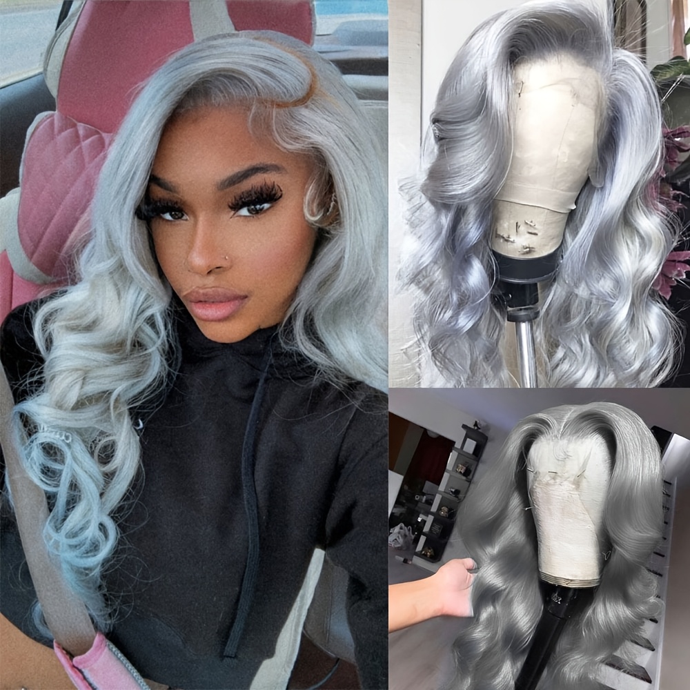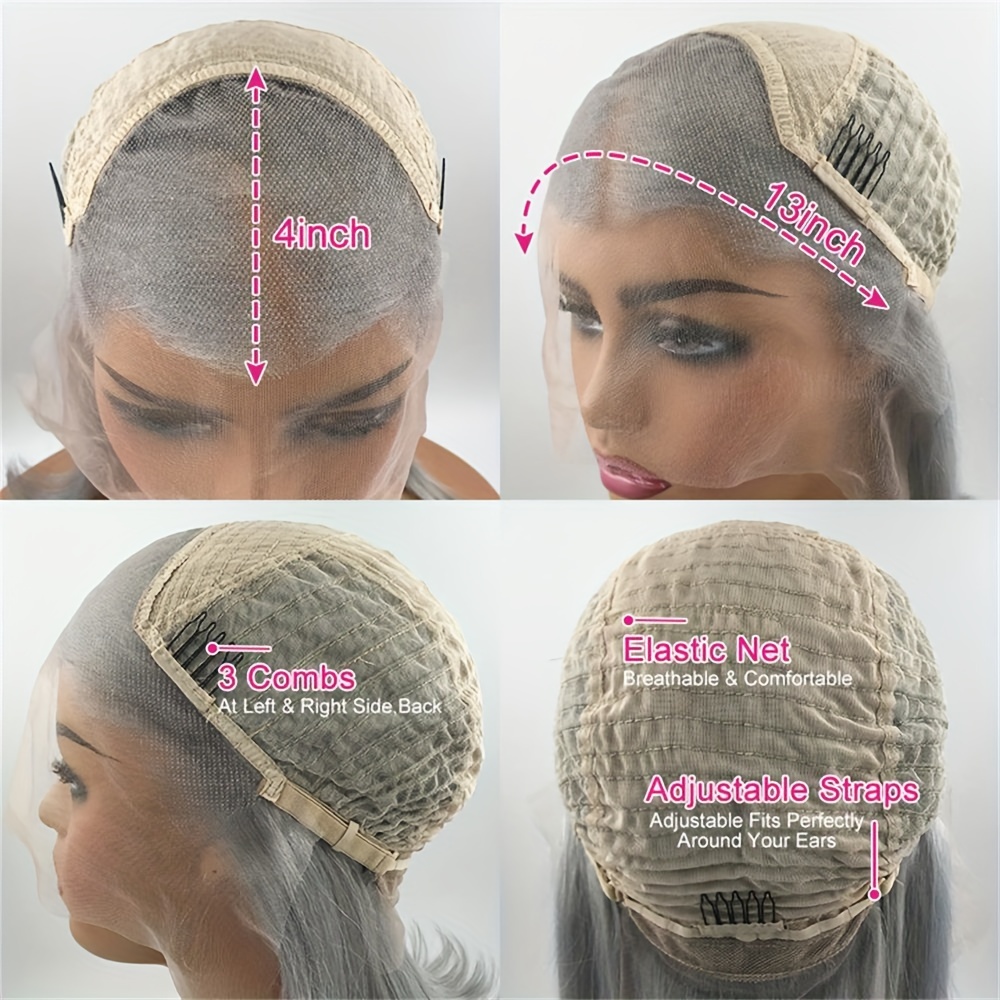 Grey Body Wave Lace Front Wigs Human Haire Pr Plucked Grey Human Hair 13x4 Front Wigs Glueless Silvery Lace Front Wigs for Women 200% Density for Daily Wear Party Women Pre Plucked with Baby Hair Bleached Knots Glueless Wig