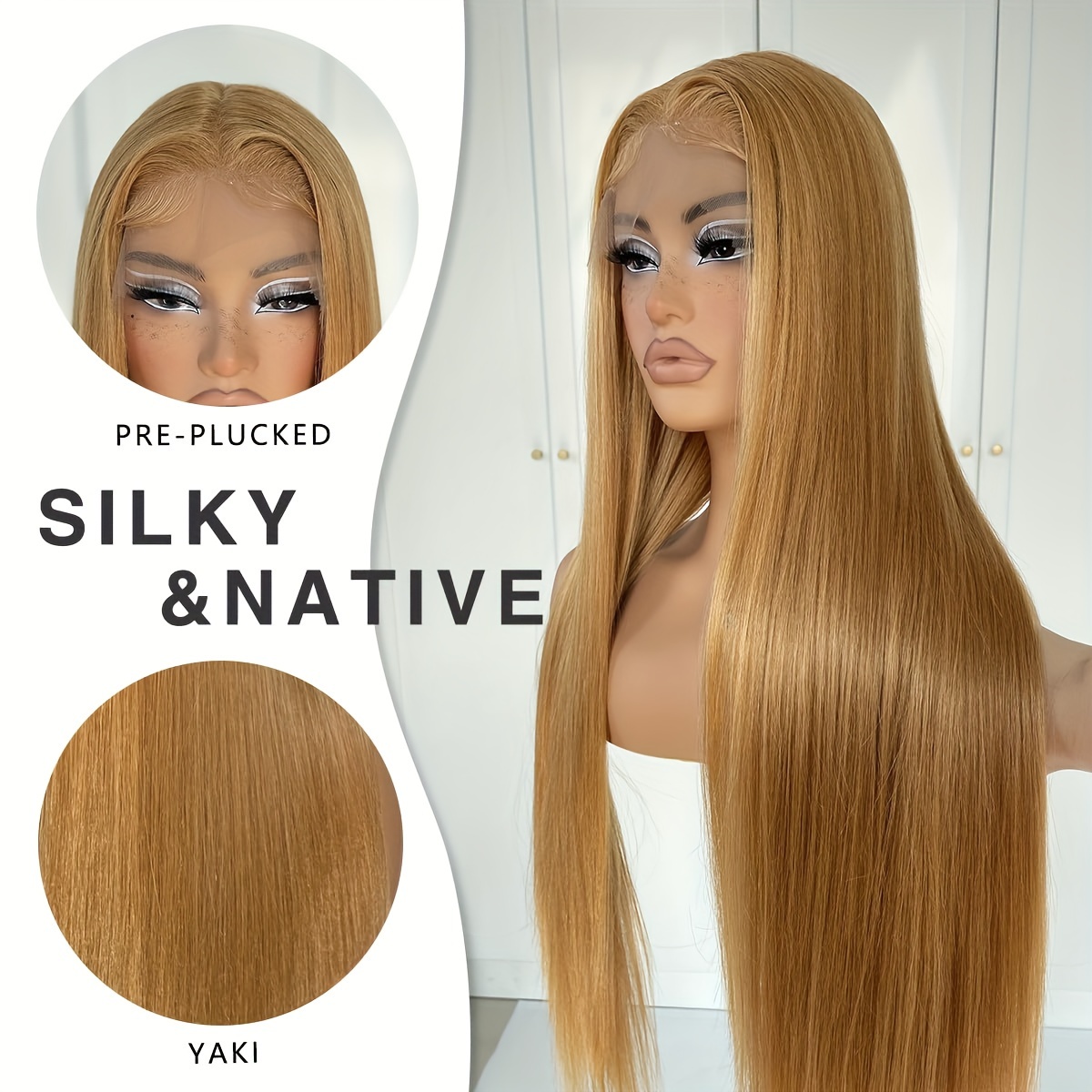 Hot Selling New Styles Honey Blonde Wig Human Hair 28 Inch 13x6 Lace Front Wigs Human Hair 180% Density Straight HD Blonde Lace Front Wigs Human Hair 27# Colored Glueless Wigs Human Hair Pre Plcuked with Baby Hair